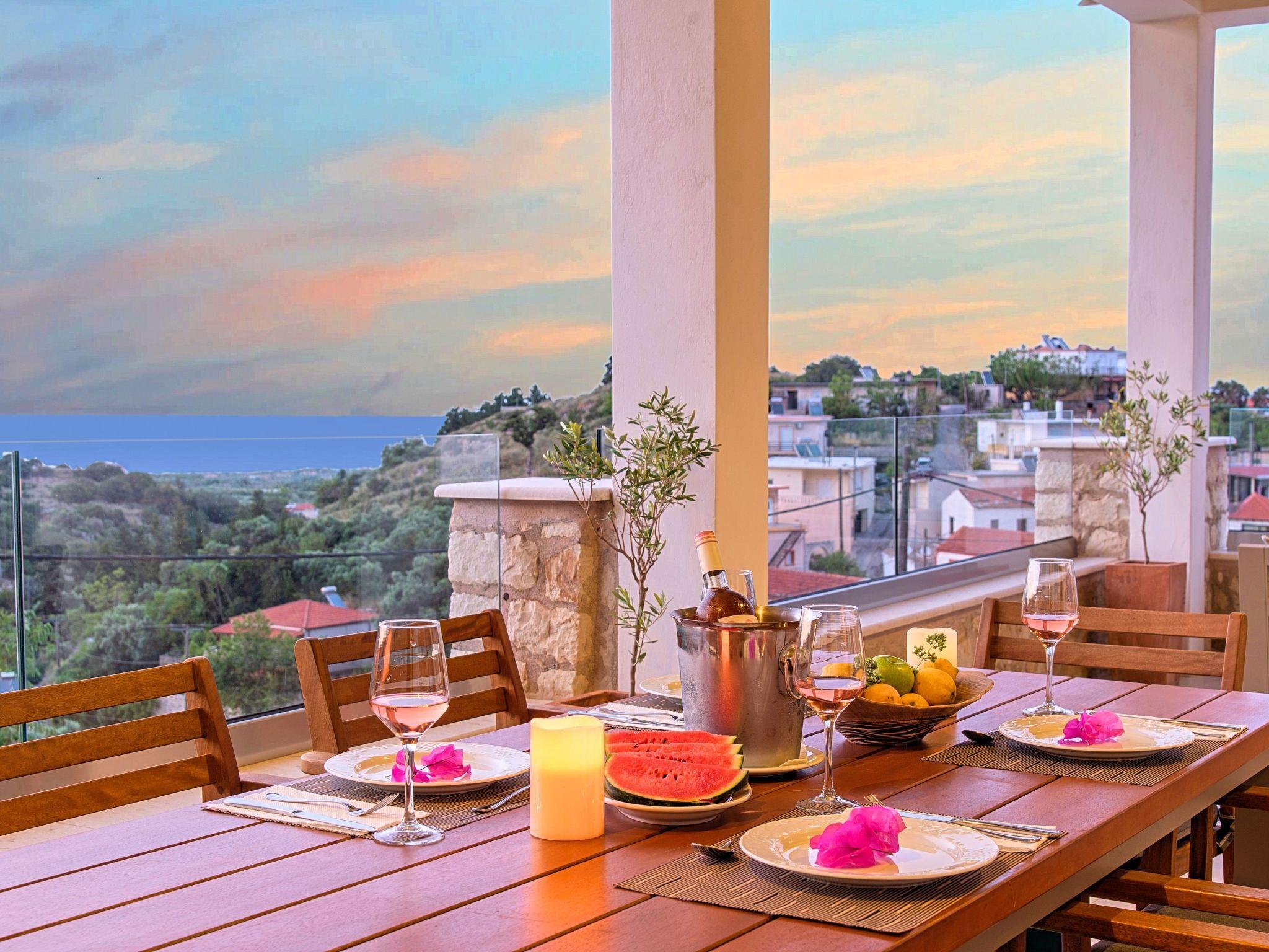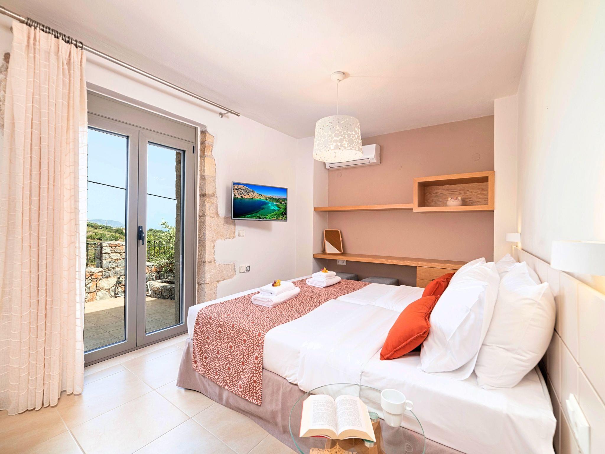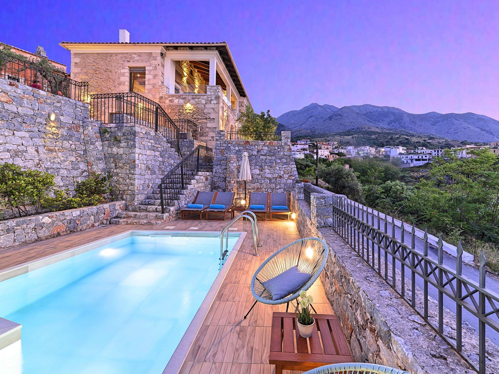 Built of stone and wood, Acrothea with the natural landscape between the slopes of the mountains and the olive trees while giving the sense of a settlement. Crafted with ambition to offer visitors a unique experience through the perfect combination of outdoor activities, the comfort of spacious house and personalized services. Designed with respect to Cretan architecture that ensures the comfort and pleasant hospitality experience of its guests, the house is nestled on the side of a hill. Enjoy fascinating views of the endless Cretan sea and of Kournas village. Luxury is in the fine tactful details, the villa presents a delightful landscape of island Mediterranean gardens, a tranquil atmosphere, protected from the usual crowds. Acrothea Villa is ideal for families or group of friends