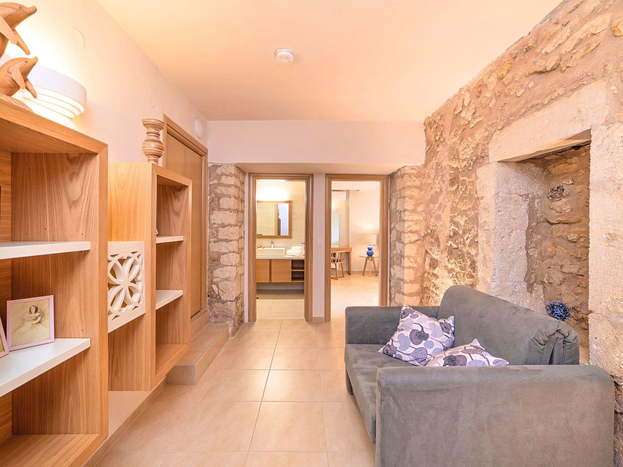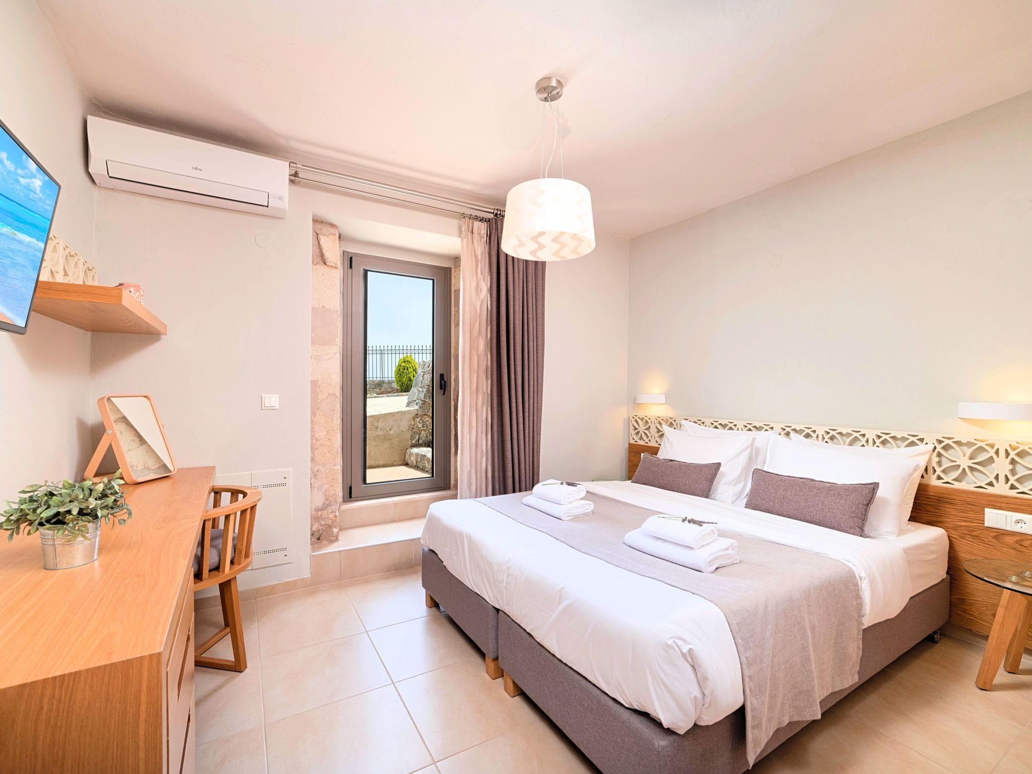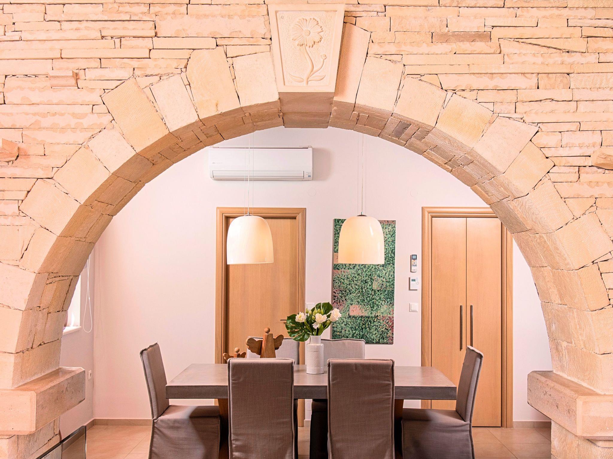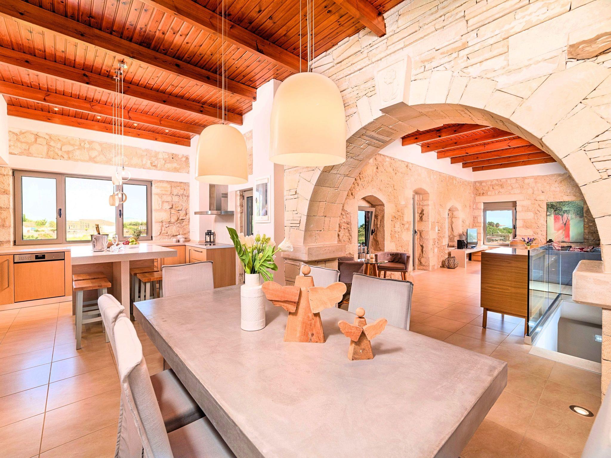 Built of stone and wood, Acrothea with the natural landscape between the slopes of the mountains and the olive trees while giving the sense of a settlement. Crafted with ambition to offer visitors a unique experience through the perfect combination of outdoor activities, the comfort of spacious house and personalized services. Designed with respect to Cretan architecture that ensures the comfort and pleasant hospitality experience of its guests, the house is nestled on the side of a hill. Enjoy fascinating views of the endless Cretan sea and of Kournas village. Luxury is in the fine tactful details, the villa presents a delightful landscape of island Mediterranean gardens, a tranquil atmosphere, protected from the usual crowds. Acrothea Villa is ideal for families or group of friends