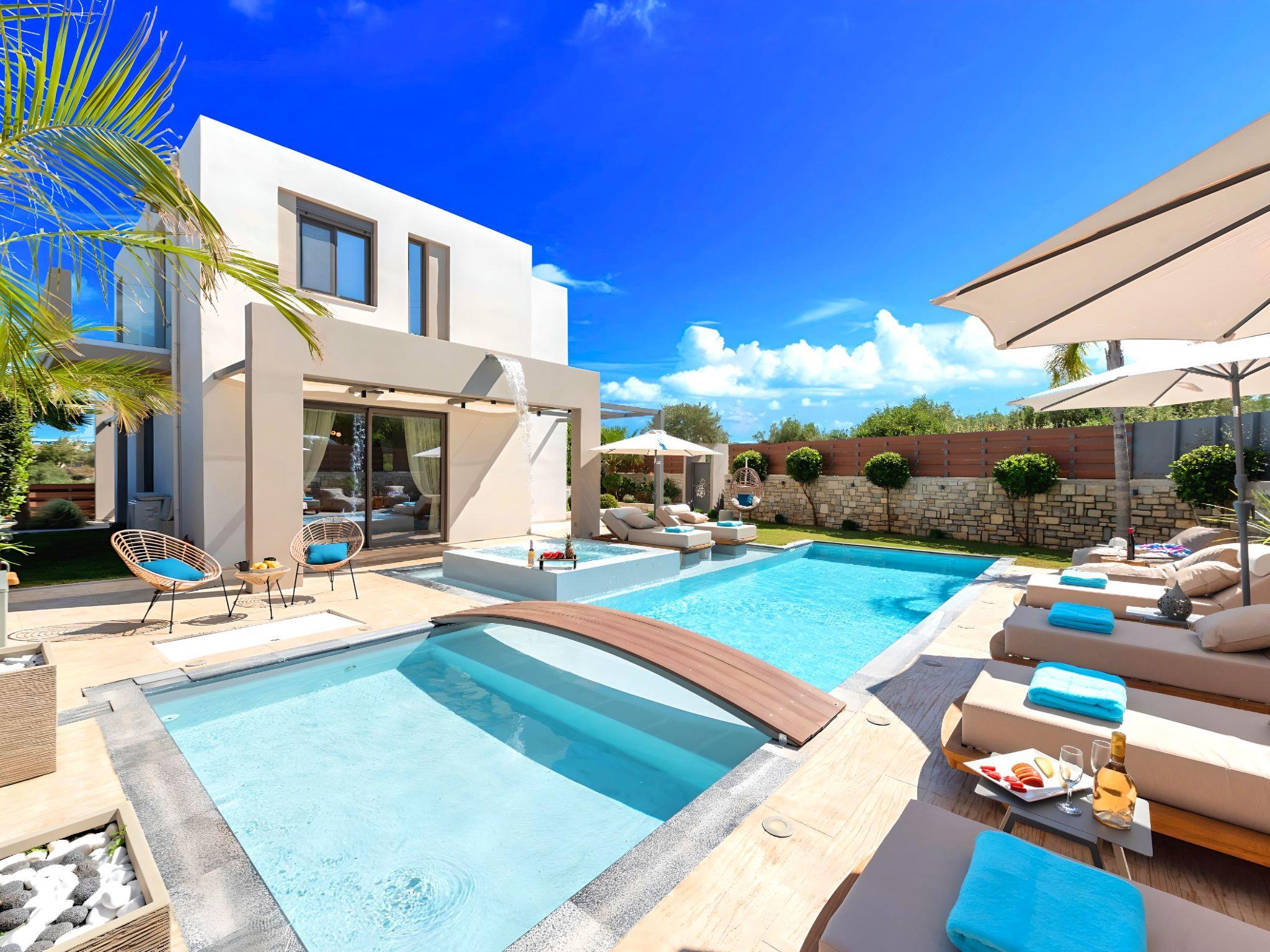 Nuzzled in a gorgeous setting, above the sun kissed beach of Georgioupolis in Crete, Minoas Villas captures the essence of chic and luxurious living only few minutes away from the shimmering sea.Built amphitheatrically with direct sea views, this exceptional built Villas, member of the HotelPraxis Group evokes the island’s Cretan spirit and cosmopolitan charm in its elegant environs while ensuring a holiday beyond comparison.Minoas Villa is one of three villas belonging to a larger complex.Minoas Villas offers guests the opportunity to truly immerse themselves in the Cretan experience.Within easy reach from the island’s famous Kournas Lake and the popular town of Georgioupolis our villas combine a contemporary, modern style with supreme comfort.Built in 2019 our villas offer guests an exclusive, relaxing experience all within the idyllic setting of Greece’s most hospitable island.Our philosophy is simple: to offer first-rate hospitality coupled with unrivalled privacy.All Villas are fully equipped, offering our quests the required convenience in order to enjoy unforgettable relaxing vacations throughout spring, summer and autumn.Minoas Villas is a complex of three villas, ideal for big families, a group of families or a group of friends.Enjoy your vacations with your parents or with the rest of your family members while at the same time preserving your privacy just like at your own home.Our Villas are built one next to the other.