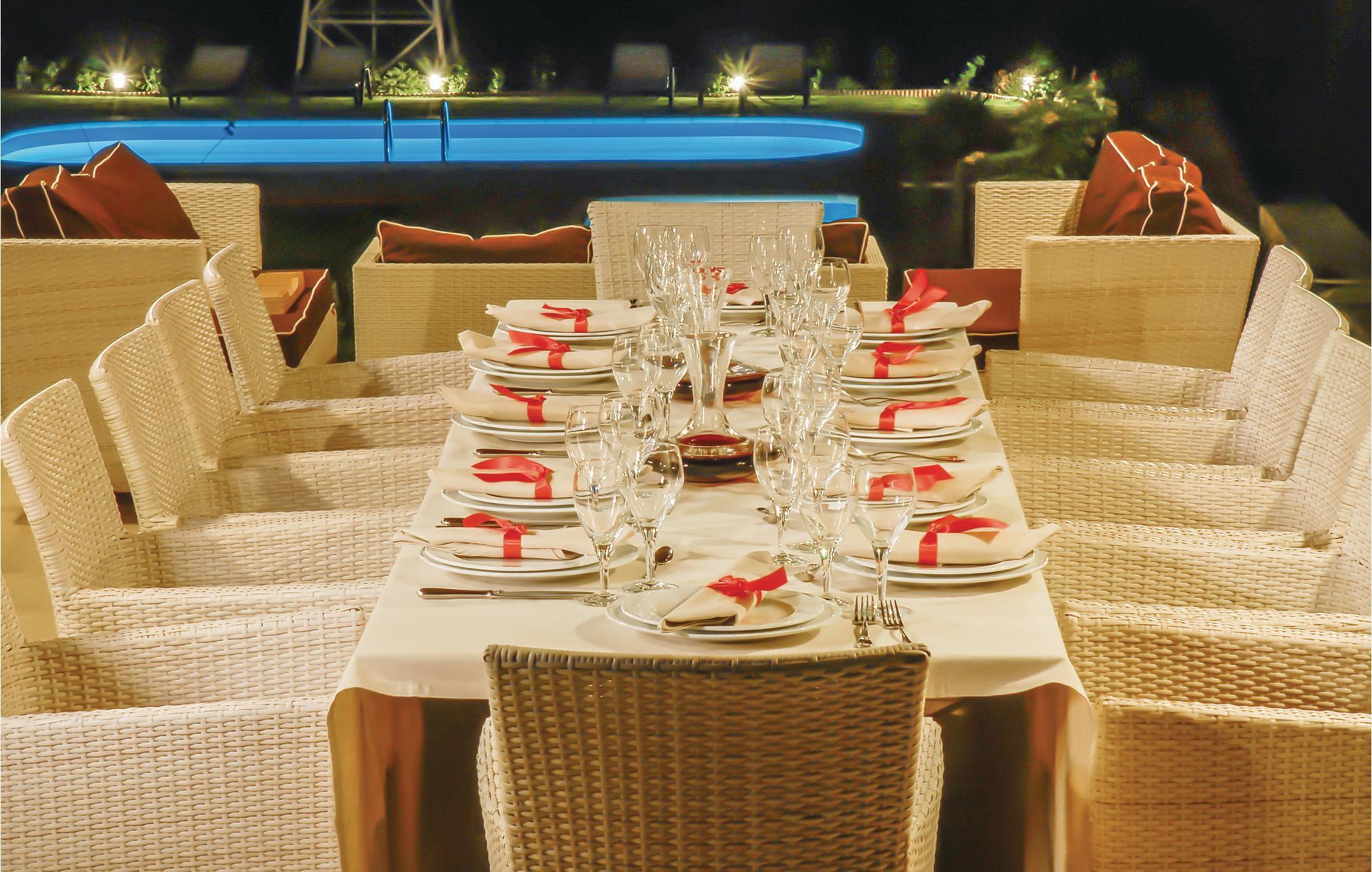 Huset har en meget stor have med masser af plads til volleyball og fodbold og har en smuk overdækket udendørs spiseplads, hvor I kan spise dagens måltider. Der er to swimmingpools, en for voksne og en for små børn, med en fantastisk panoramaudsigt over bjergene.