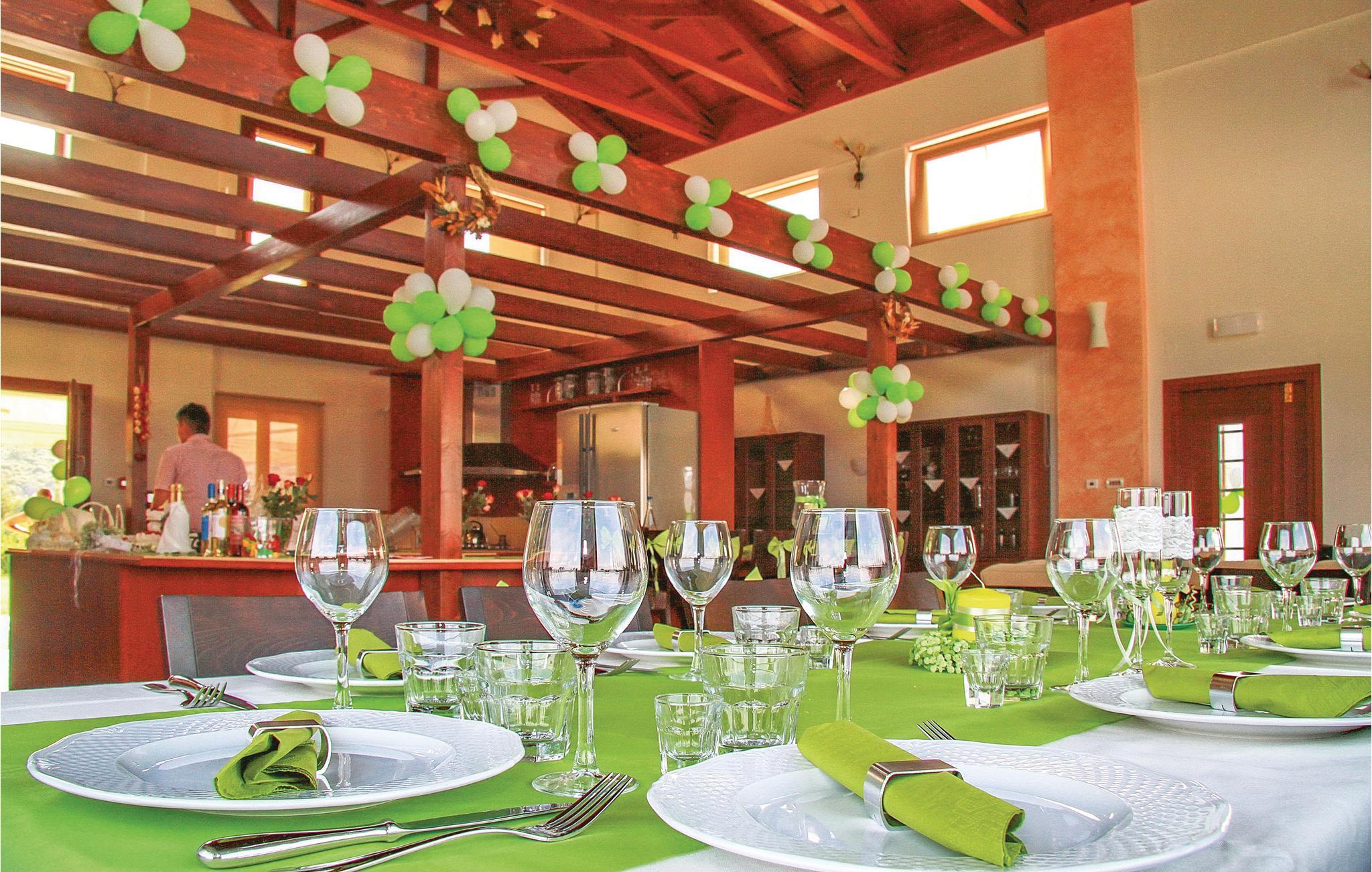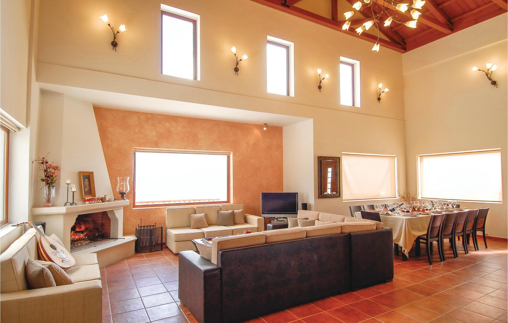 Inde i huset er der et åbent køkken og et opholdsstue med pejs og store vinduesflader med smuk udsigt. En altan er tilgængelig fra stuen og fra fire af de seks soveværelser. Denne luksusejendom og dets faciliteter vil helt sikkert tilfredsstille selv de mest krævende gæster, et glimrende valg til både store familier og vennegrupper.