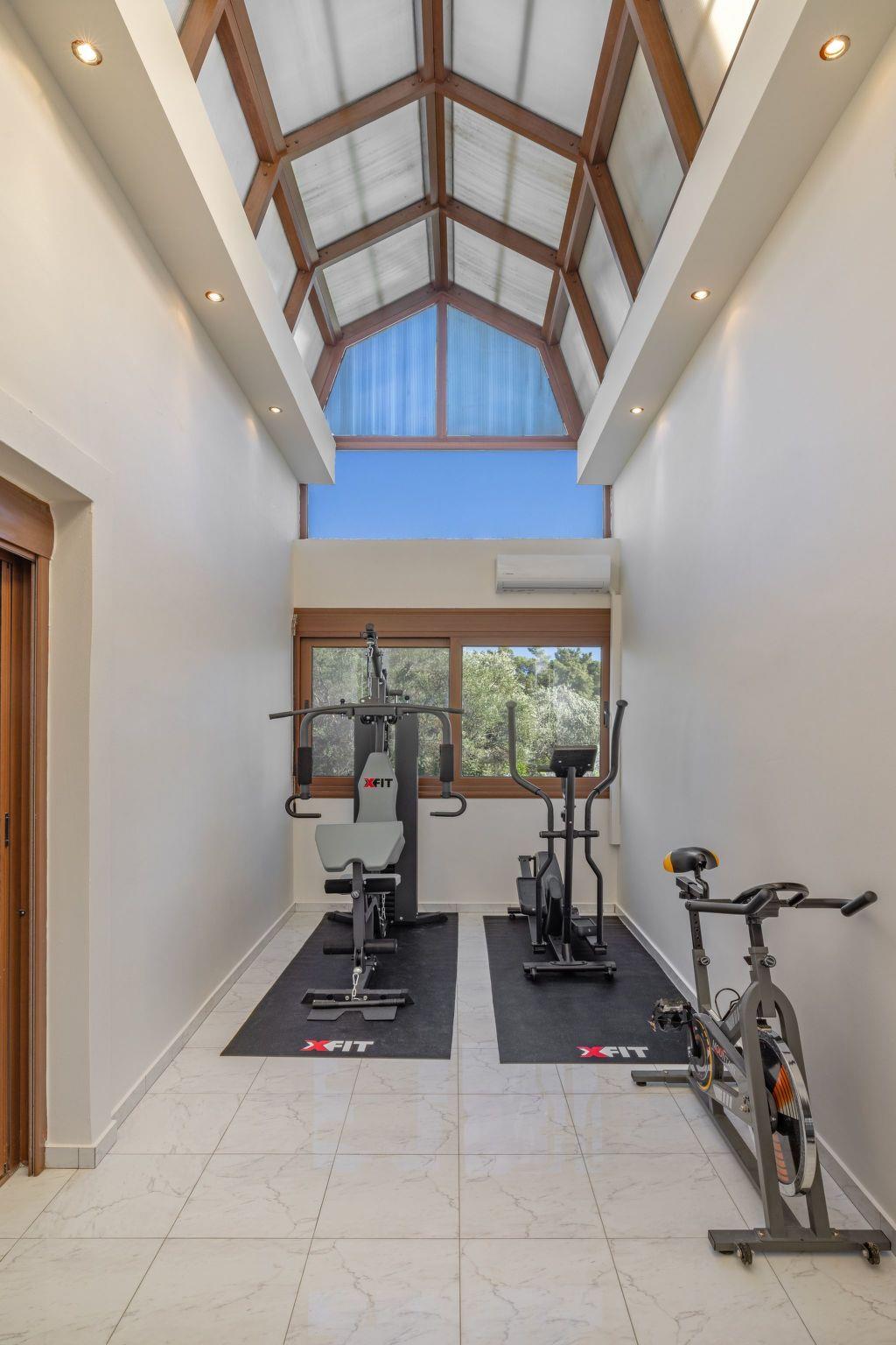 Villa 1 exudes elegance with its spacious living areas, adorned with luxurious Italian Fendi furnishings. The ground floor features two living rooms, a dining area, a fully equipped kitchen, and a WC. On the first floor, you’ll find three large bedrooms with double beds, two of which also feature a sofa bed or single bed. One bedroom includes an en-suite bathroom with a shower, while a separate bathroom with a bathtub is also available. A gym area, equipped with all the necessary tools, sits between two bedrooms. On the second floor, the master bedroom offers a king-size bed, an en-suite bathroom with a bathtub, and stunning views.
