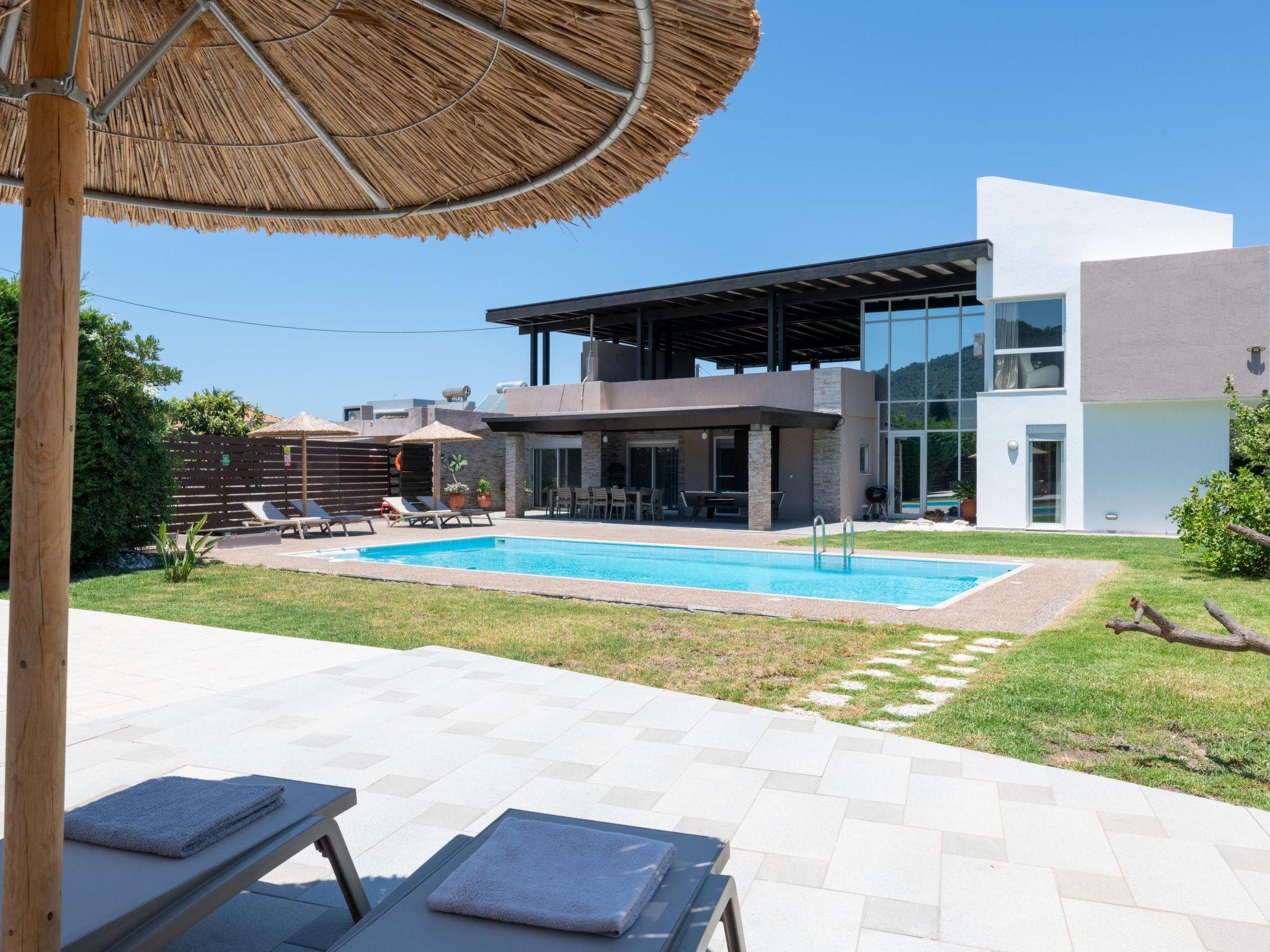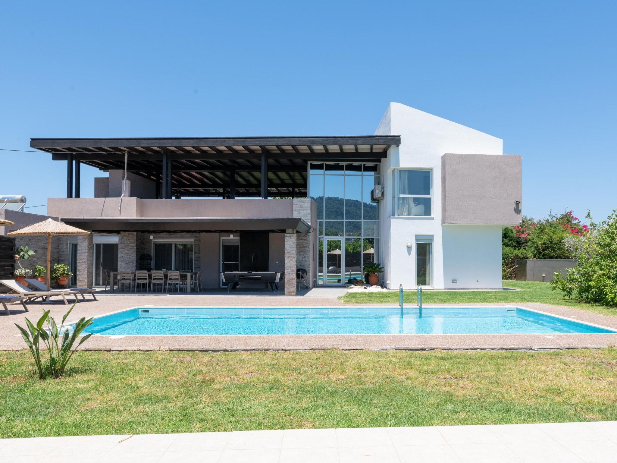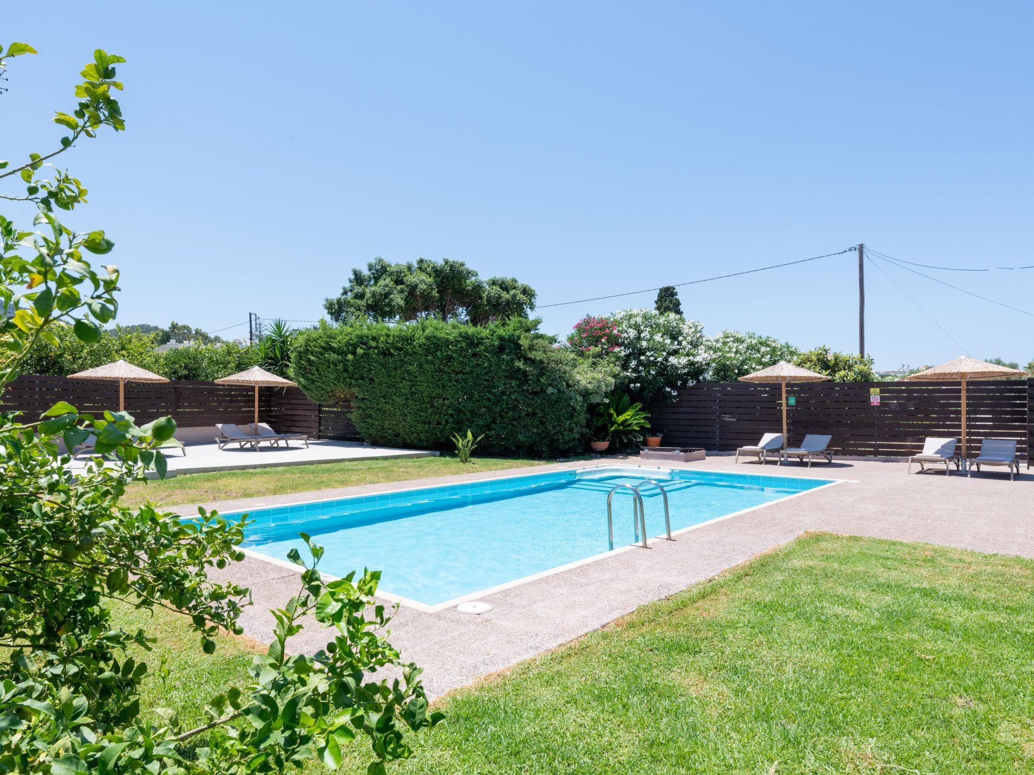 Marane Deluxe House is a 3-bedroom villa. There are 3 bedrooms, 2 with a double bed and 1 with twin beds. Also, there are another 2 bathrooms. All bedrooms are airconditioned and carefully decorated in a quite contemporary style. Guests will find a fully equipped kitchen, suitable for any meal preparation along with comfortable seating areas. In addition, there’s a unique living area in beautiful colours. There’s free Wi-Fi access throughout the property as well as a flat screen TV. Outdoors, you will find the enchanting private swimming pool and its sunbeds. Also, there is a ping pong table & play ground for our little friends. The surrounding is quite peaceful with the fantastic roof terrace and the beautiful garden. Guests will find the BBQ facility and the seating area to relax and enjoy a family or friends gathering.