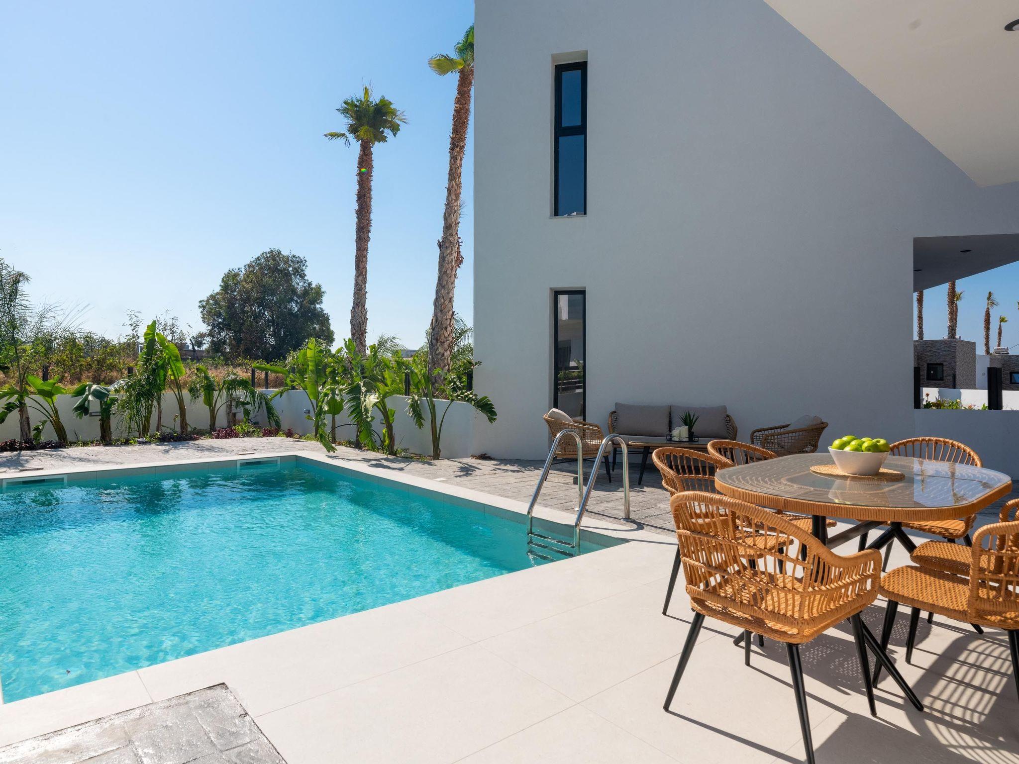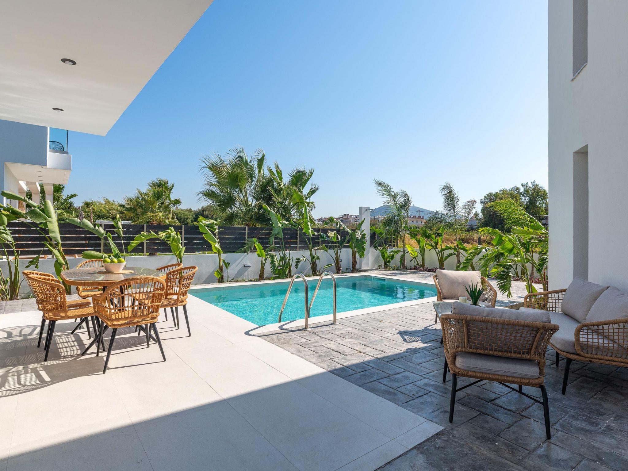 Davlakos Villas in Kremasti, Rhodes, offer two delightful accommodation options: Villa Eve and Apartments Rea 1 & 2. Villa Eve is a spacious home that accommodates up to 8 guests, perfect for larger families or groups. Apartments Rea 1 and Rea 2 are two separate units, each hosting up to 4 guests, making them an excellent choice for smaller families or friends traveling together. All properties are modern, well-equipped and designed to provide a comfortable and relaxing stay, ensuring a peaceful vacation in a beautiful setting.