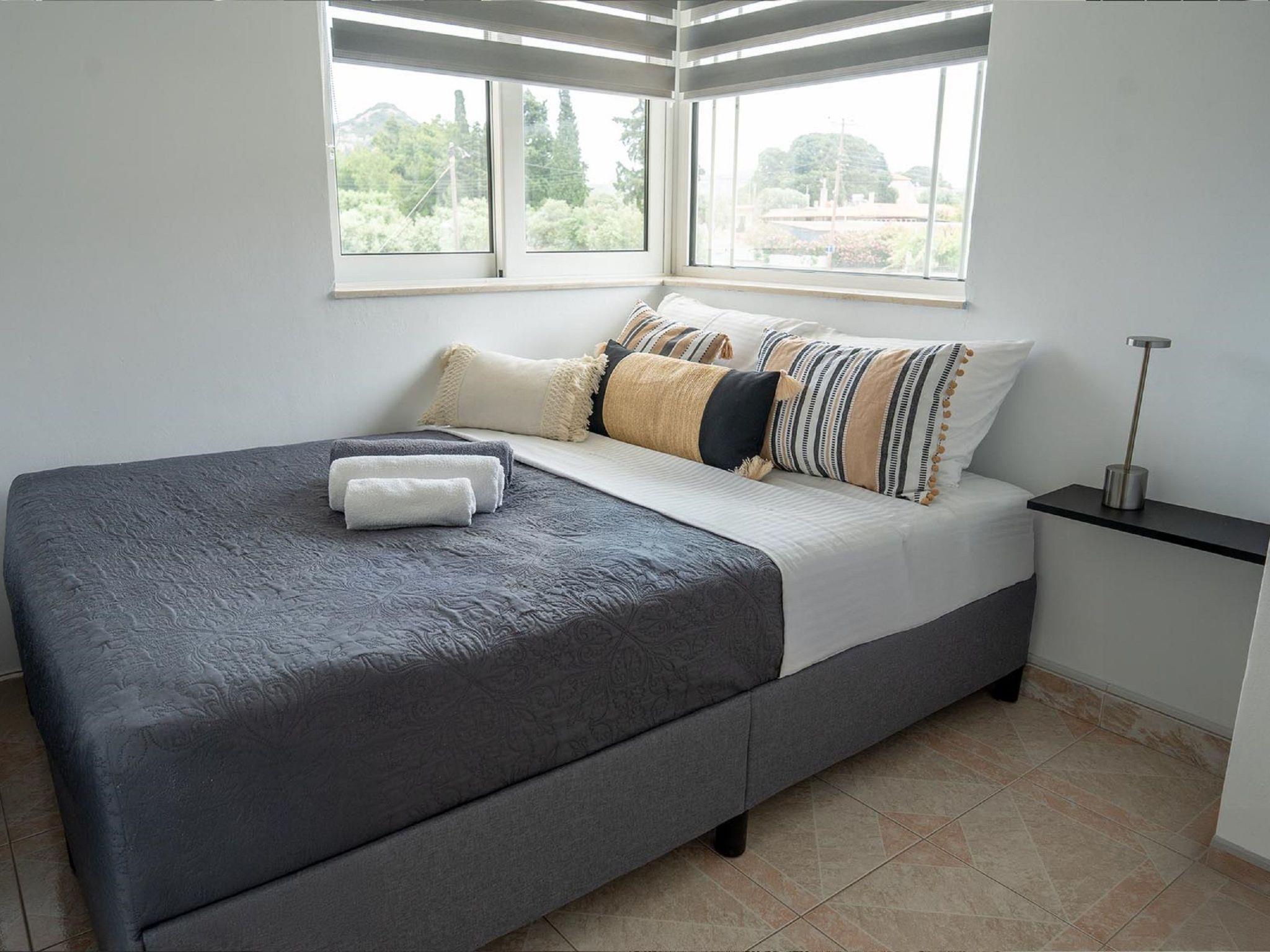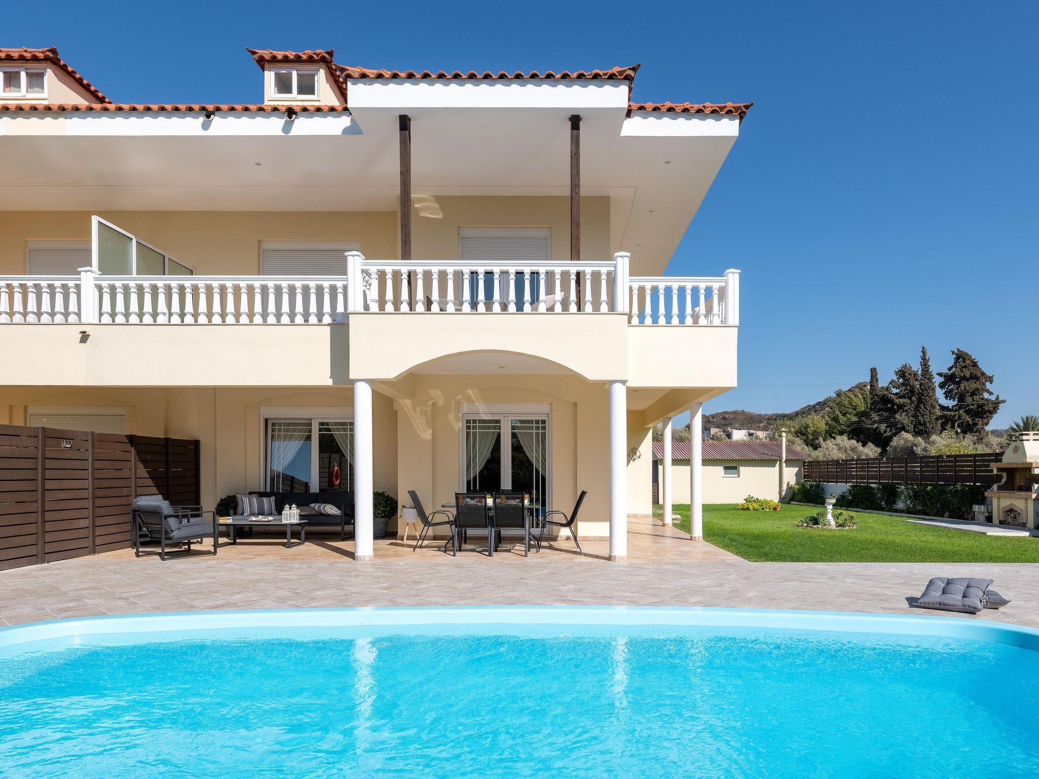 Villa Montefile is set on a beautiful side of Ialysos and offers a wonderful private swimming pool. Its great advantages are the great location, you’ll find it only a 6-minute drive from the beach as well as its contemporary interior design. The airport of Rhodes is found at a driving distance of only 15 minutes. It conveniently accommodates up to 7 guests and offers everything you might need during your holidays in Rhodes!Villa Montefile has three fully air-conditioned bedrooms, all of them with double beds and balconies. Also, it has An airconditioned bedroom with a single bed and a window. One of the double bedded bedrooms includes an ensuite bathroom with a shower and has a flat-screen TV. There are two bathrooms in total, with showers as well as a WC. All areas of the villa are fully airconditioned. Also, there’s an open-plan huge kitchen which is fully equipped and suitable for any meal preparation. In the same area, you will find the sitting area of the kitchen along with an incredibly cozy living room in bright tones. There’s a smart TV and free Wi-Fi access throughout the property. There’s an entrance that leads to two houses that belong to one property. As you face the property from the entrance, Villa Montefile is on the left.
