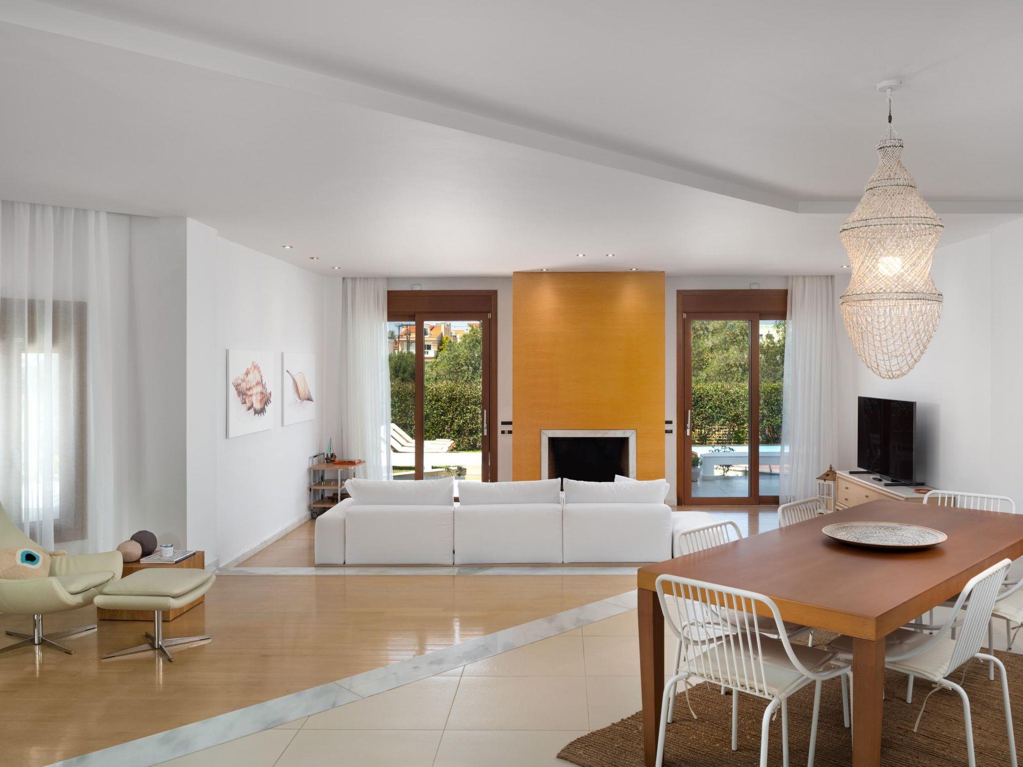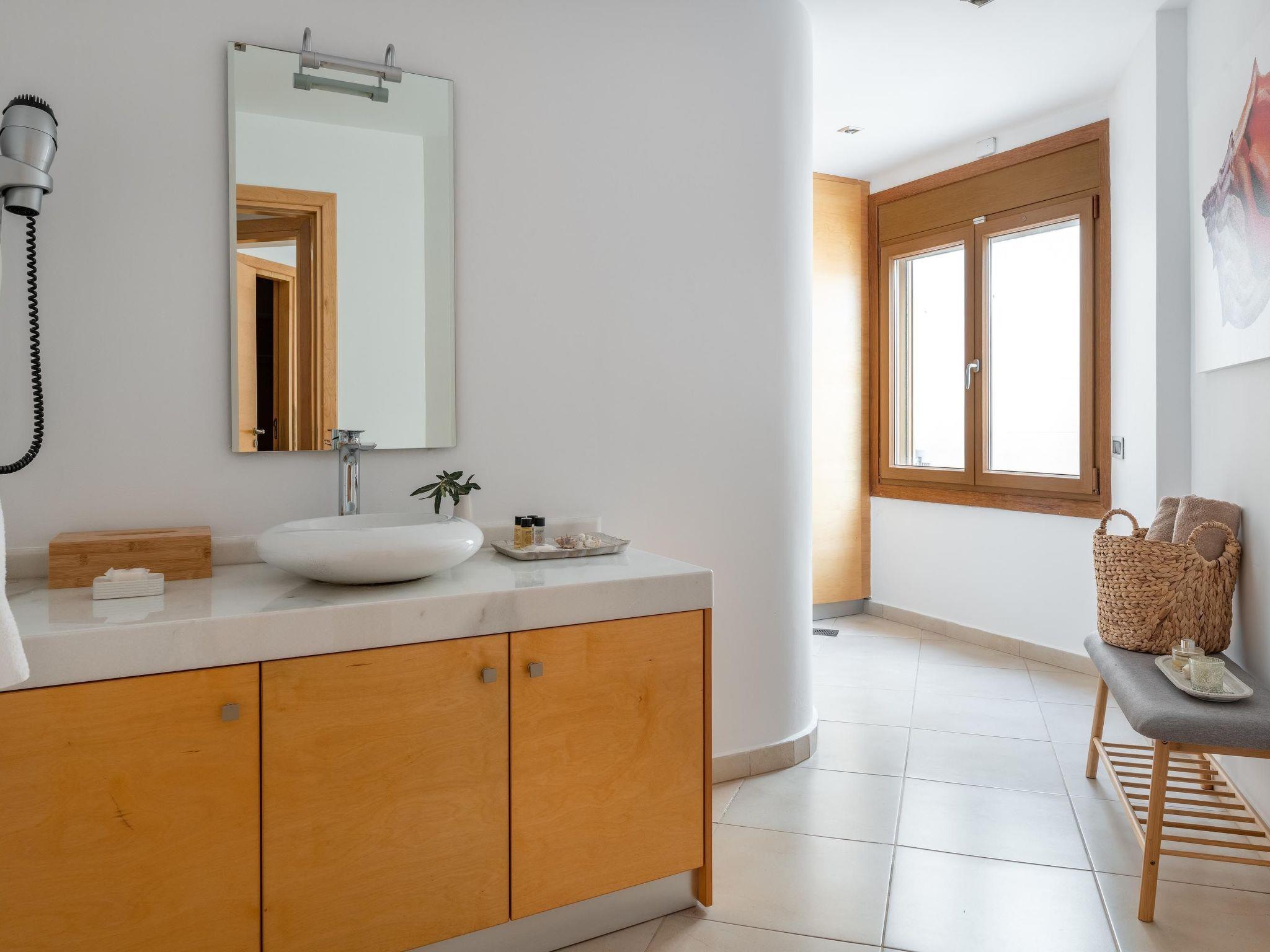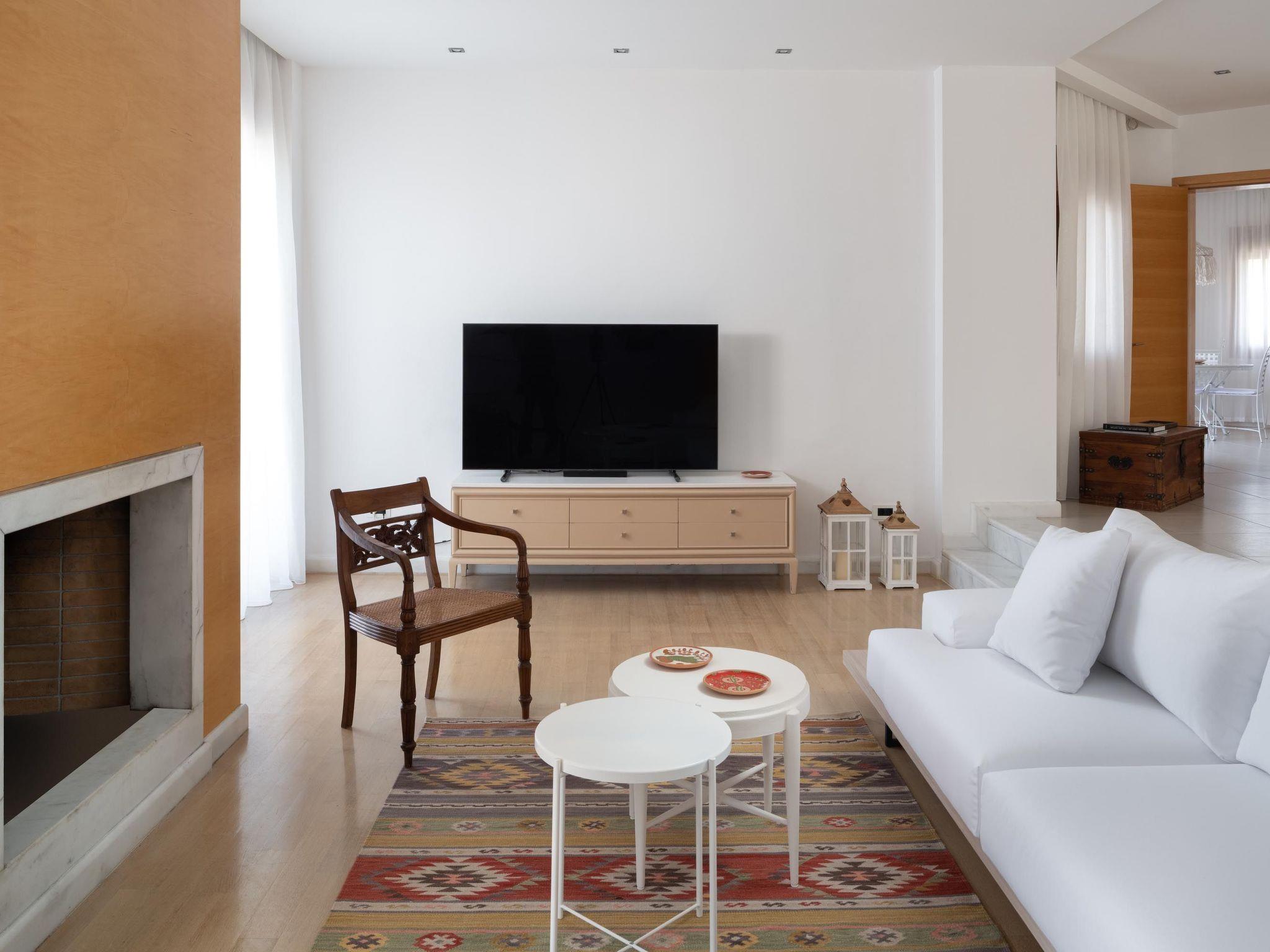 Love White Villa is set in the heart of Ialysos near all urban conveniences and offers a dreamy private swimming pool and surreal interior beauty. Its great advantage is that you’ll find it a few steps from the Ialysos beach as well as its great interior and exterior design that is quite airy and stylish. Love White Villa is a luxury home for private use, which was built to meet high standards of comfort, and is now available for rent. This lovely property provides you with the most romantic sunset hours and conveniently accommodates up to 6 guests.Love White Villa is a work of minimalistic brilliance featuring open-plan interiors. This spectacular villa has 2 fully air-conditioned bedrooms with quality mattresses and clean lines. Both bedrooms are on the first floor and have fantastic balconies. The oversized master bedroom has a king-sized bed and a cozy living room in white tones. It provides an ensuite master bathroom with a hot tub and a rain shower. The second bedroom, in a pearl-white palette, has a double bed and an ensuite bathroom with a hot tub and a rain shower. Both incredible bedrooms own walk-in closets. On the ground floor, there’s an open-plan huge kitchen which is fully equipped and suitable for any meal preparation. There are multiple seating areas where you can enjoy a meal. Also, there is a charming living room in white tones with a smart TV and a modern marble fireplace. There’s a wc. In addition, there are plenty of smart TVs and free Wi-Fi access throughout the property as well as floor heating. Love White villa continues to surprise you as you go downstairs, to the sophisticated basement. It has a unique living room with a sofa that easily converts into a comfy double sofa bed. Also, at the same level, there is a second fully equipped kitchen and a laundry room with a washing machine and a dryer. Also, there is a stylish bathroom with a hot tub and a rain shower. Most of the shutters are electric. In the outside area, guests can enjoy the dreamy private swimming pool surrounded by lovely gardening. There are plenty of sun loungers where you can relax and work on your tan under the rays of the Aegean Sun. Of course, the beach is found within a 5-minute walk so you can easily spend your time there. Also, there’s a BBQ installation along with a seating area to enjoy a gathering with your friends or family. Guests should know that there’s a private parking area for two cars as well as that a central security alarm is installed throughout the house.