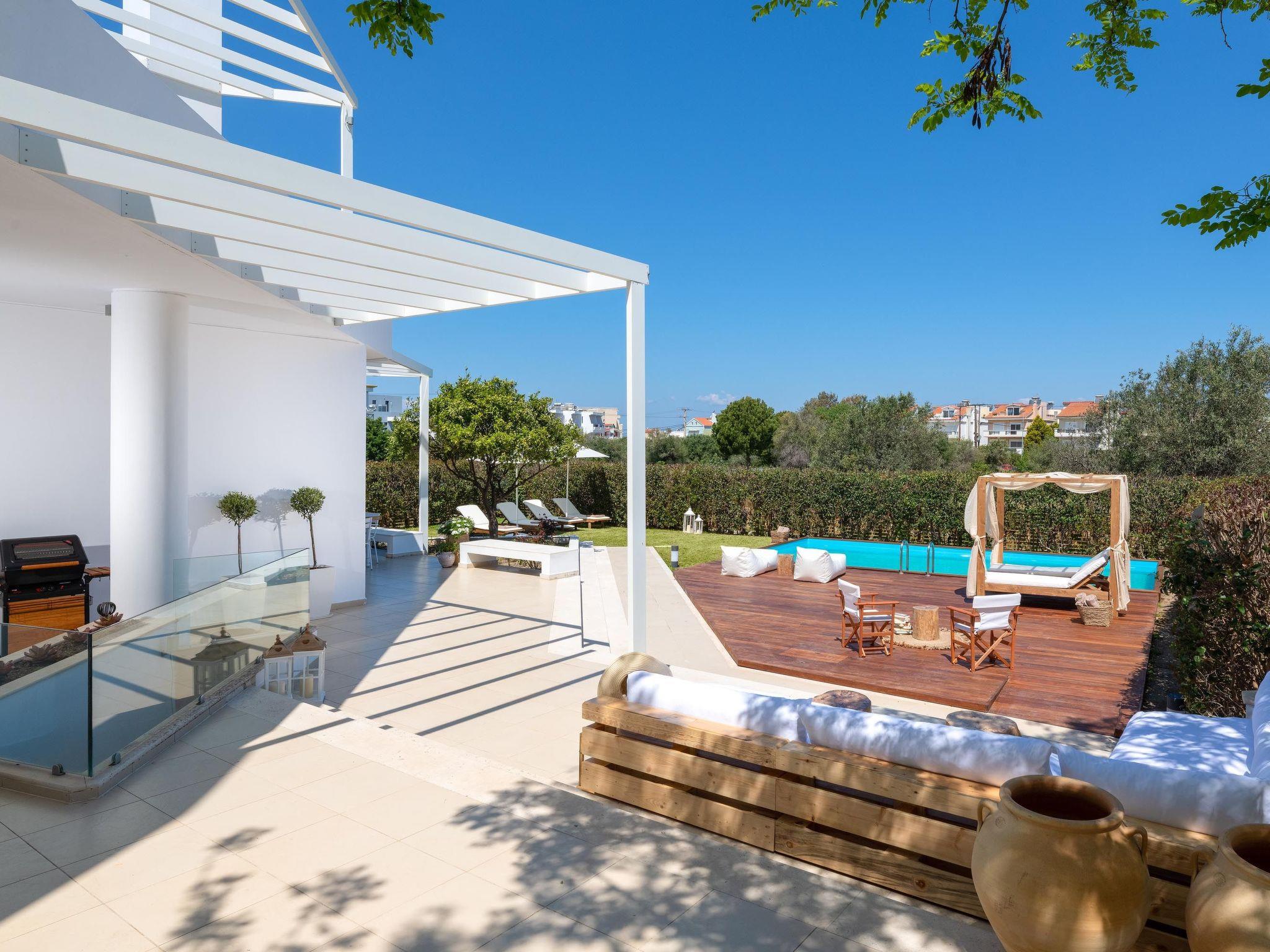 This incredible villa is set in Ialysos, where you can find in a few steps everything you might need during your stay such as supermarkets, pharmacies, restaurants, and car rentals. Ialysos beach is found in only a 5-minute walk. At Ialysos beach, you’ll have the chance to admire an idyllic sunset and take a romantic walk. Also, visitors should explore the Old Town, a UNESCO World Heritage, a distance of about a 15-minute drive away from the house. Visitors shouldn’t miss one of the most attractive destinations of Rhodes, the Valley of the butterflies within a distance of only a 25-minute drive. The villa is about an hour's drive away from the south part of the island, Lindos. Lindos Acropolis is the most exquisite archaeological site on Rhodes and has the dreamiest beaches. The airport is located only a 15-minute driving distance.