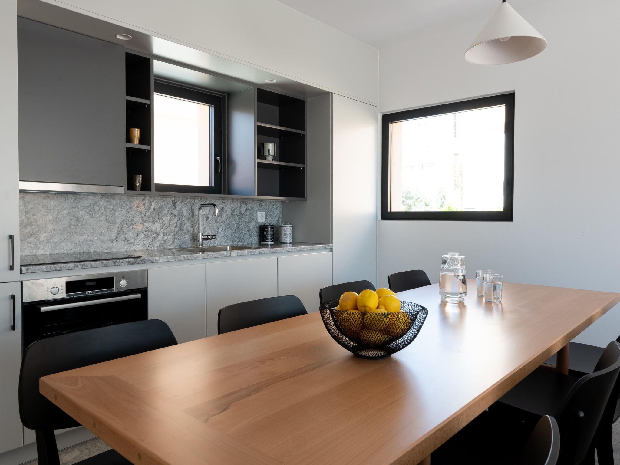Nisi Living Concept are 6 fantastic brand-new properties designed in a unique Scandinavian architecture with unique Greek details. They are located in the heart of Ialysos, only a 5-minute walk from the nearest incredible beach of Ialysos. All of the boutiques have all comforts and private swimming pools and patios in a minimalistic and simplistic design. There is a BBQ installation. Each property accommodates up to 2, 6 or 7 guests.Rhodes hosts up to 7 guests. On the first floor, it has 2 beautiful airconditioned bedrooms with a double bed in a unique decoration. One of these bedrooms has a bathroom with a shower. Also, there is a bedroom with a single bed. Also, there is another bathroom with a shower and a WC. On the ground floor there is an open plan fully equipped kitchen, suitable for any meal preparation accompanied by the seating area and the living room. In the same area, there is a double bed. There’s a smart TV and free WIFI access throughout the property. Outdoors, there’s a private swimming pool with sunbeds, a pergola and a seating area where you can relax under the rays of the Aegean sun. You can spend your time by your private swimming pool or enjoy a fresh meal prepared in the sharing BBQ installation and the wood oven. Also, there is a sharing outdoor seating area. In the basement, all of the boutiques except for Chalki have leading stairs and doors to the parking area. You can lock your door throughout your stay. In the basement, there is sharing washing machines. This amazing property and the beautiful location make the perfect match for a memorable stay and unforgettable holidays in Rhodes!