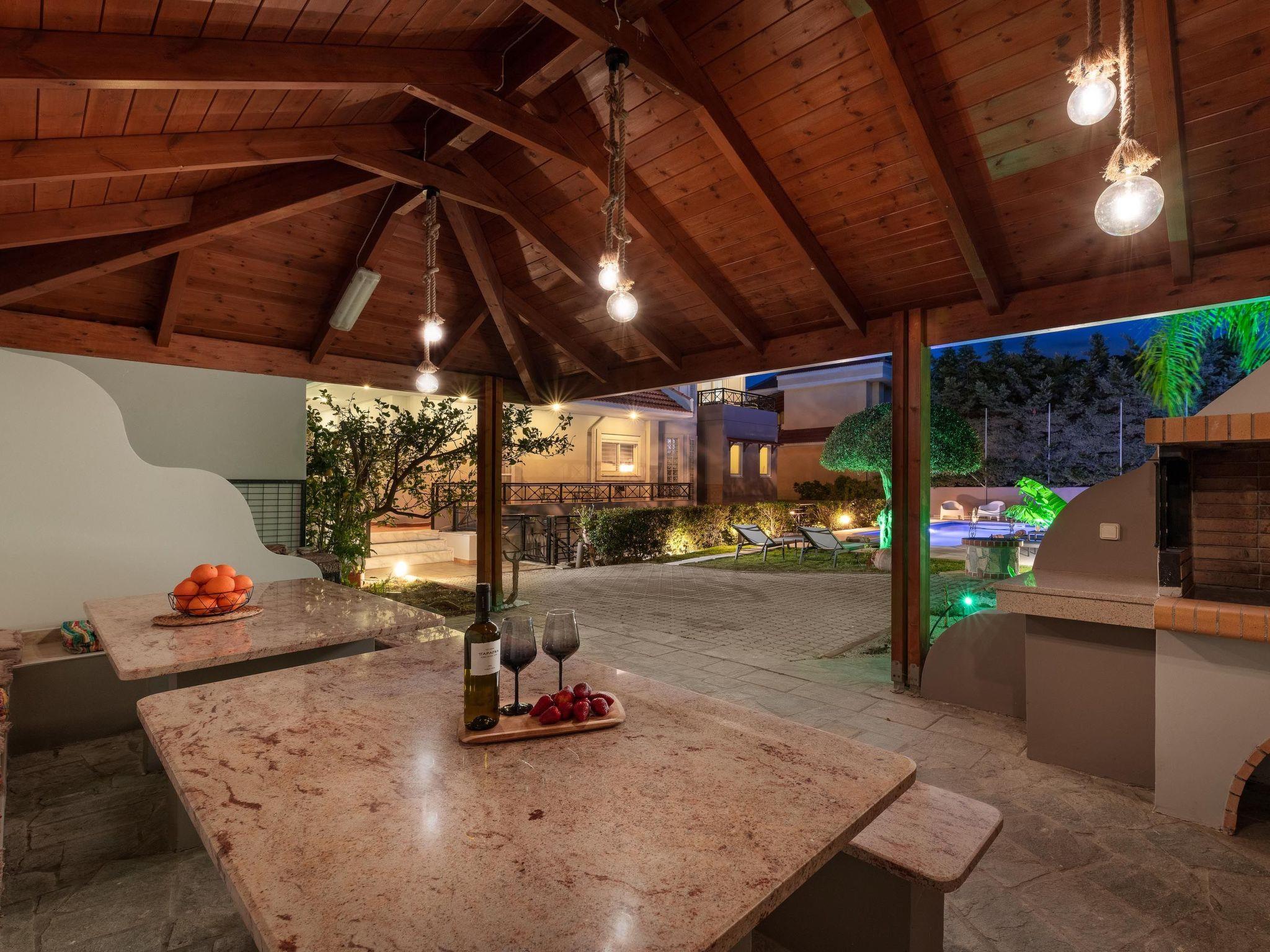 Outdoors, guests will find their private swimming pool where they can rest on their sunbeds and benefit from the summer sun of Rhodes. Don’t miss the opportunity to use the wooden oven & the BBQ facilities to enjoy a fresh meal. Also, there's table tennis for fun moments with your loved ones! Guests will have exclusive access to the garden and all outdoor amenities, ensuring complete privacy and comfort during their stay.