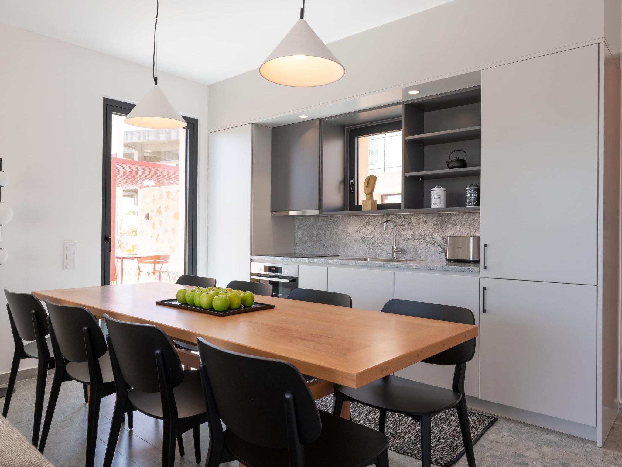 Nisi Living Concept are 6 fantastic brand-new properties designed in a unique Scandinavian architecture with unique Greek details. They are located in the heart of Ialysos, only a 5-minute walk from the nearest incredible beach of Ialysos. All of the boutiques have all comforts and private swimming pools and patios in a minimalistic and simplistic design. Each property accommodates up to 2, 6 or 7 guests.Kos hosts up to 7 guests. On the first floor, it has 2 beautiful airconditioned bedrooms with a double bed in a unique decoration. One of these bedrooms has a bathroom with a shower. Also, there is a bedroom with a single bed. Also, there is another bathroom with a shower and a WC. On the ground floor there is an open plan fully equipped kitchen, suitable for any meal preparation accompanied by the seating area and the living room. In the same area, there is a double bed. There’s a smart TV and free WIFI access throughout the property. Outdoors, There’s a private swimming pool with sunbeds, a pergola and a seating area where you can relax under the rays of the Aegean sun. You can spend your time by your private swimming pool or enjoy a fresh meal prepared in the sharing BBQ installation and the wood oven. Also, there is a sharing outdoor seating area. In the basement, all of the boutiques except for Chalki have leading stairs and doors to the parking area. You can lock your door throughout can lock your door throughout your stay. In the basement, there are sharing washing machines and clothes dryers. This amazing property and the beautiful location make the perfect match for a memorable stay and unforgettable holidays in Rhodes!