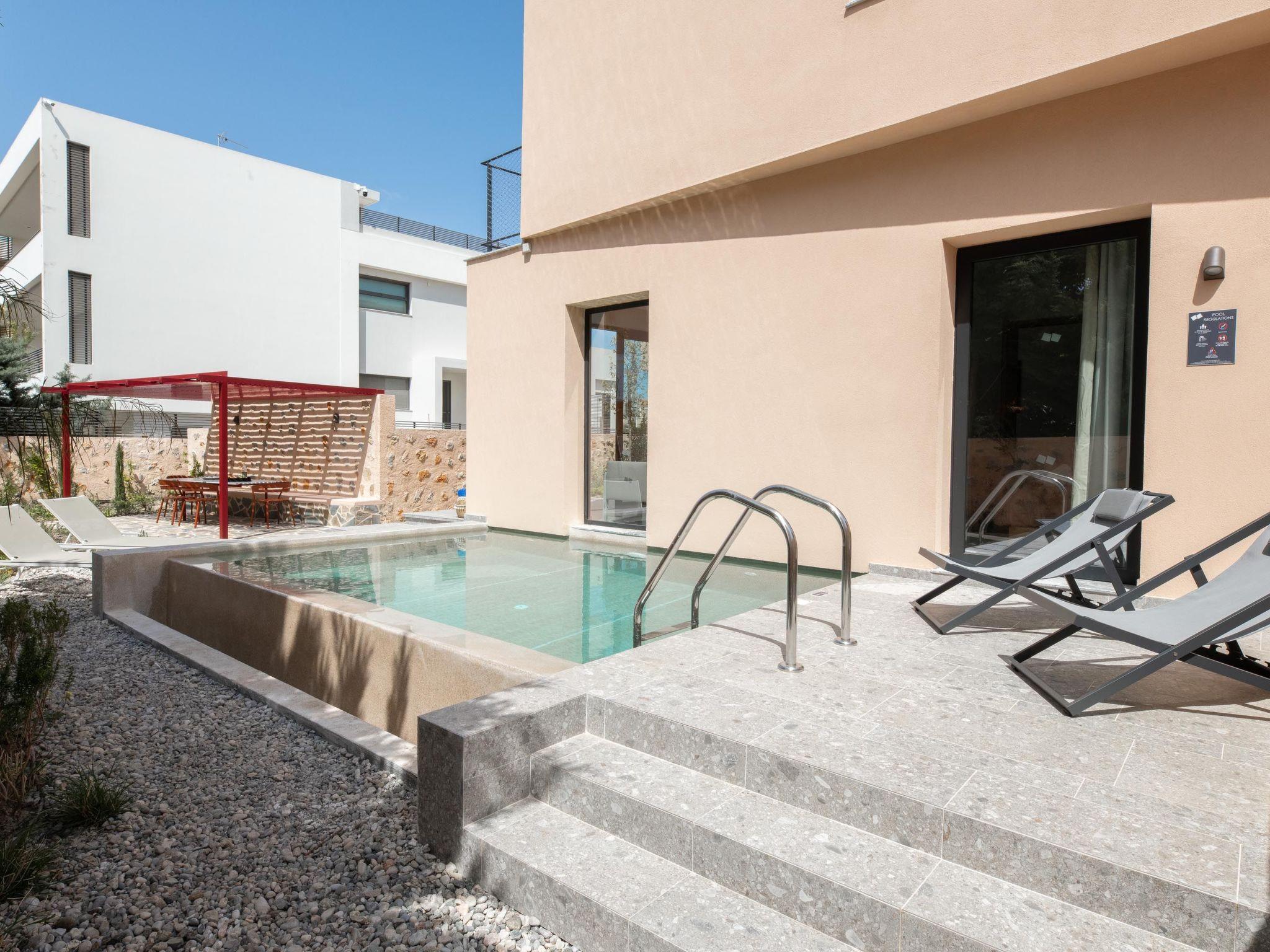 Nisi Living Concept are 6 fantastic brand-new properties designed in a unique Scandinavian architecture with unique Greek details. They are located in the heart of Ialysos, only a 5-minute walk from the nearest incredible beach of Ialysos. All of the boutiques have all comforts and private swimming pools and patios in a minimalistic and simplistic design. There is a BBQ installation. Each property accommodates up to 2, 6 or 7 guests.Kasos hosts up to 6 guests. On the first floor, it has 2 beautiful airconditioned bedrooms with a double bed in a unique decoration. One of these bedrooms has a bathroom with a shower. Also, there is another bathroom with a shower. On the ground floor there is an open plan fully equipped kitchen, suitable for any meal preparation accompanied by the seating area and the living room. In the same area, there is a double bed. There’s a smart TV and free WIFI access throughout the property. Outdoors, there’s a private swimming pool with sunbeds, a pergola and a seating area where you can relax under the rays of the Aegean sun. You can spend your time by your private swimming pool or enjoy a fresh meal prepared in the sharing BBQ installation and the wood oven. Also, there is a sharing outdoor seating area. In the basement, all of the boutiques except for Chalki have leading stairs and doors to the parking area. You can lock your door throughout your stay. In the basement there are sharing washing machines.This amazing property and the beautiful location make the perfect match for a memorable stay and unforgettable holidays in Rhodes!