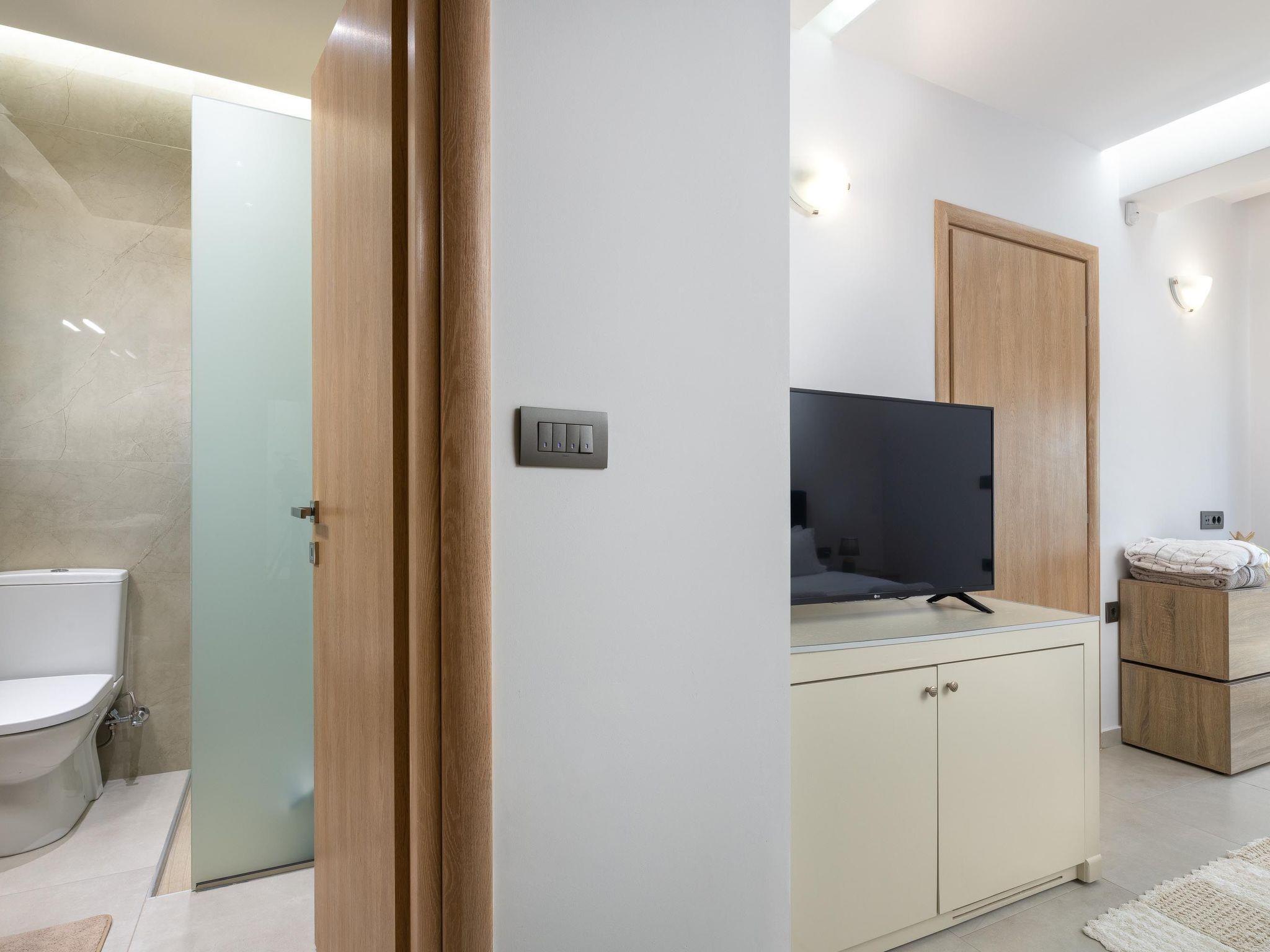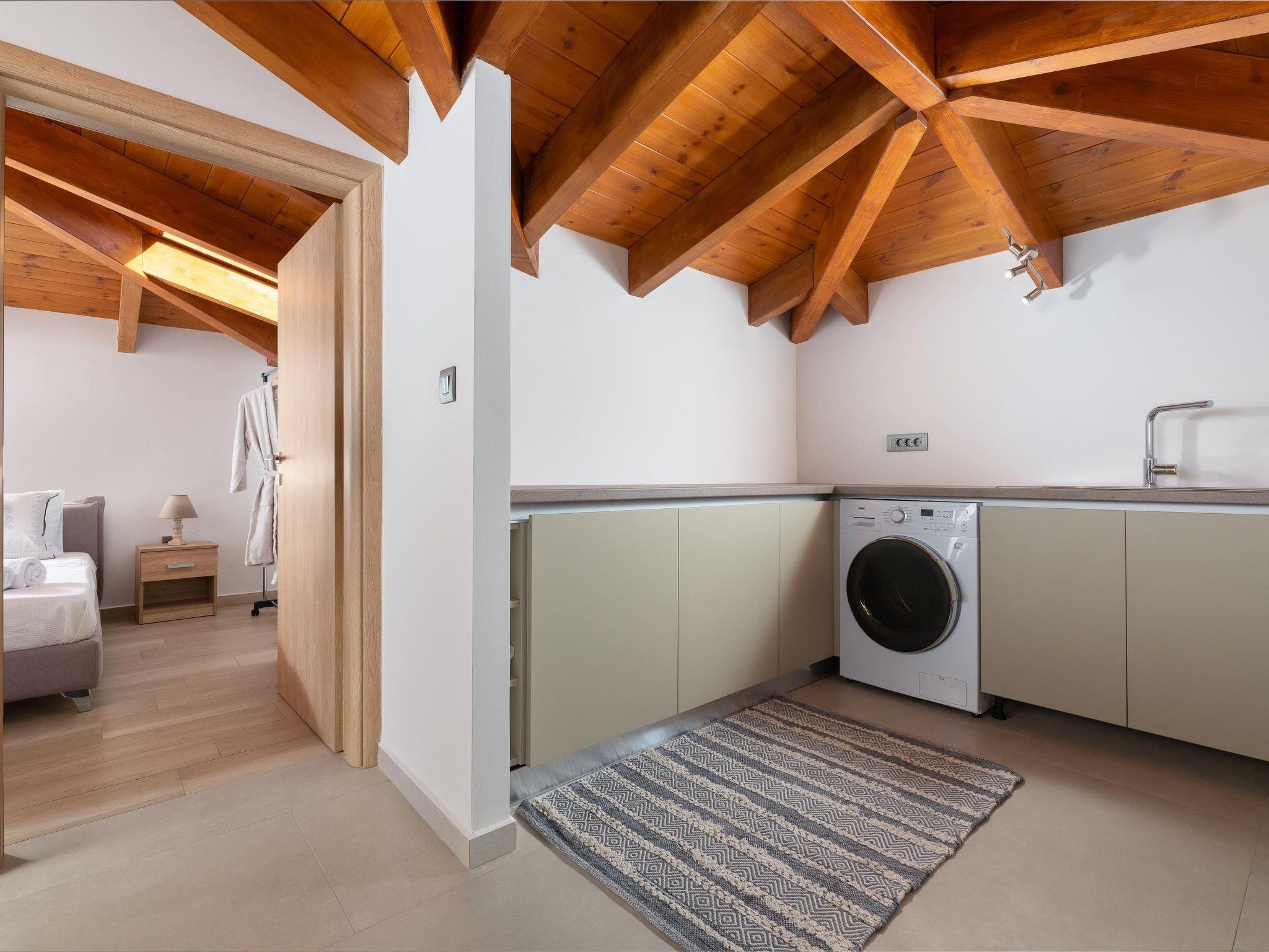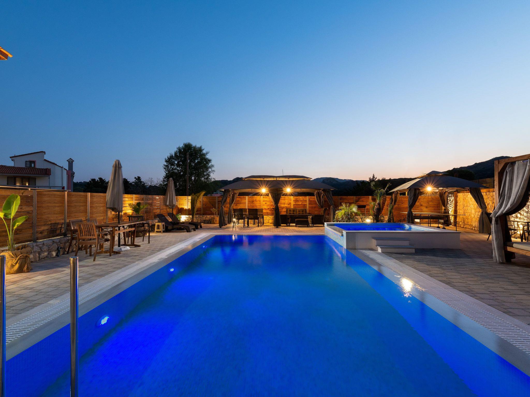 This marvelous luxury villa has 4 fully air-conditioned bedrooms. Half of the bedrooms have kinged sized double beds and the other half have twin beds. Also, there’s a comfy sofa bed in the living area. All bedrooms and areas are fully air-conditioned and have beautiful balconies with an amazing view of Greek nature. There are 2 bathrooms, one ensuite in a bedroom that has a shower, and one sharing that has a relaxing bathtub. On the ground floor, guests will find a fully equipped kitchen, suitable for any meal preparation. The modern kitchen is sharing the area with the living room, designed and decorated in warm tones. There’s free Wi-Fi access throughout the property as well as a smart TV with satellite channels, Netflix and karaoke. Outside is as beautiful as on the inside. There’s an amazing private swimming pool with a soothing unheated Jacuzzi, where you can relax and enjoy your holidays to the fullest. Also, there are BBQ facilities and a sitting area where you can prepare a meal and enjoy a gathering with your loved ones surrounded by beautiful nature.