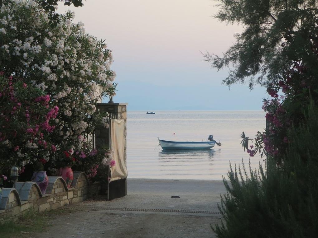 Vor dem Gebäude lädt ein kleiner Kieselstrand zum Baden im klaren Meer ein. Der Sandstrand von Kala Nera liegt nur etwa 5 Gehminuten entfernt, immer am Meer entlang. Das Dorf hat eine lange schattige Promenade, genau richtig zum Spazierengehen, Einkaufen, zu einer gemütlichen Mahlzeit in einer der Tavernen oder zu einem Drink in einer der Strandcafes oder Bars. Der Strand ist flach und sandig, in den Sommermonaten teilweise organisiert und wird jedes Jahr mit der "Blauen Flagge" (= sauberes Wasser) ausgezeichnet.