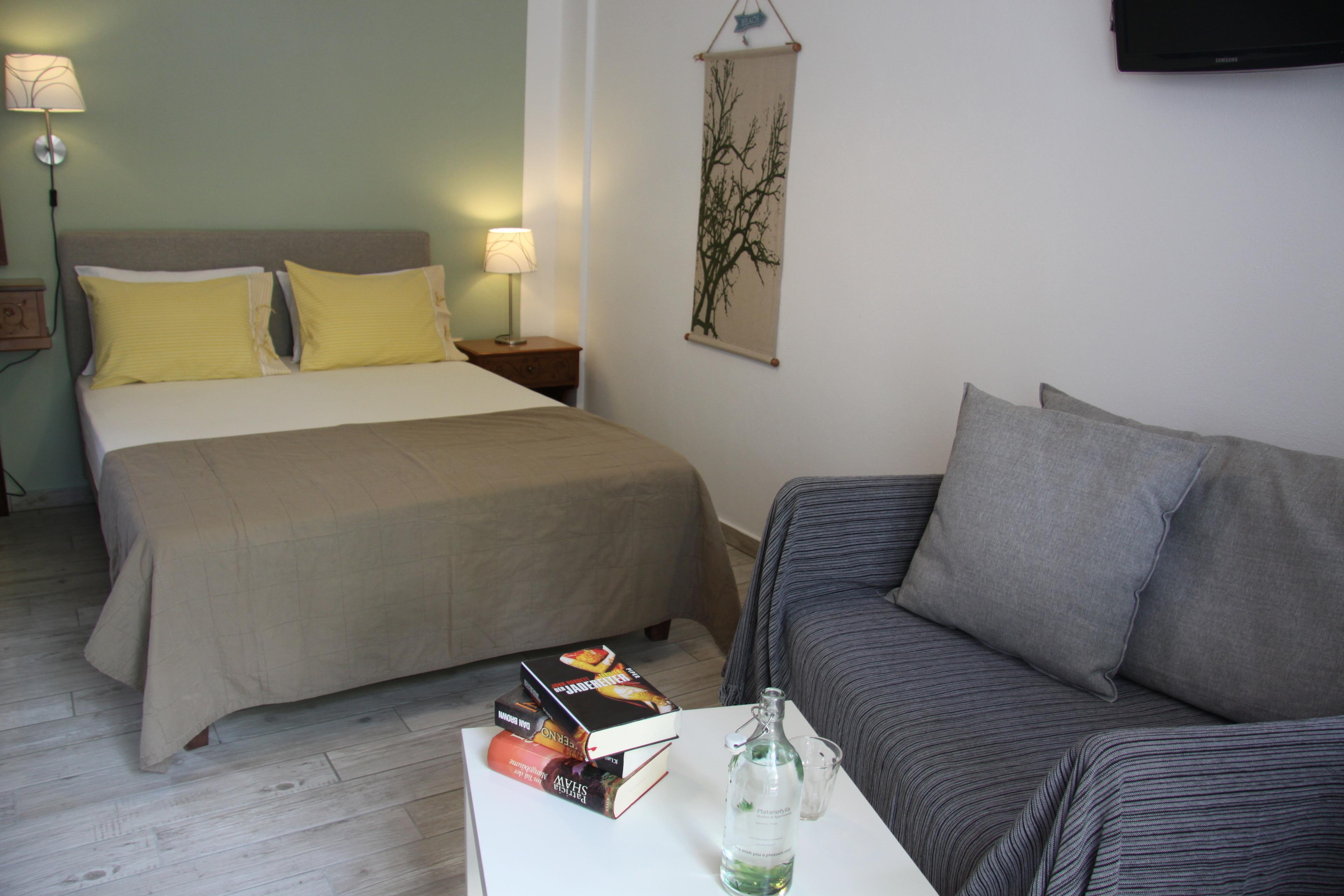Im Griechischen bedeutet "Platanofylla" Platanenblätter. Unser Haus ist umgeben von alten Platanen, und Sie werden besonders in den warmen Sommermonaten dankbar ihren Schatten genießen und Ihre Freude an dem frischen Grün haben.