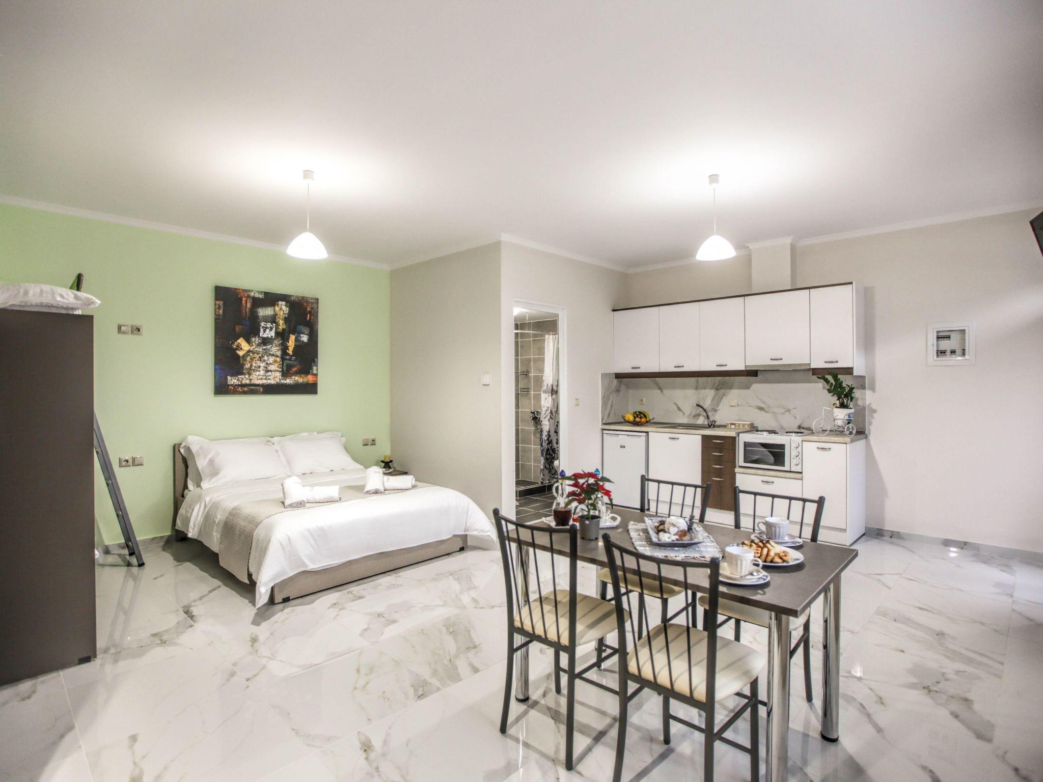 Outside, the apartment boasts a charming terrace, offering a tranquil spot to unwind after a day of exploration. It's a lovely space where the ambiance of Kalabaka can be soaked in, providing a serene backdrop to your morning coffee or evening conversation. The balcony also presents city views, allowing guests to feel connected to the vibrant life surrounding them.