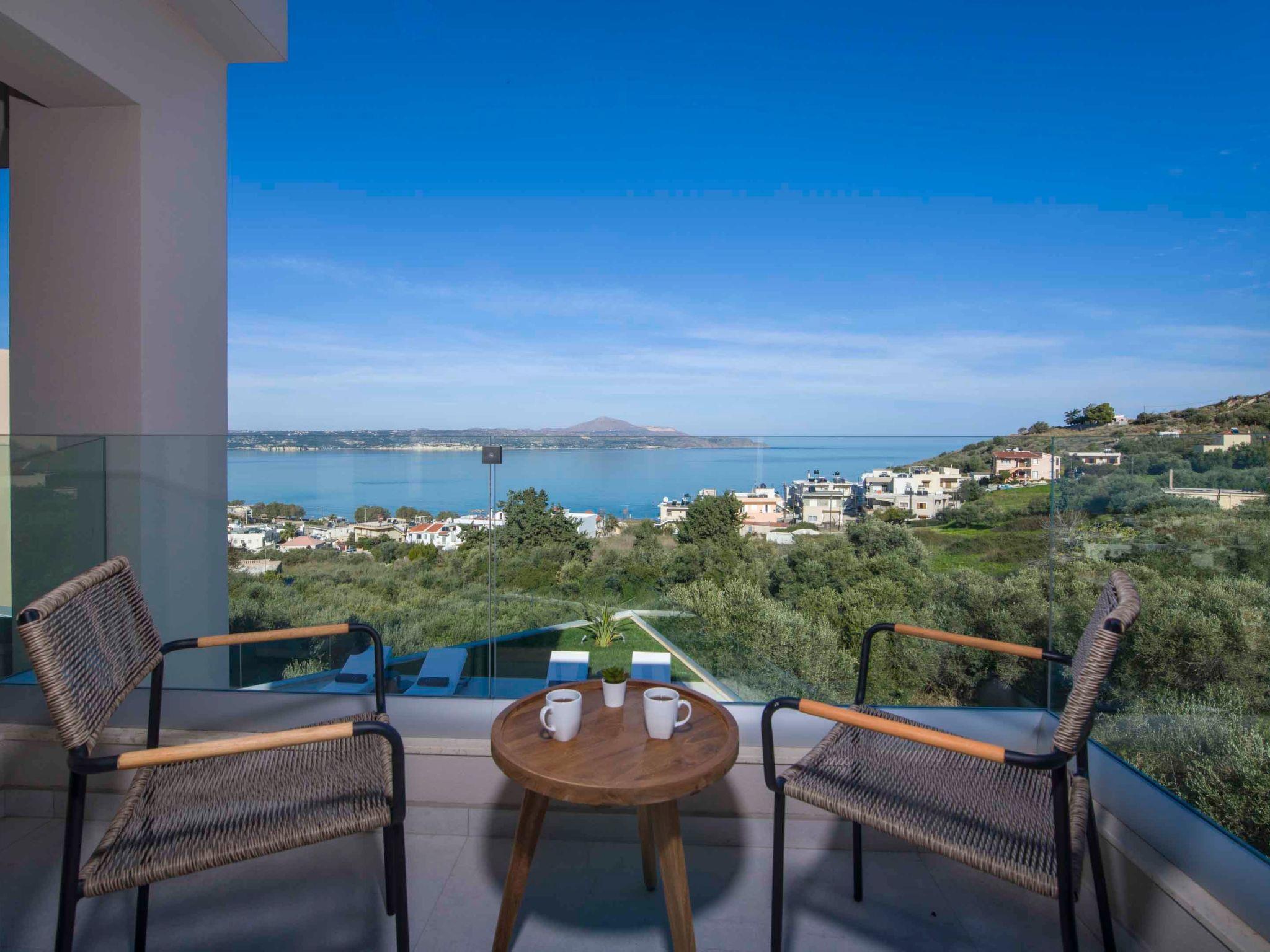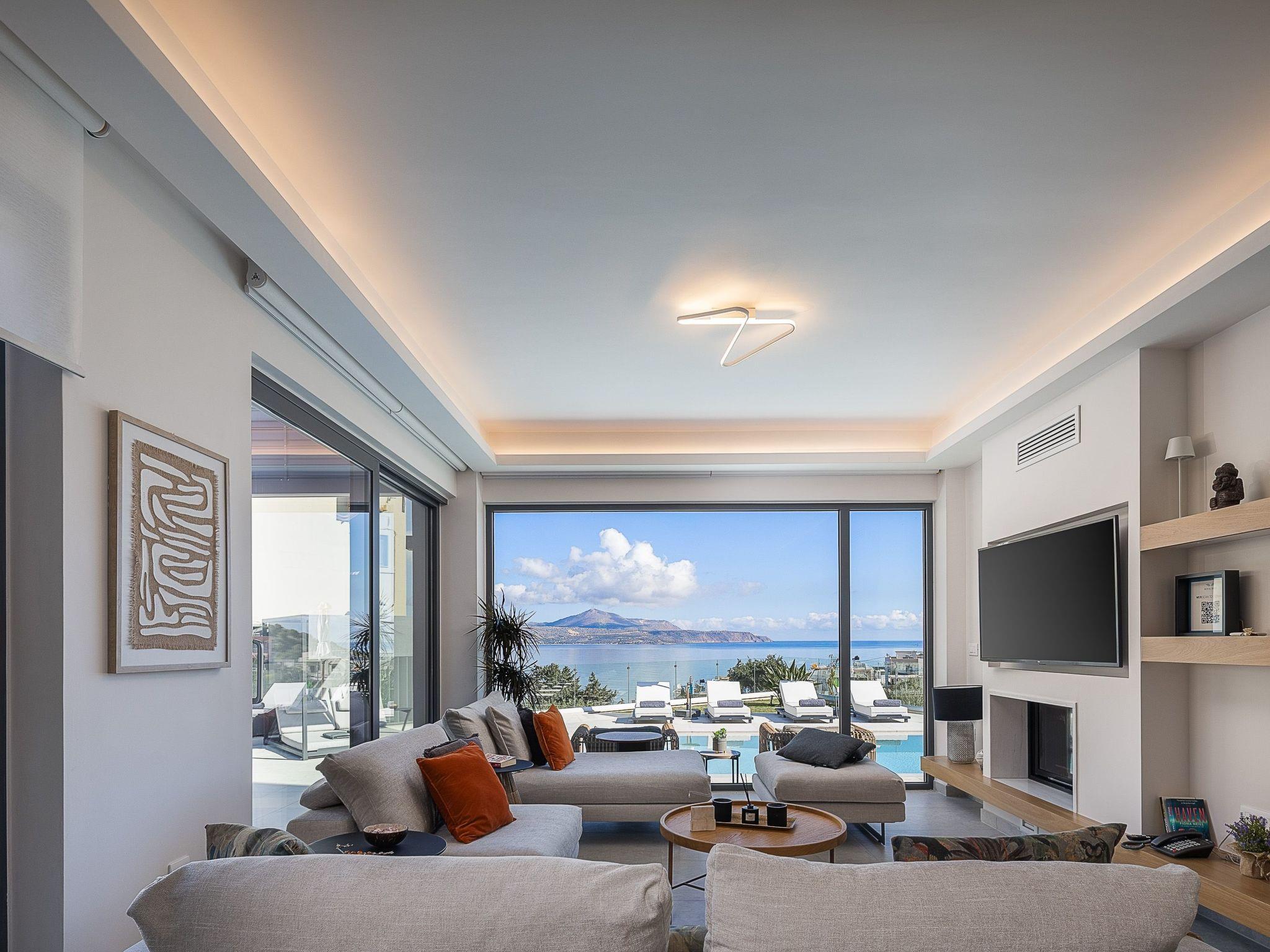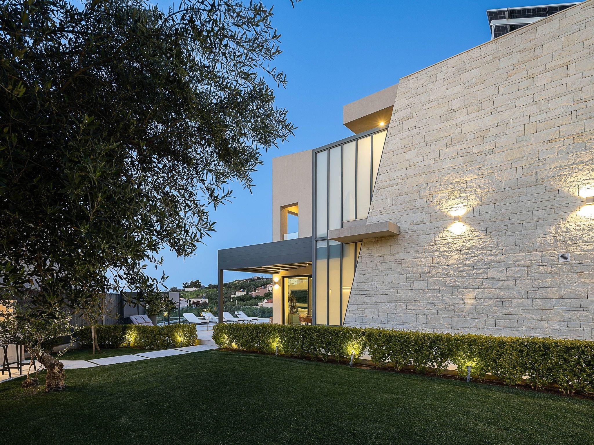 An autonomous, private, and luxurious villa is located on a hilltop in an amazing sea-view village in Kalyves. The beautiful three-storey villa offers a high quality of amenities and ensures that you will enjoy all the luxurious facilities. The neutral palette and minimalistic design will absolutely make the villa the perfect vacation spot for you and your loved ones.