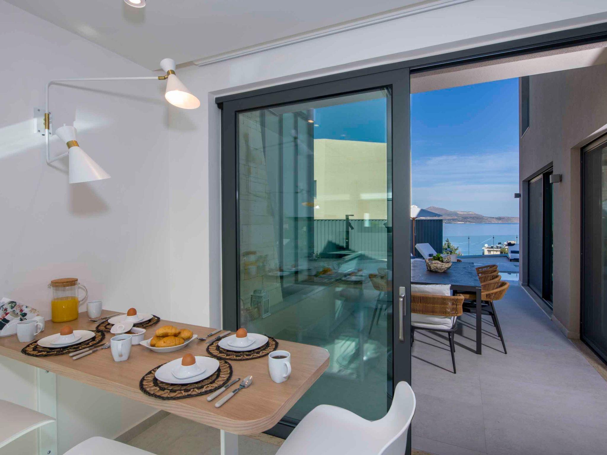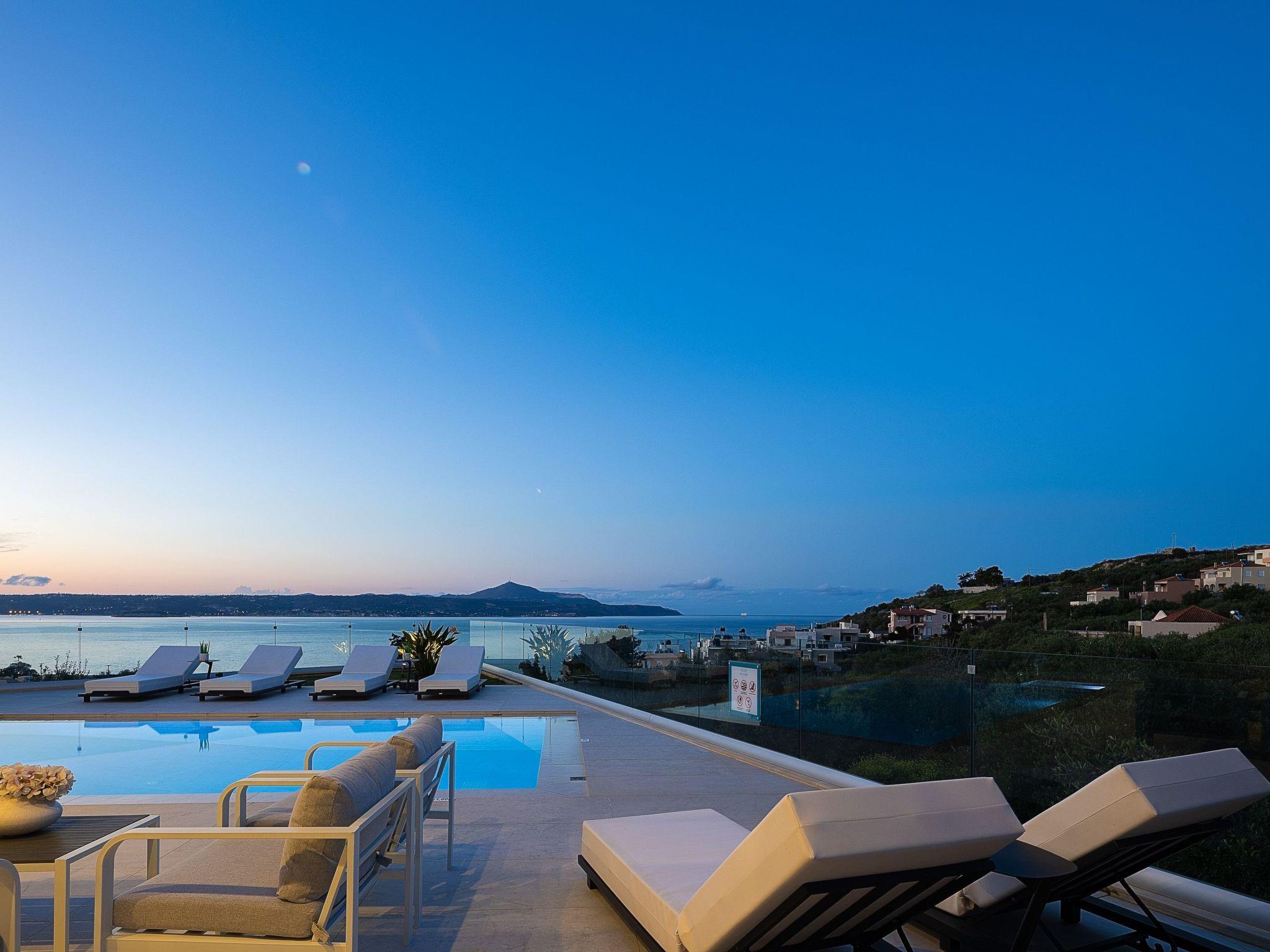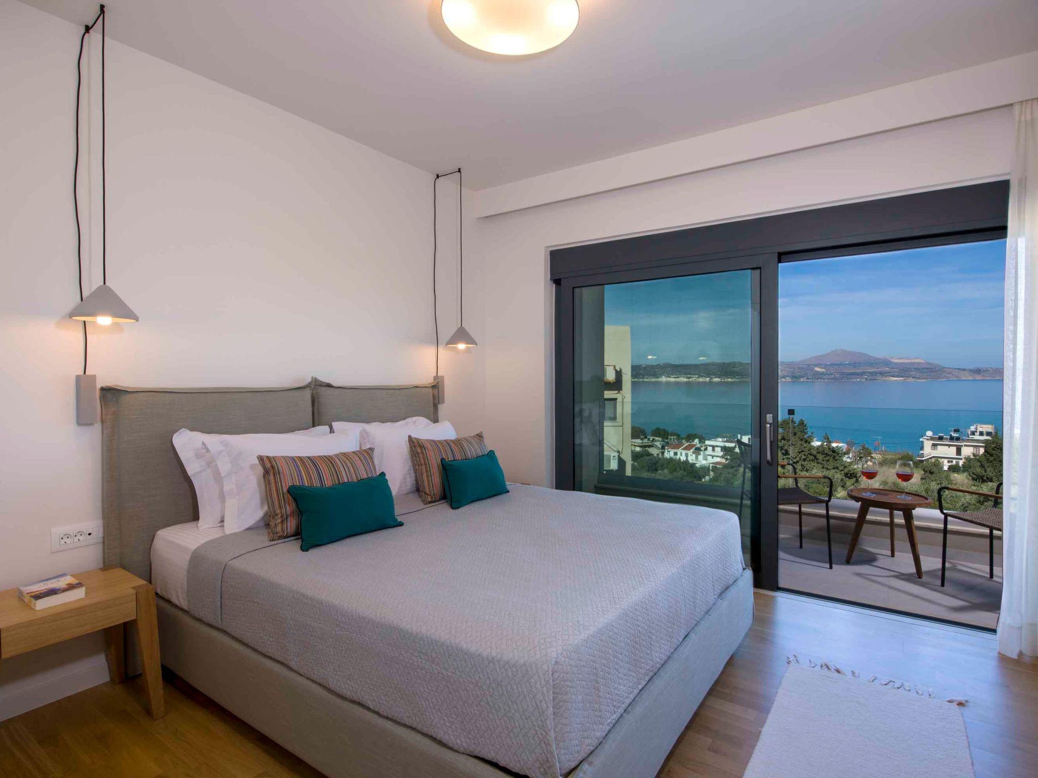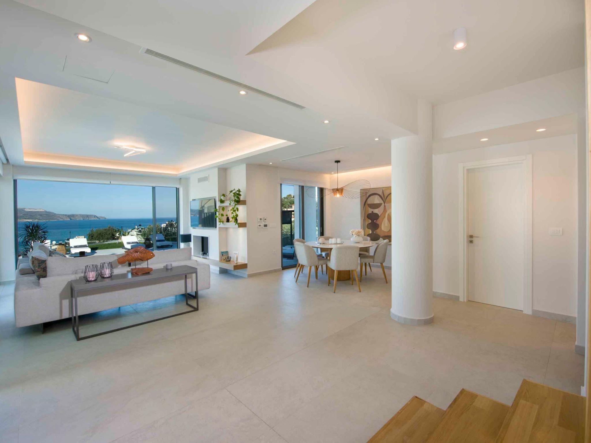 An autonomous, private, and luxurious villa is located on a hilltop in an amazing sea-view village in Kalyves. The beautiful three-storey villa offers a high quality of amenities and ensures that you will enjoy all the luxurious facilities. The neutral palette and minimalistic design will absolutely make the villa the perfect vacation spot for you and your loved ones.