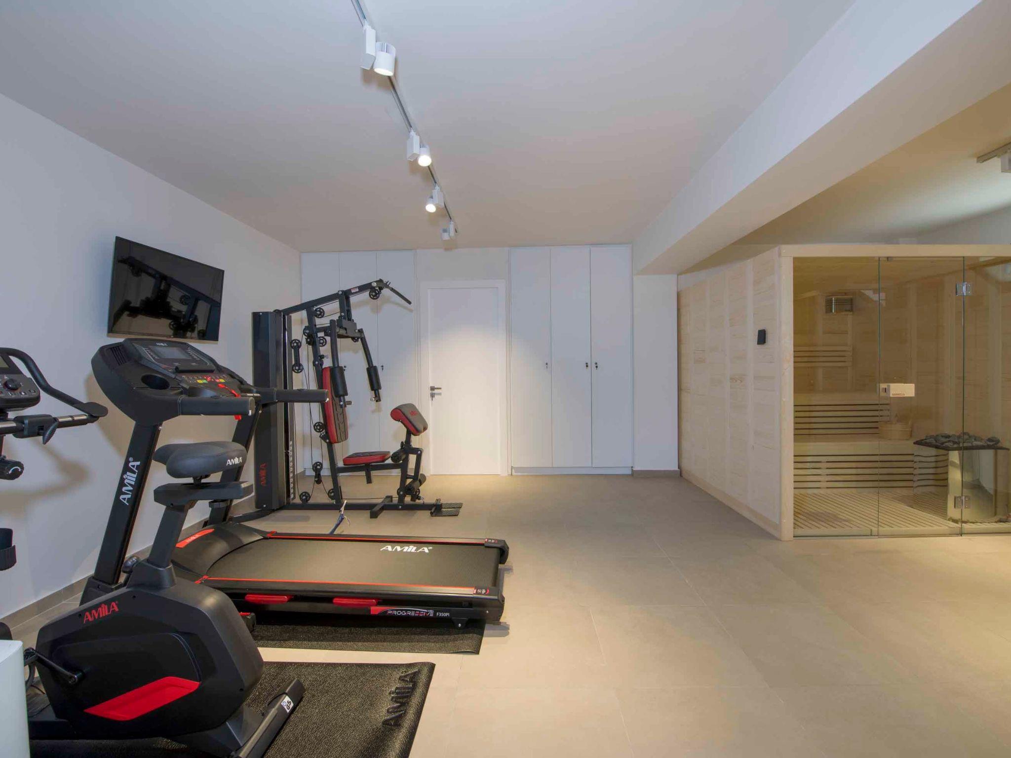 On the lower level, there is a gym for anyone who wants to keep up with their workout routine. Furthermore, in the same area, there is a sauna room where you can relax and a shower room.
