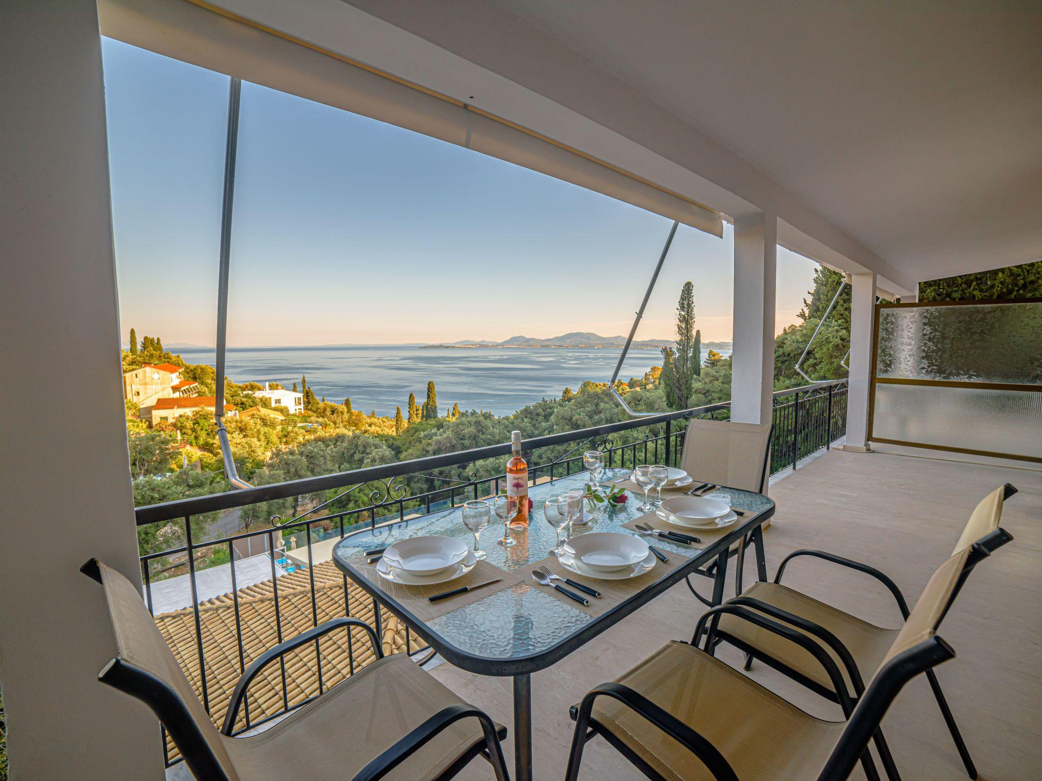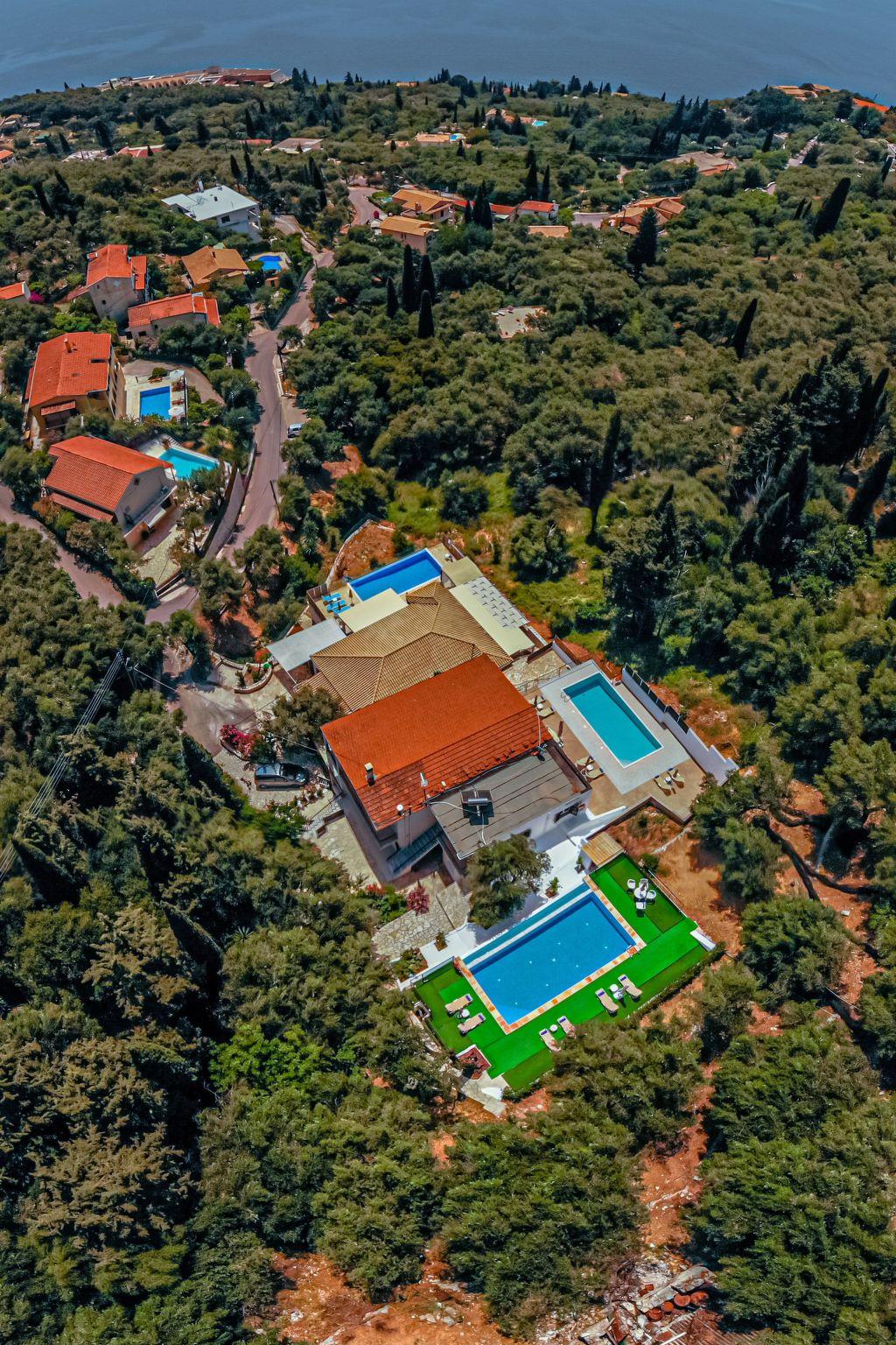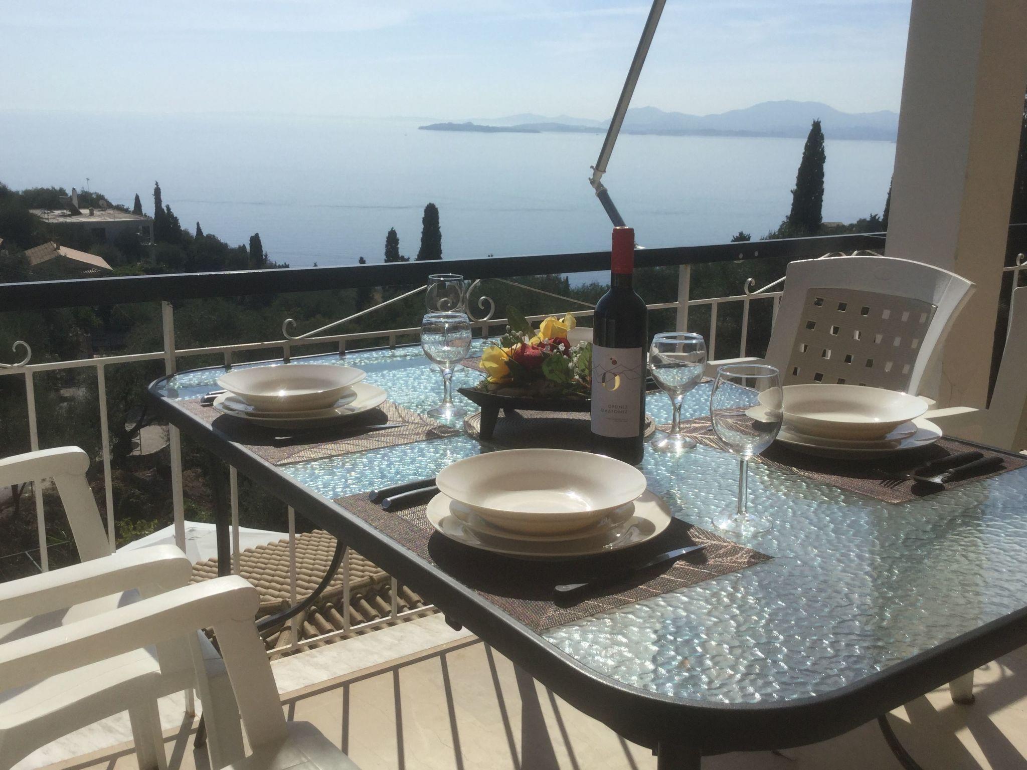 Combining a stunning wide view of the coastiline of Corfu Zeus 1 PRIVATE pool apartment (use only for one apartment) has 2 bedrooms, have been lovingly decorated - the master bedroom comes complete with double bed and en suite bathroom, whilst the remaining twin bedroom have use of its own bathroom with. Both bathrooms offer a hairdryer. Fully equiped kitchen,living room,2 bathrooms in perfect spot just 800 meters above Skinos Beach of Nissaki.