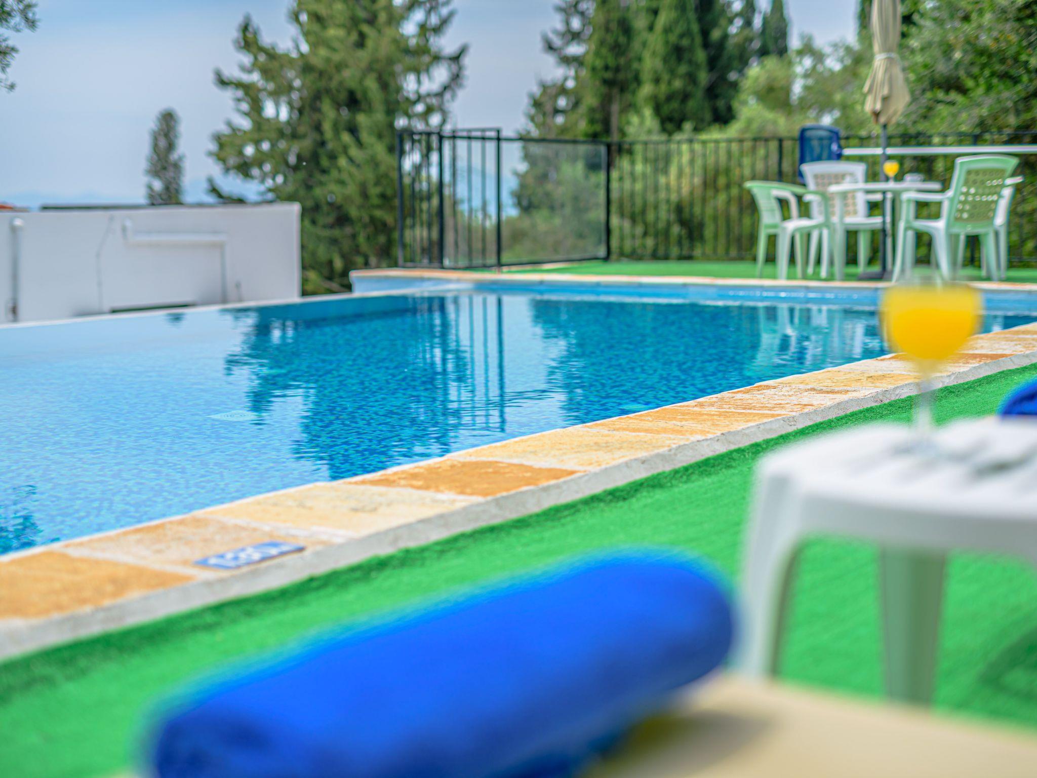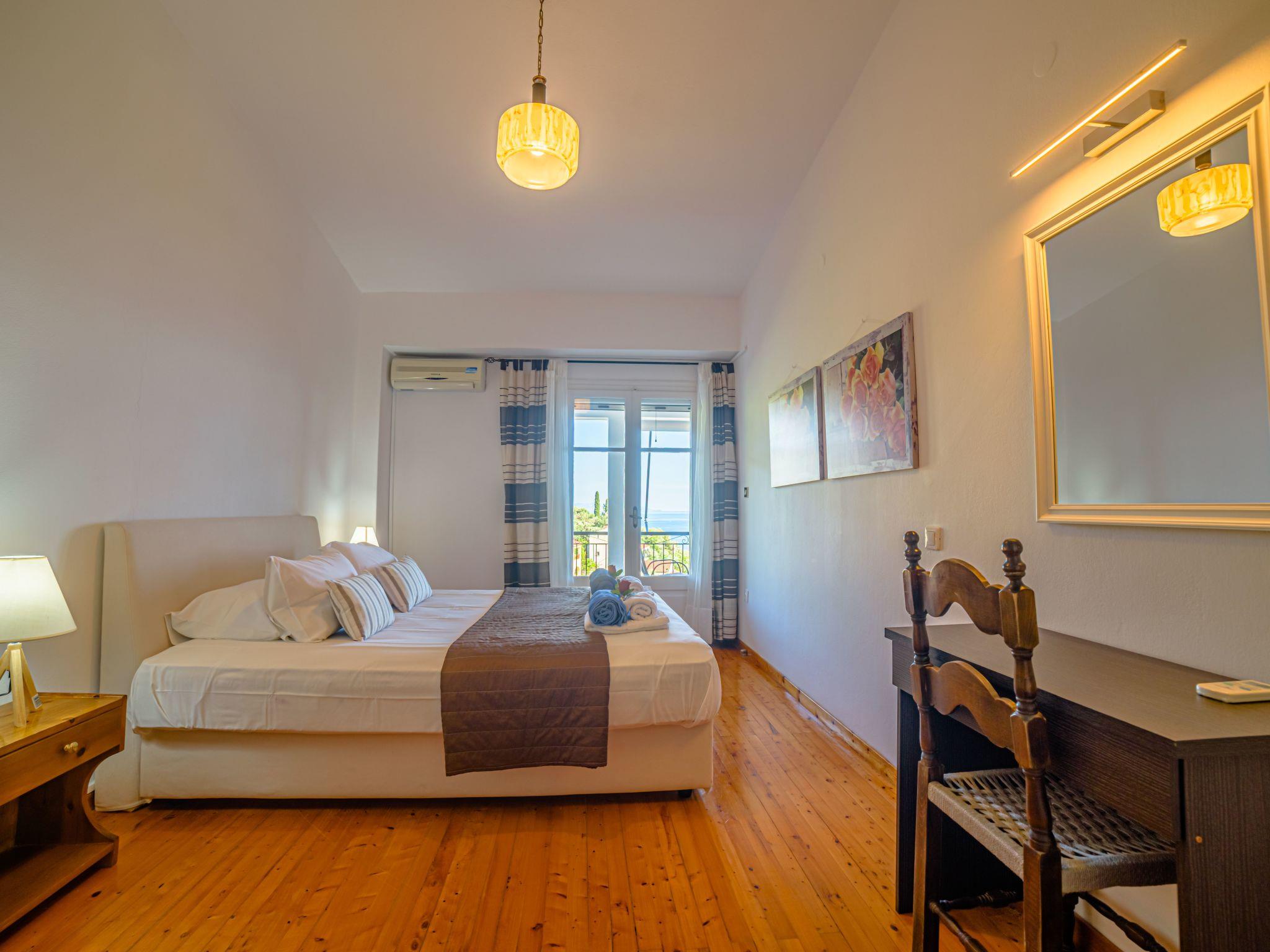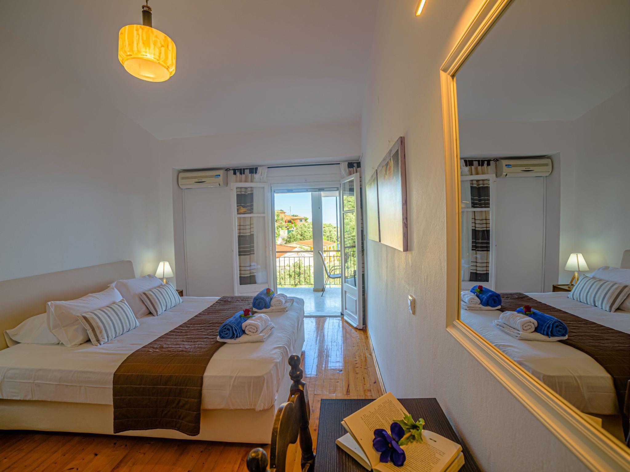 Combining a stunning wide view of the coastiline of Corfu Zeus 1 PRIVATE pool apartment (use only for one apartment) has 2 bedrooms, have been lovingly decorated - the master bedroom comes complete with double bed and en suite bathroom, whilst the remaining twin bedroom have use of its own bathroom with. Both bathrooms offer a hairdryer. Fully equiped kitchen,living room,2 bathrooms in perfect spot just 800 meters above Skinos Beach of Nissaki.