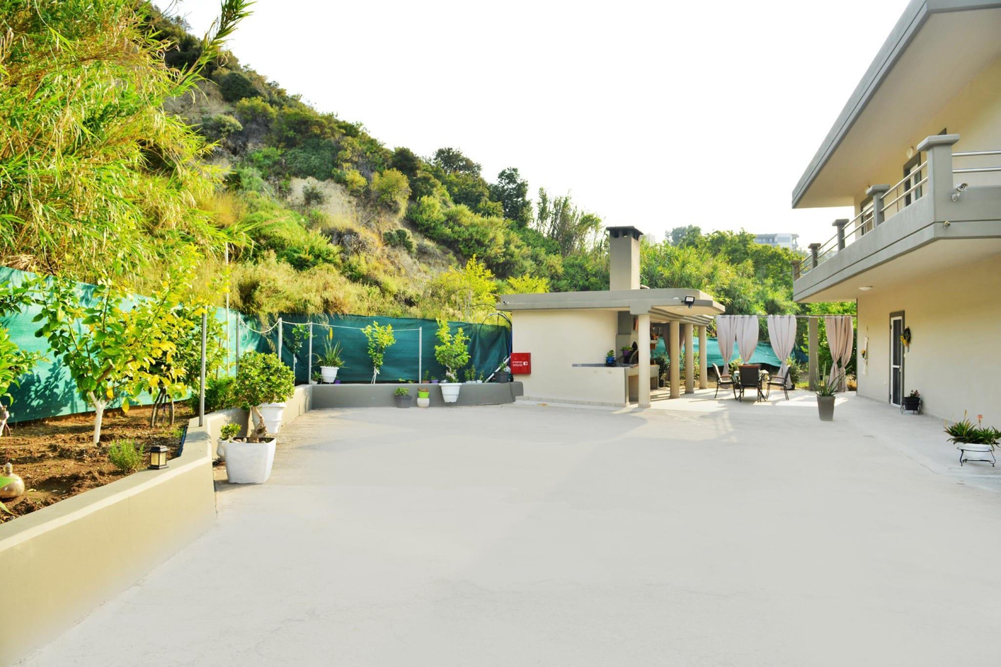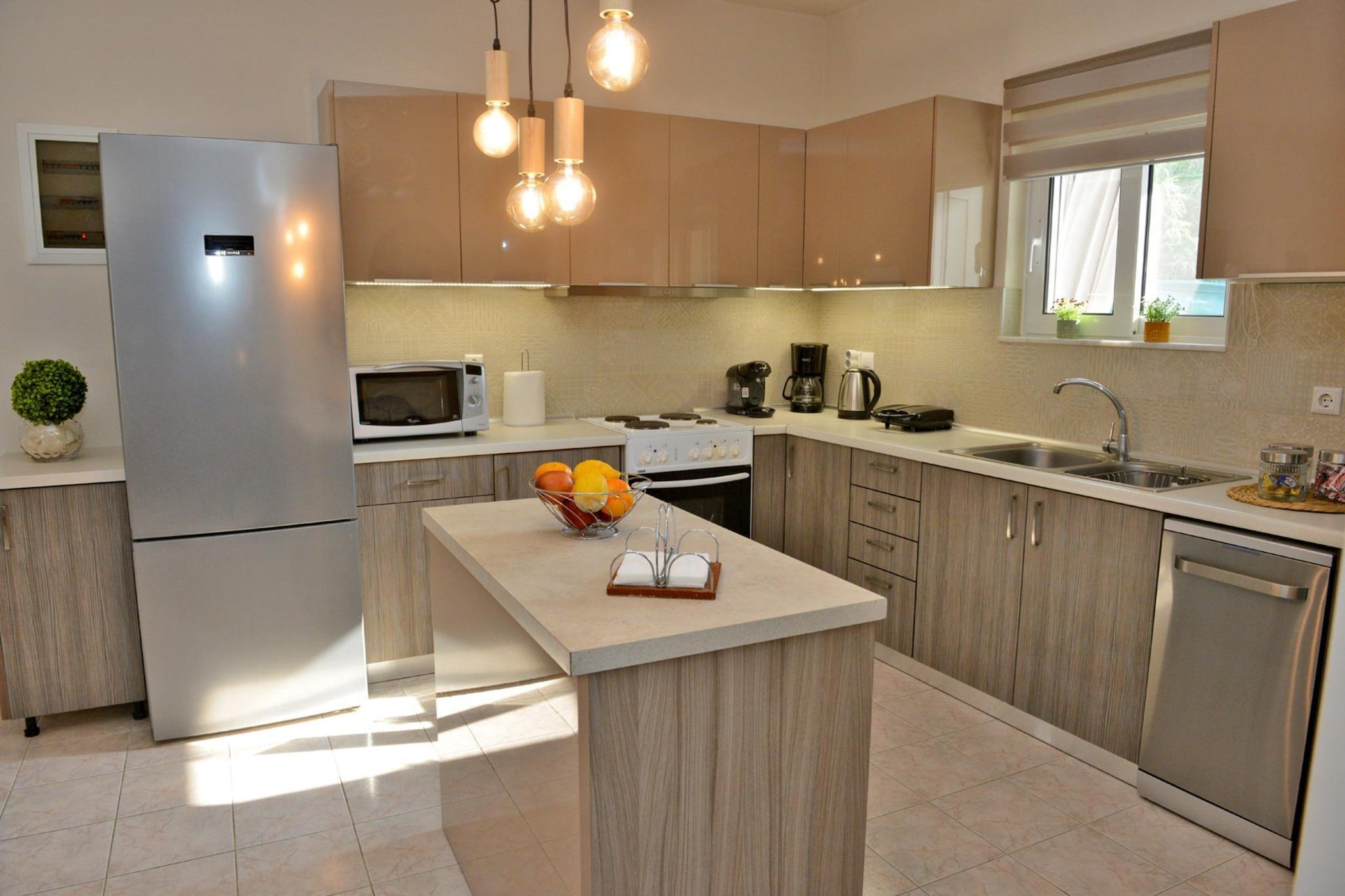 Denne dejlige villa ligger gemt væk i den fredelige landsby Kalythies og tilbyder et lille stykke autentisk ø-liv omgivet af bjerge, oliventræer og naturens bløde summen. Fra det øjeblik du ankommer, kan du mærke roen sænke sig - duften af middelhavsurter i luften, glimtet af den private pool under den græske sol og løftet om dovne dage forude. Villaen er varm og indbydende med to hyggelige soveværelser med aircondition og en lys opholdsstue, der åbner ud til terrassen. Morgenen begynder med kaffe på terrassen, når det første lys rører bakkerne, efterfulgt af en forfriskende svømmetur eller en lang, afslappet morgenmad ved udendørsbordet. Køkkenet har alt, hvad du behøver for at tilberede et græsk-inspireret måltid, og om aftenen bliver grillen det perfekte sted til grillede middage under stjernerne. Når du er klar til at udforske, er nogle af Rhodos' smukkeste strande - Faliraki, Kathara og Ladiko - kun en kort køretur væk. Tilbring dagen med at svømme i krystalklart vand eller slentre gennem Rhodos bys gamle gader, og besøg vartegn som Apollontemplet og Akropolis. Og når du vender tilbage til din villa, byder det rolige landskab dig velkommen tilbage og indhyller dig i fred igen. Dette er et sted skabt til langsom livsstil – hvor dagene strækker sig lange og behagelige, og hver solnedgang føles som dit eget private show.