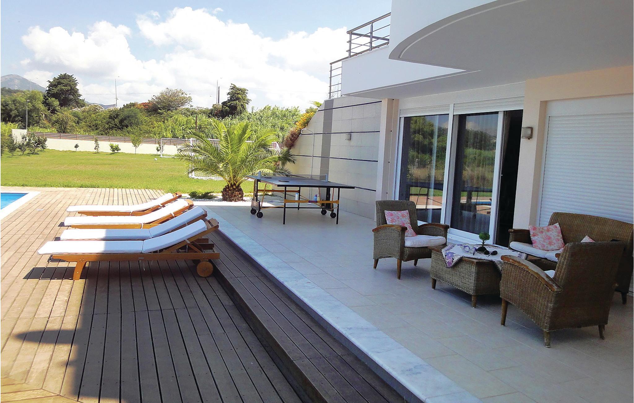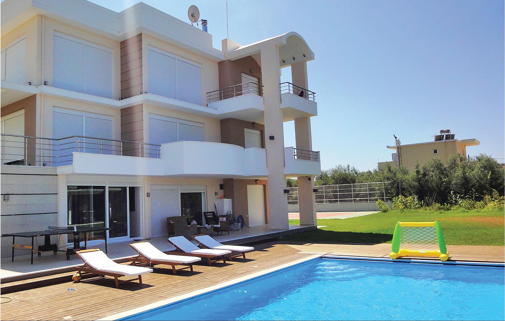 I dette indbydende hus er der god plads til femten personer, det er ideelt til en stor familieferie eller til en ferie sammen med de bedste venner. Husets rummelige 400 m² gør det muligt at trække sig tilbage til privatlivets fred, eller til at være sammen, alt efter ønske. Den store swimmingpool, tennisbanen og aktivitetsrummet gør det muligt med fælles sjov. Kun få hundrede meter fra huset, strækker sig de skønne strande, hvor I kan holde lange afslappede badedage med solbad og svømmeture i det krystalklare hav. Til de historiske seværdigheder hører ruinerne fra den romerske by Nikopolis. Spadser gennem den fortryllende bade- og havneby Previza og smag på egnens specialiteter på de små hyggelige taverne der ligger ved vandet.