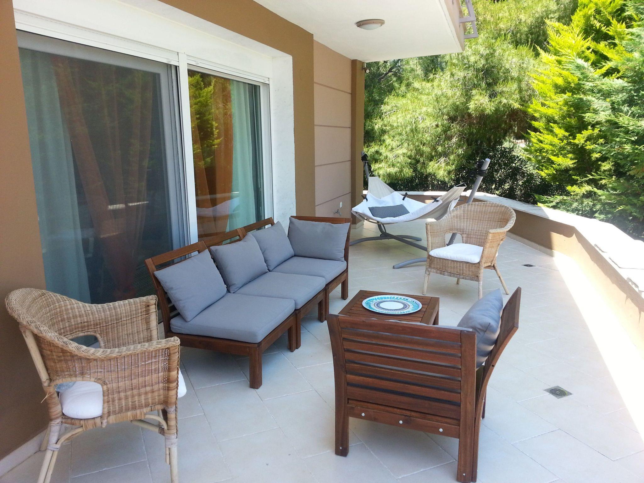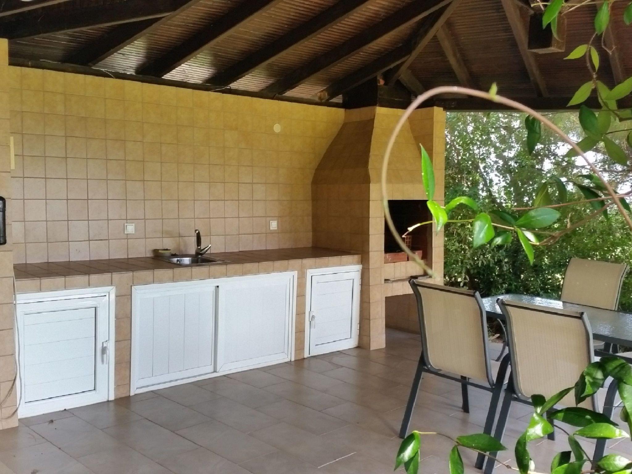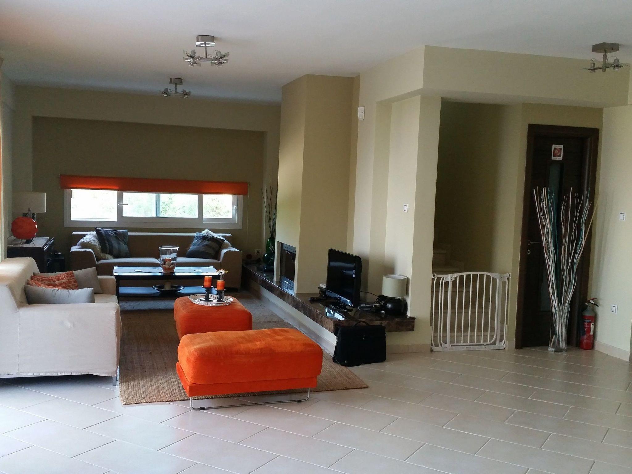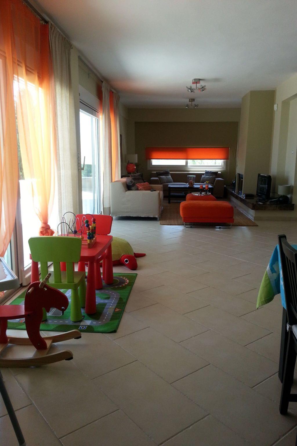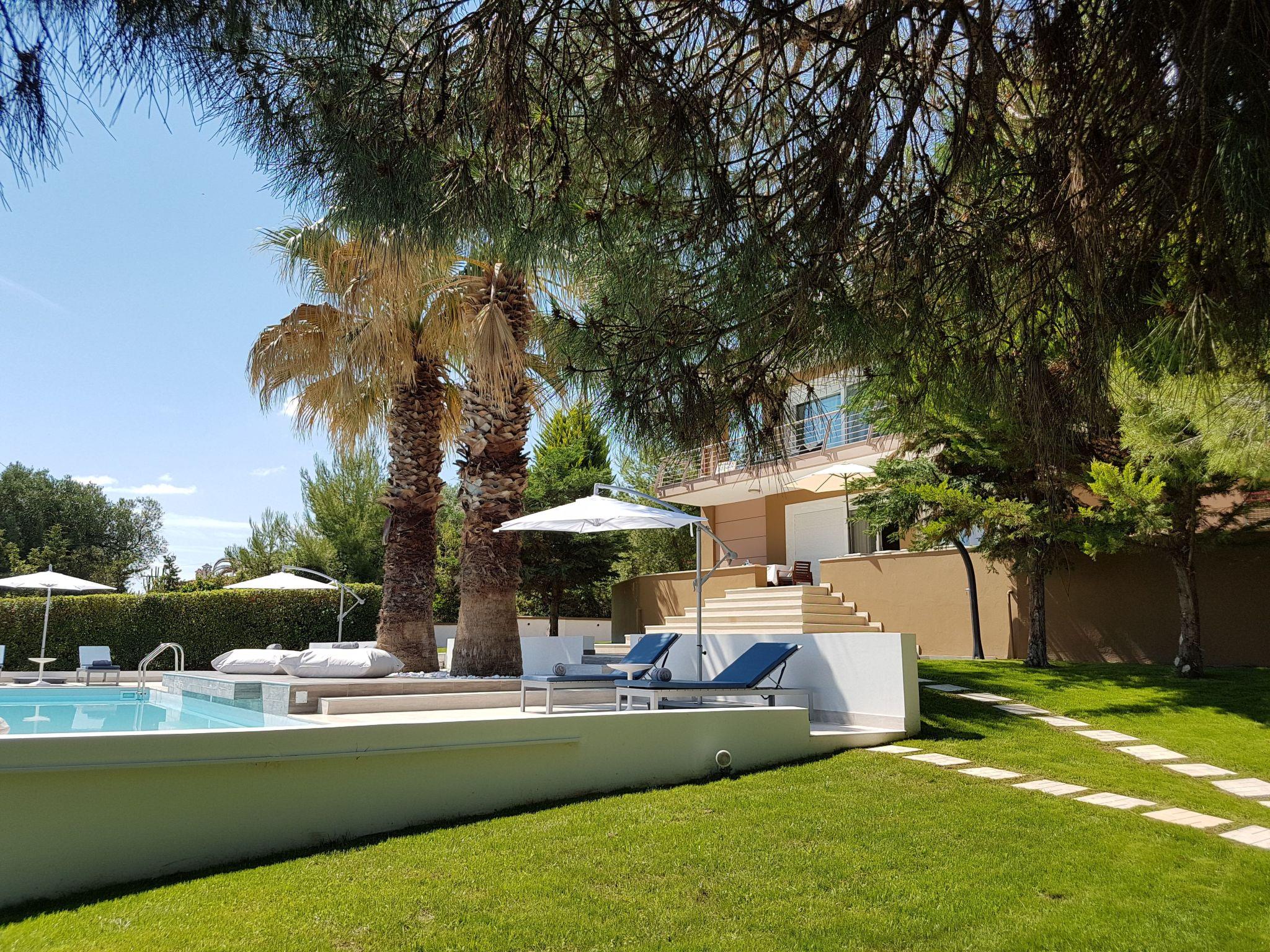 The exterior of the house is amazing. There are 4000 sqm with well maintained lawns, palm trees, pine trees, olive trees and a fully equipped large barbeque kiosk. The villa offers a private pool of 50 square meters.