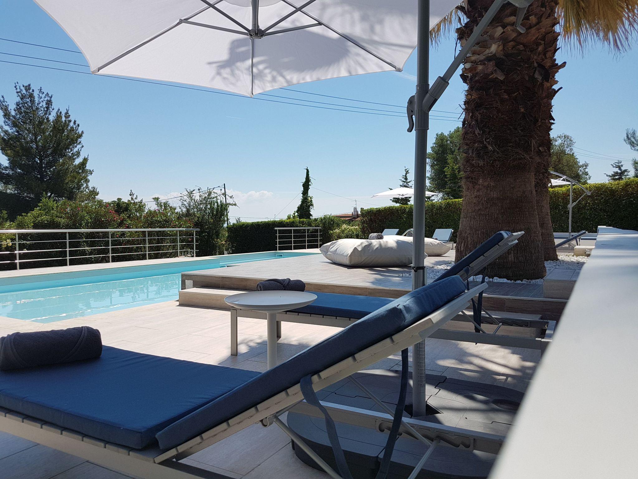 This exclusive holiday villa is situated in Kriopigi, one of the most beautiful places in Chalkidiki, just 80 kilometers from Thessaloniki. The villa is 300 meters from a beautiful sandy beach and provides stunning views across the sea.