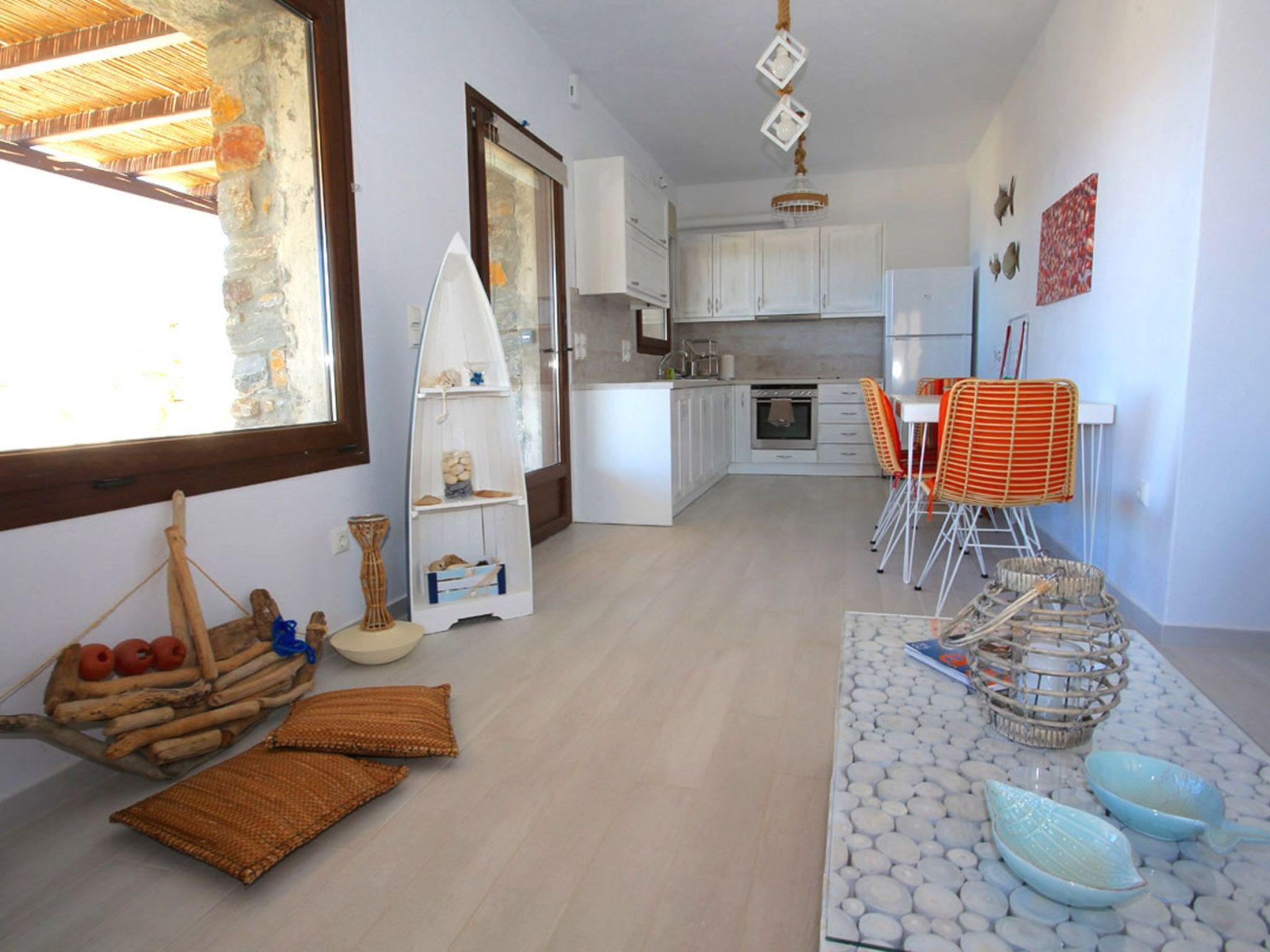 The villa boasts an impressive interior, spanning 300 square meters and showcasing a traditional "old-style" uncut boulder technique that harmoniously blends with its surroundings. Inside, visitors will find the villa divided into three separate autonomous apartments: INFINITY BEACH HOUSE, PI BEACH HOUSE, and IOTA GUEST SUITE. Each space is designer-decorated, paying meticulous attention to aesthetic detail, and equipped with a total of 5 bedrooms and 5 bathrooms, 3 of which are en-suite, accommodating anywhere from 2 to 12 guests in unparalleled comfort and style.
