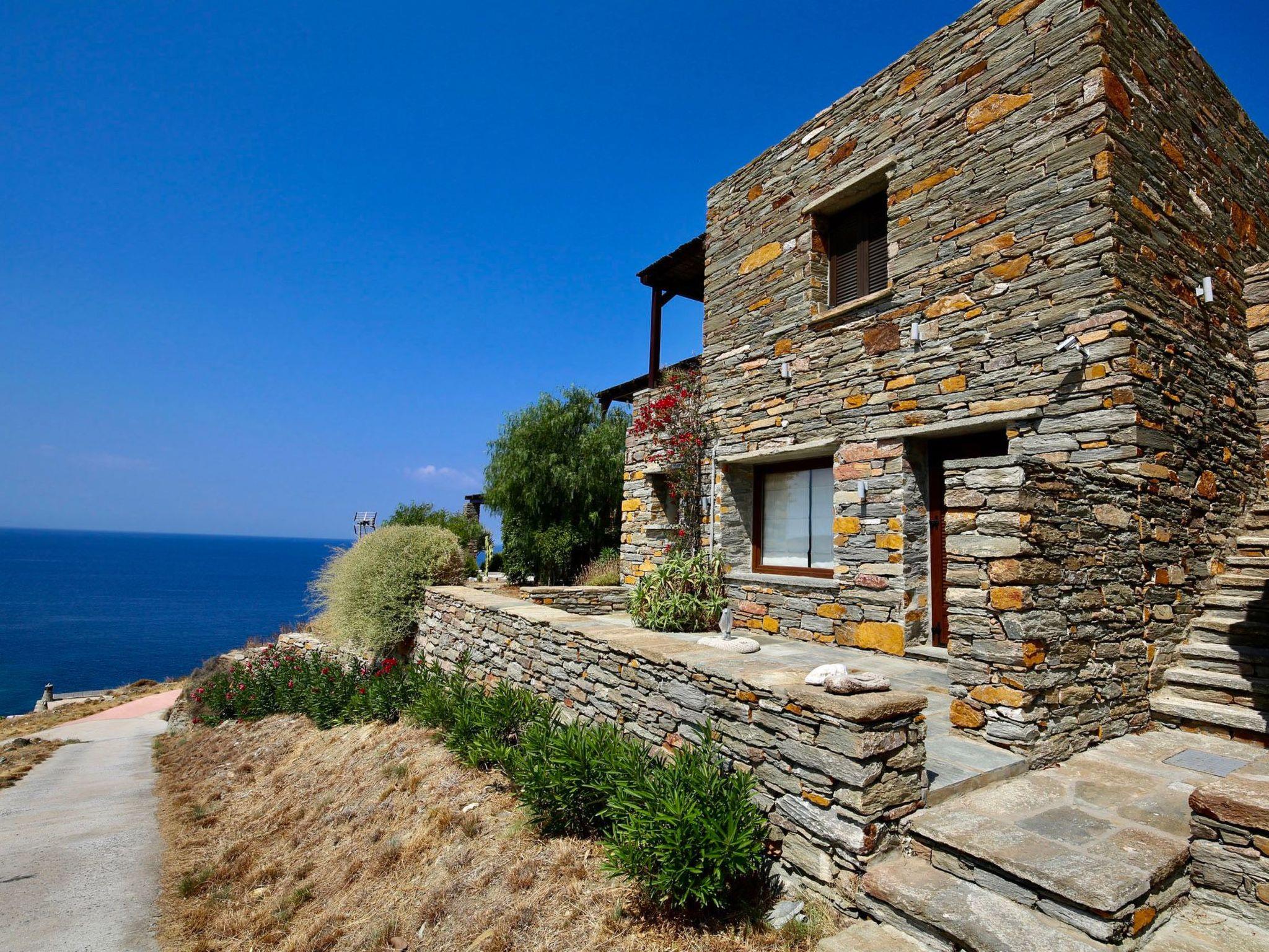 Externally, the villa excels with its lush, spacious terraces and well-protected position, shielding guests from the Meltemi prevailing summer winds. Facing south-west, the property sits on a serene inlet, boasting a 60-meter beach with blue-green waters that remain untouched and inaccessible to the public. This exclusive setting provides guests with a rare opportunity to enjoy their own slice of paradise, directly connecting with the serenity and beauty of nature.