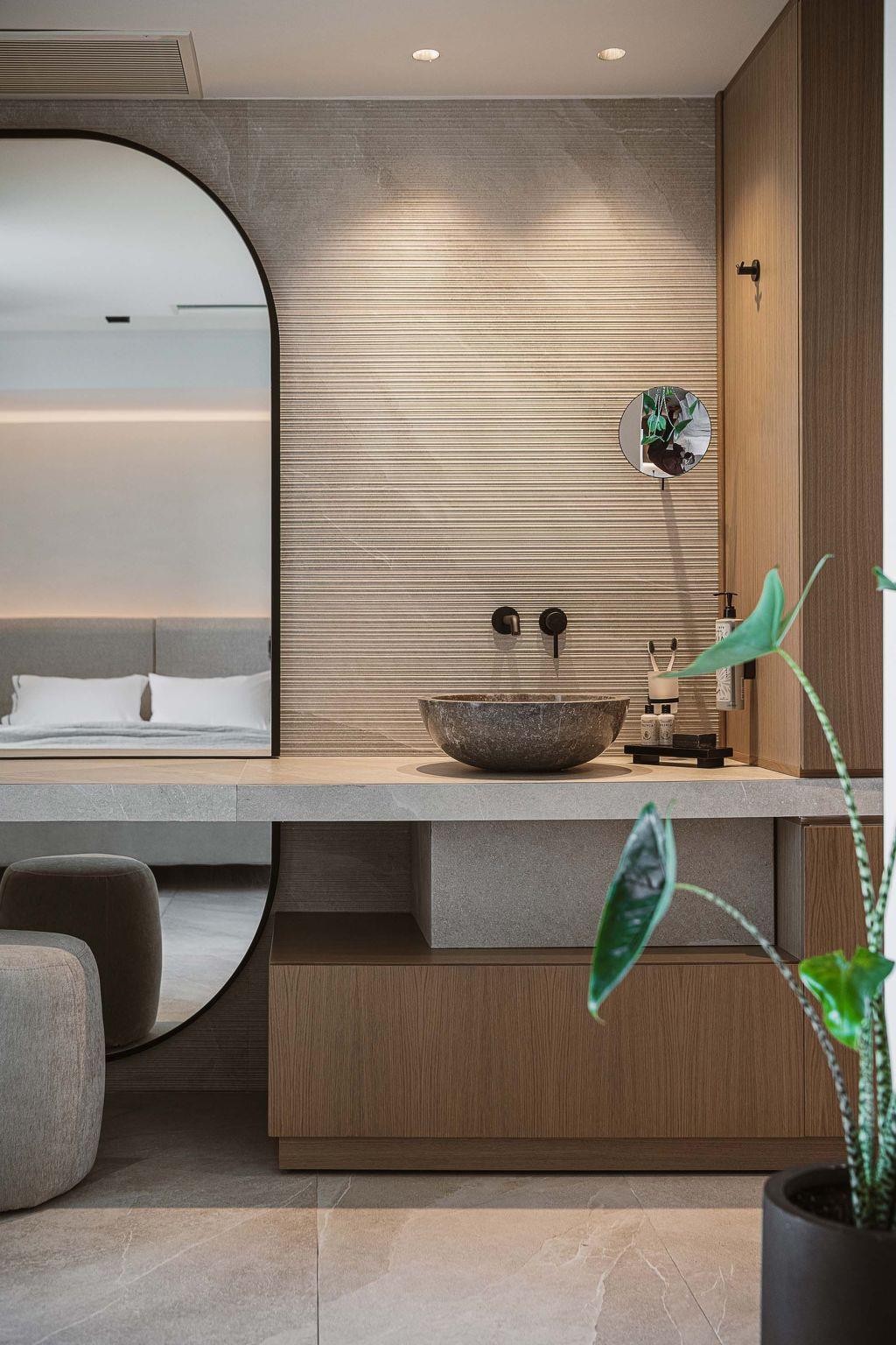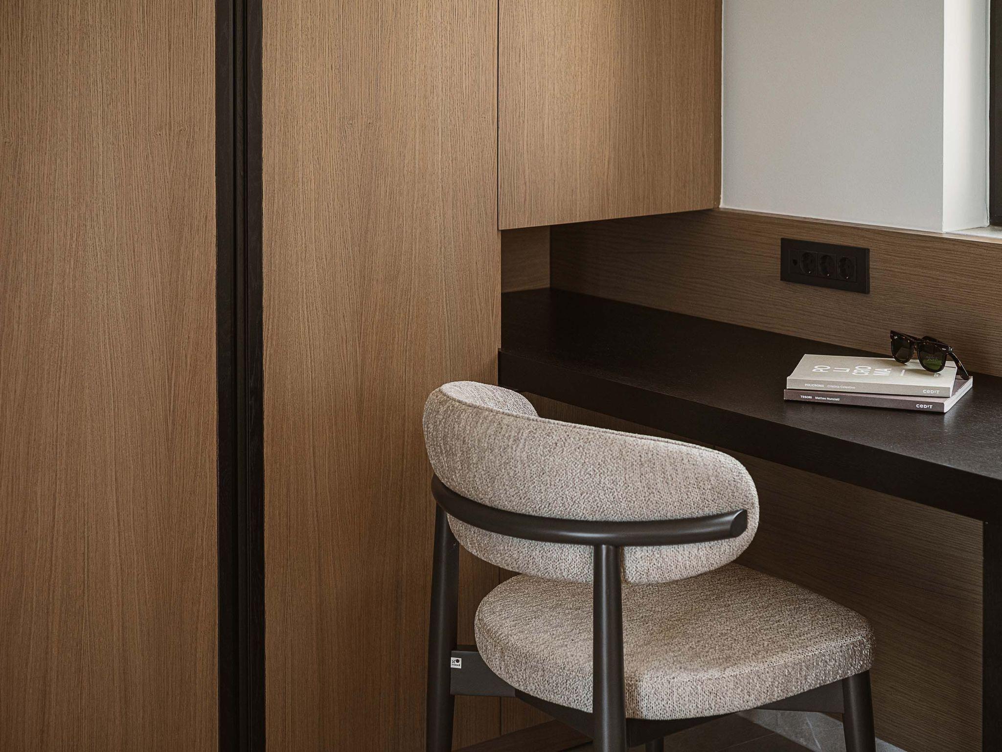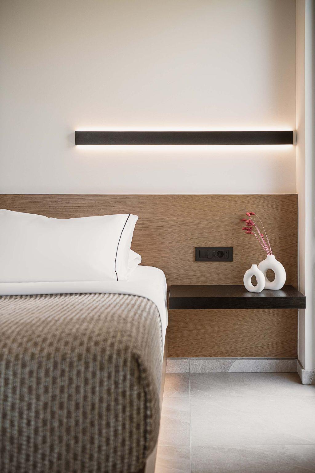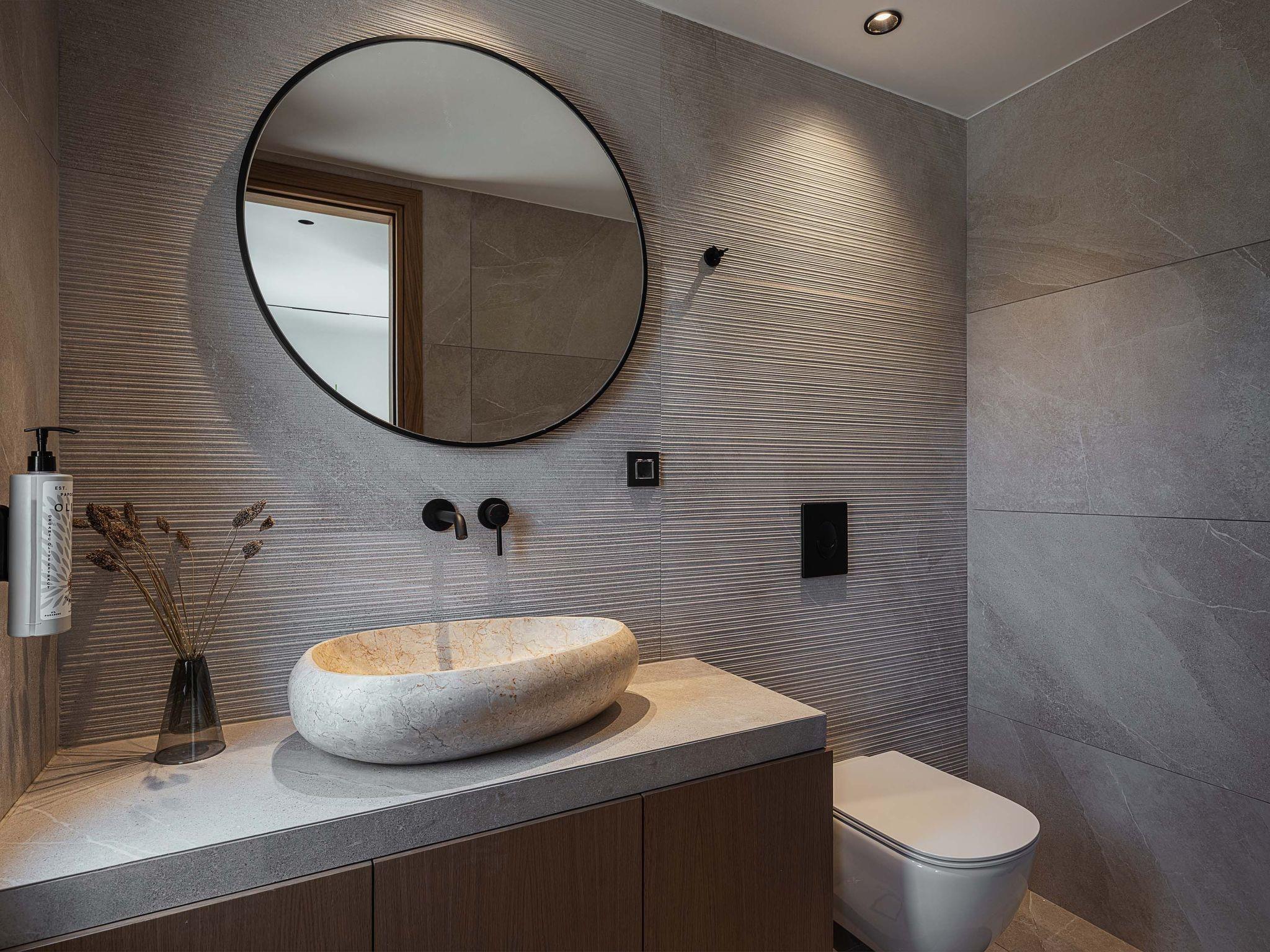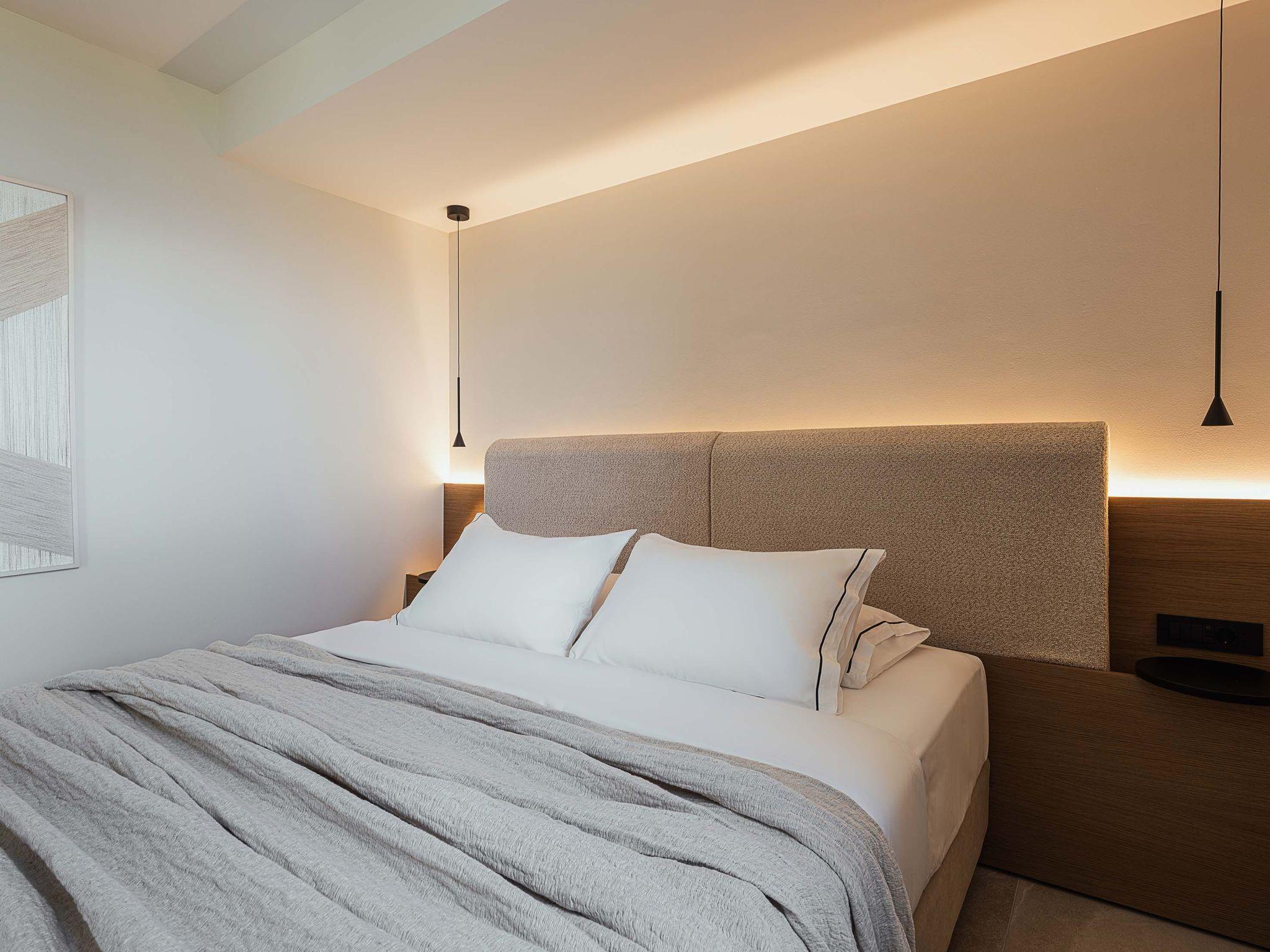 Luxury and modern design complete the scenery of contemporary architecture and high-quality products. Entering the villa on the ground floor you will find a spacious open area with a fully equipped contemporary kitchen that has branded appliances and facilities, making holiday cooking a most pleasurable experience. The area is completed with a dining room and a living room with a 55’’ smart Satellite TV and a fireplace. The large windows create the illusion of transparency and provide a seamless transition between the indoor and outdoor areas.