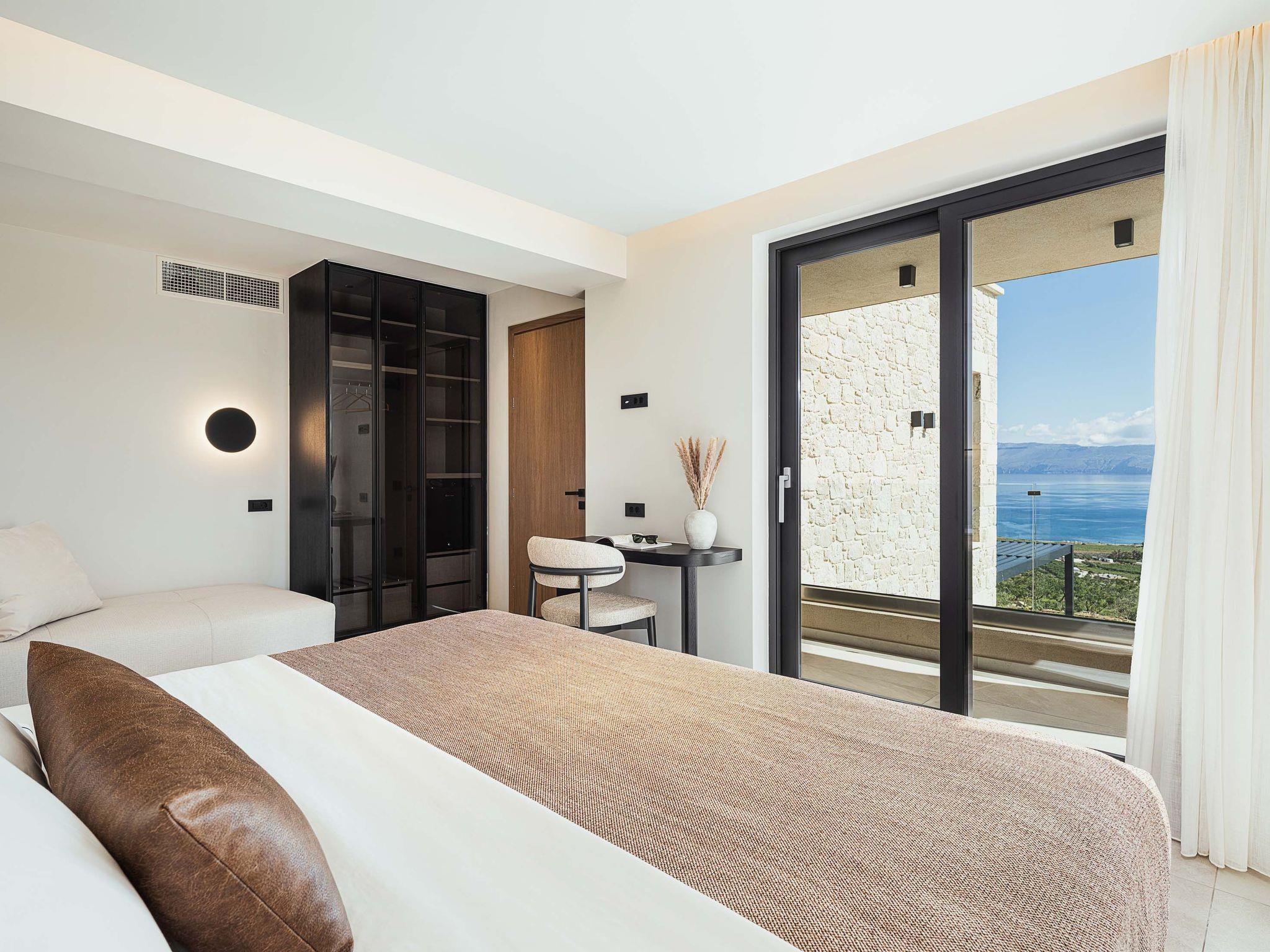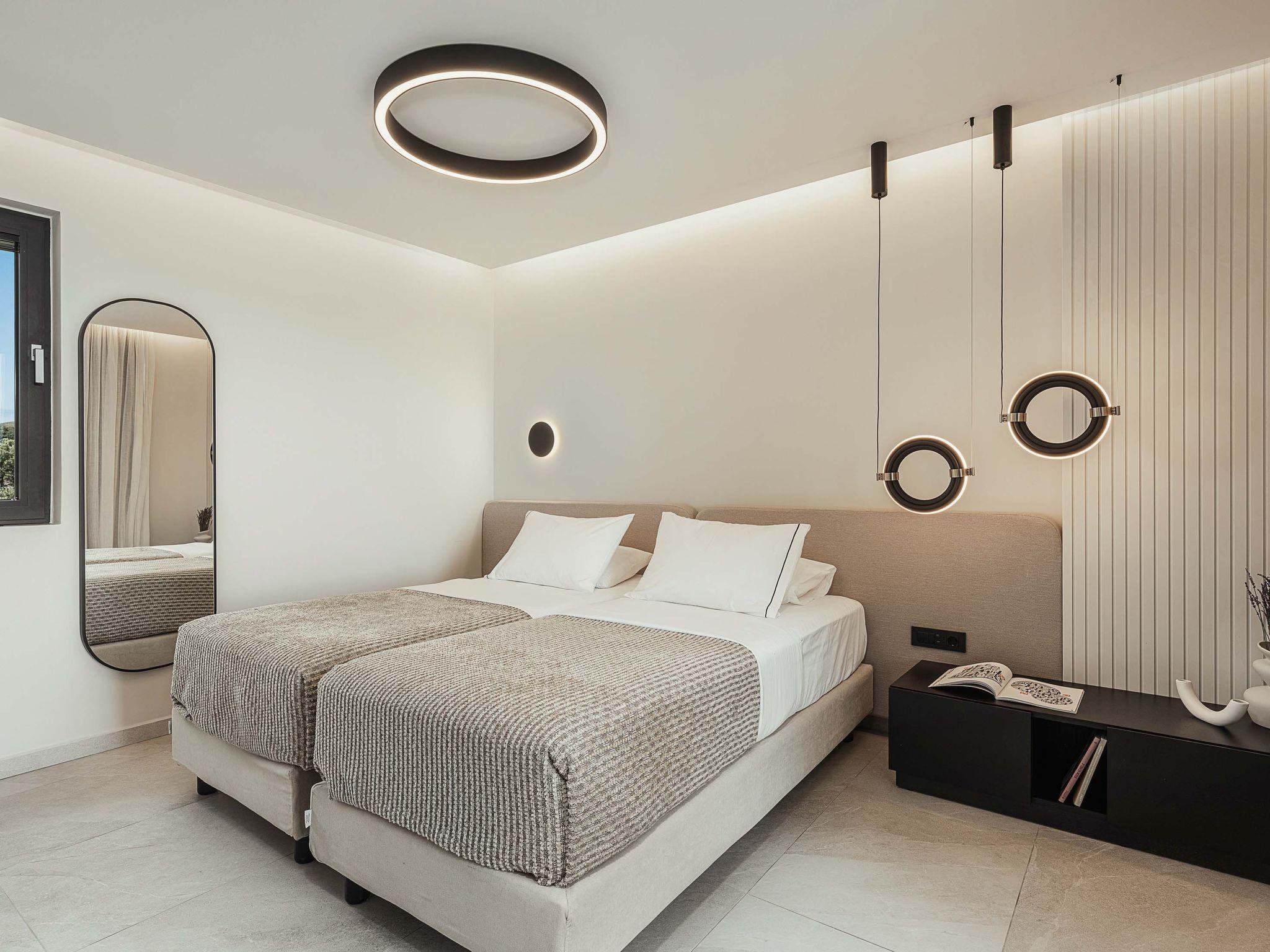 Rastoni Villa is a two-story villa consisting of four bedrooms, three of them on the first floor all with king-size beds and ensuite bathrooms. The fourth bedroom on the ground floor has twin beds (that can be converted into a king size upon request in advance) and an ensuite bathroom. The bedroom & the bathroom on the ground floor are suitable for guests with mobility needs. On the ground floor, there is a shared WC suitable for all the guests.