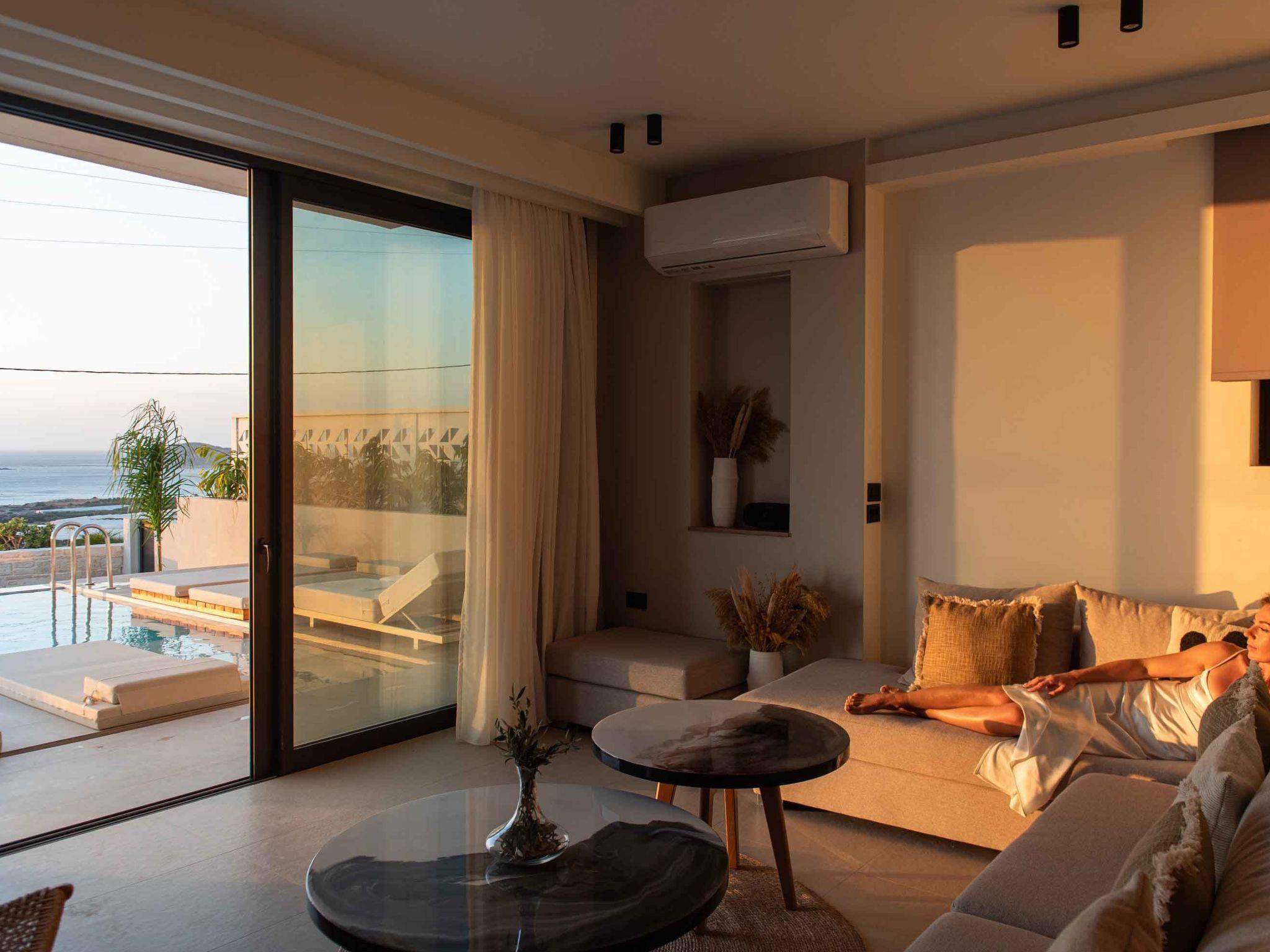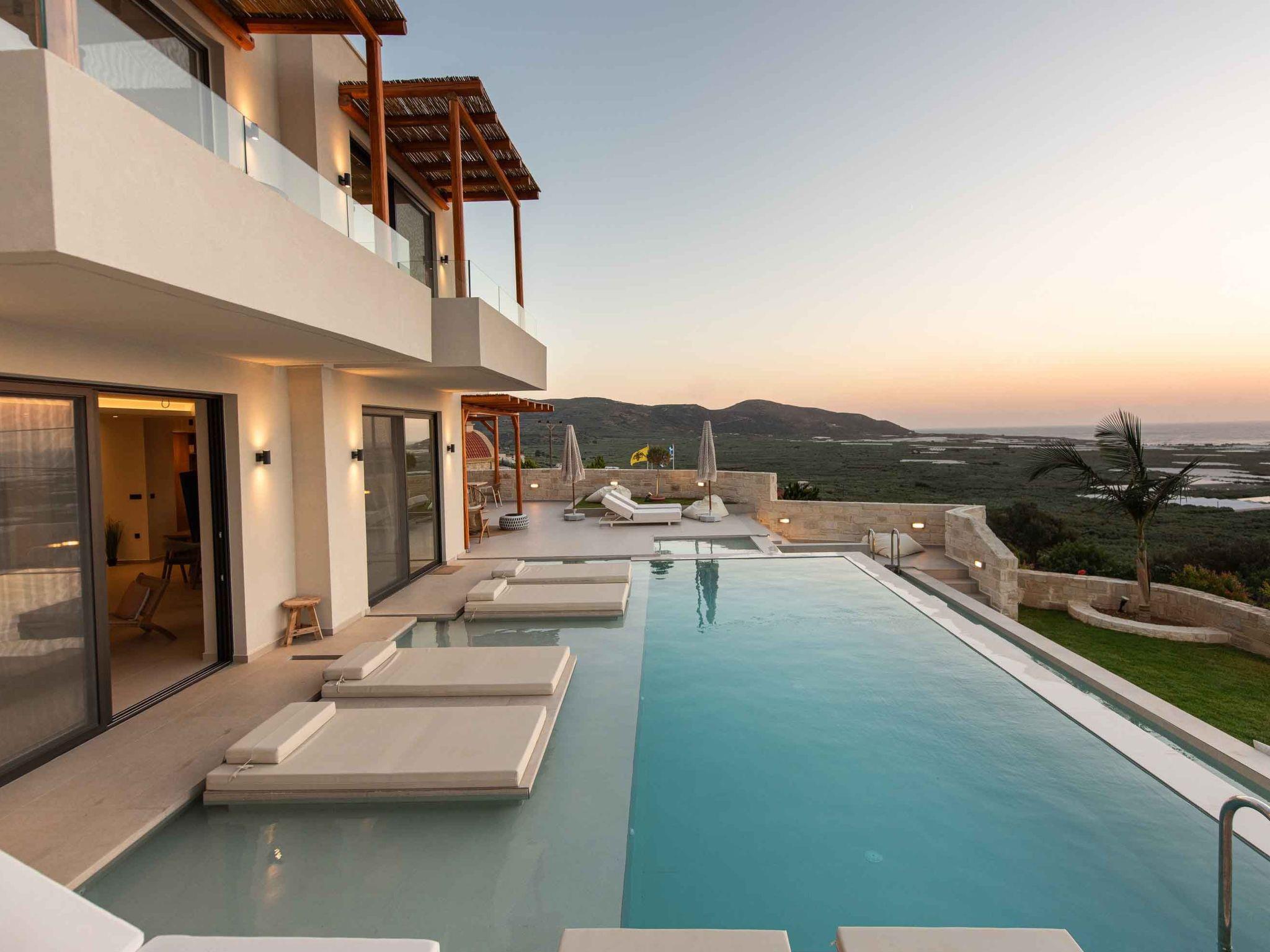 Villa Casa di Franco is part of the Falasarna Luxury Villas Complex, which includes four luxury villas: Villa Galatia ( 5 bedrooms ), Villa Domenica ( 3 bedrooms), Villa Elpida (5 bedrooms) and Villa Casa di Franco (7 bedrooms). The total number of rooms for the whole complex is 20 and the guests can book as villas as they wish based on the number of guests that travel with them.