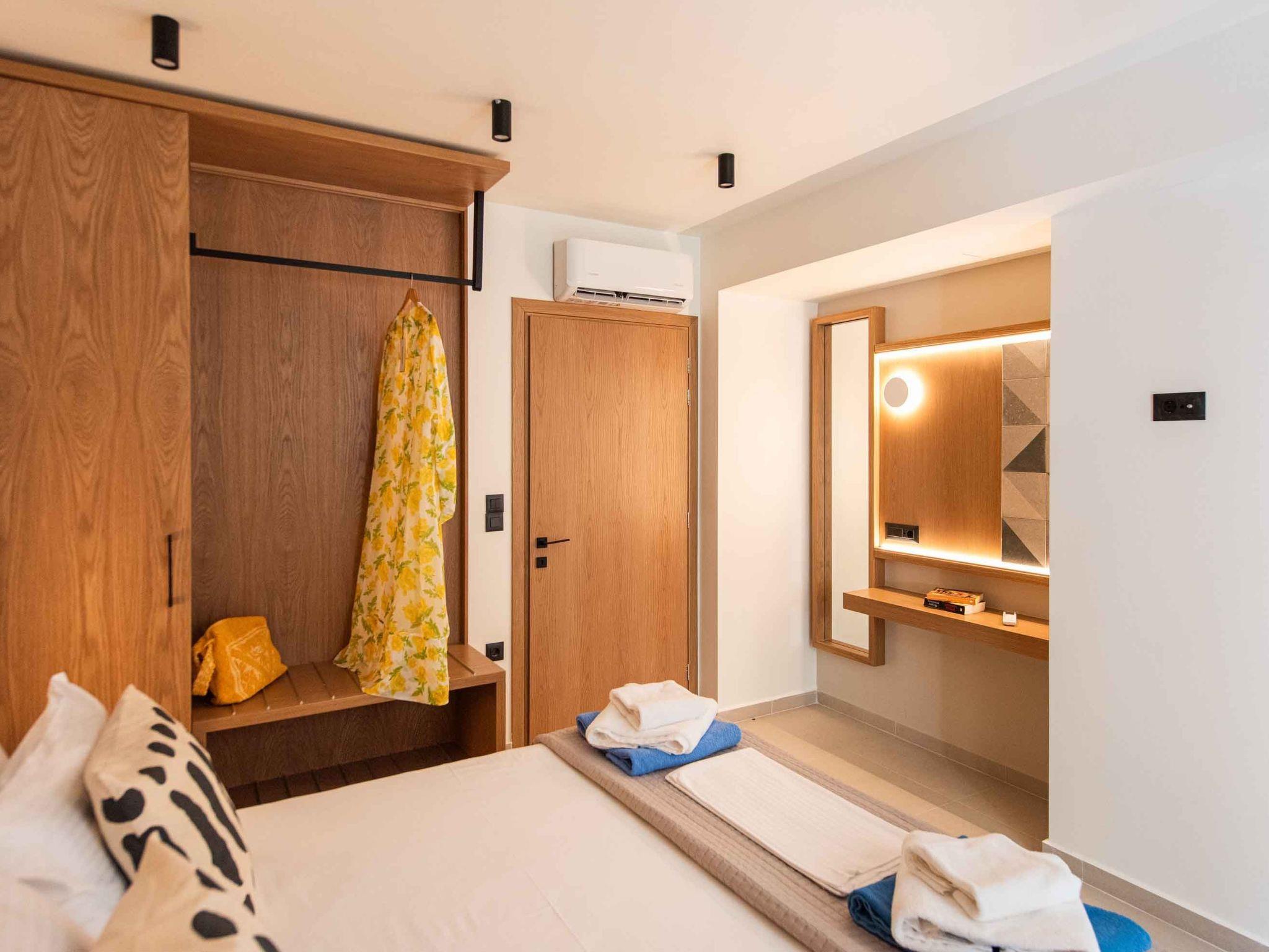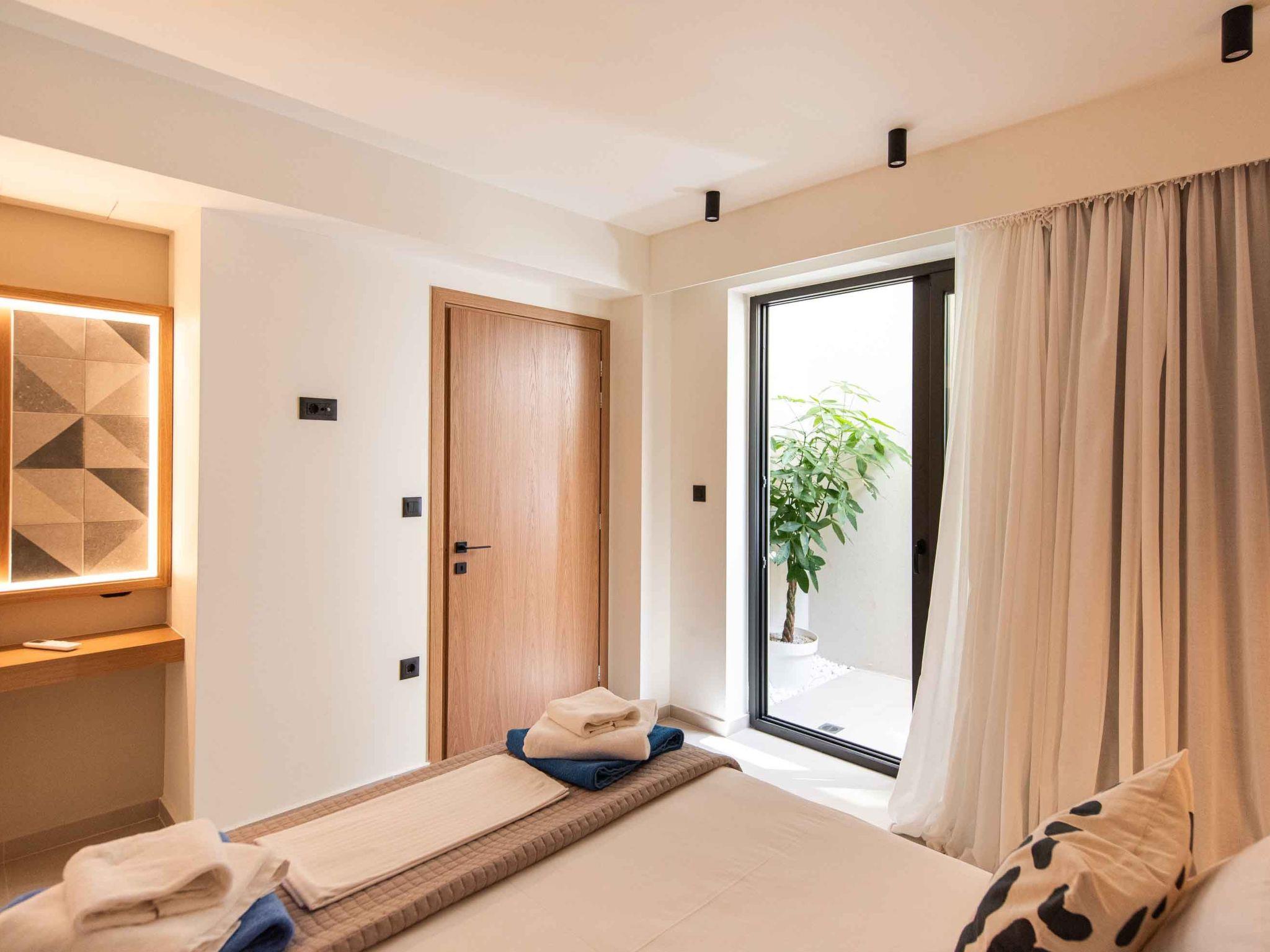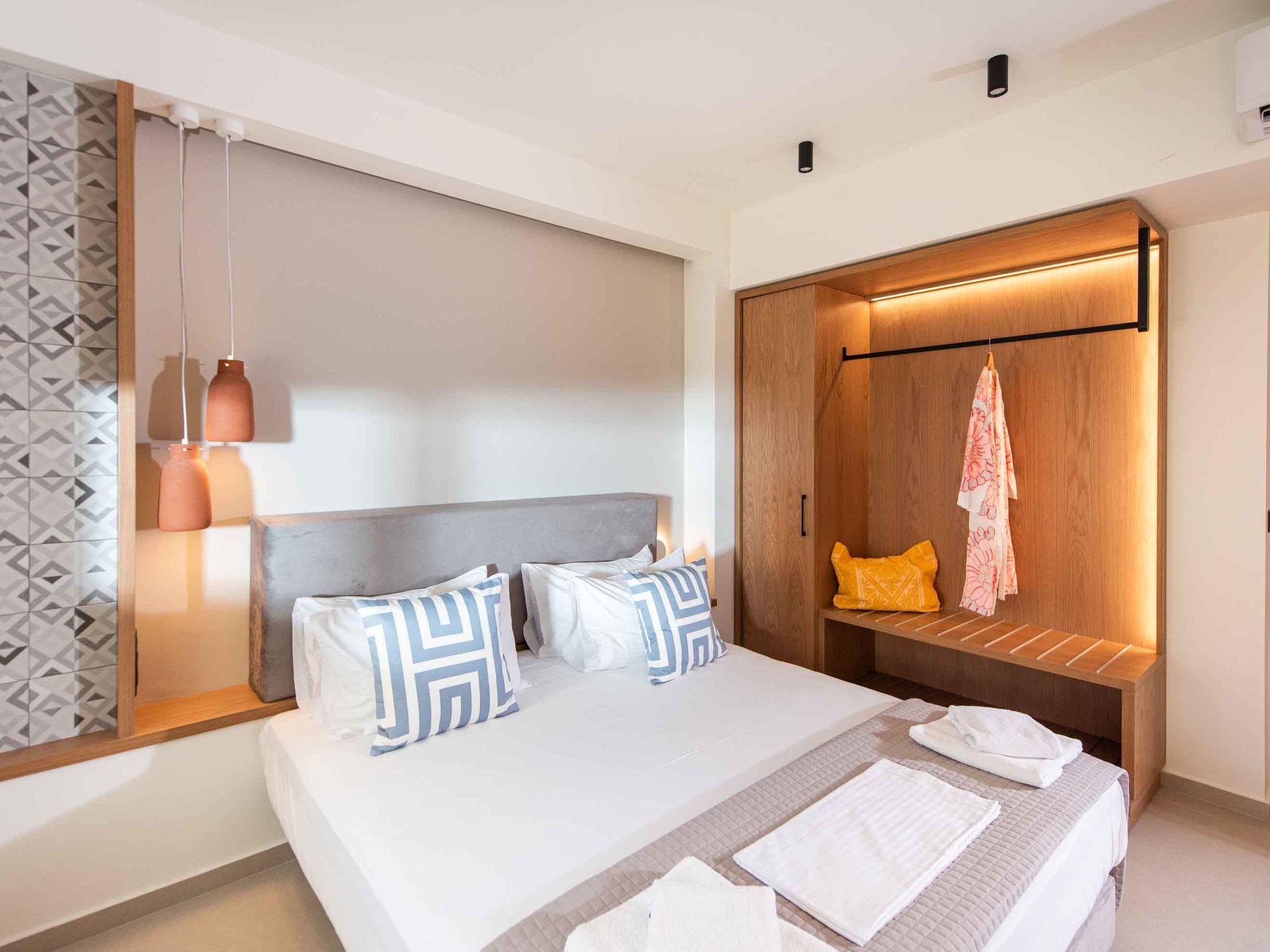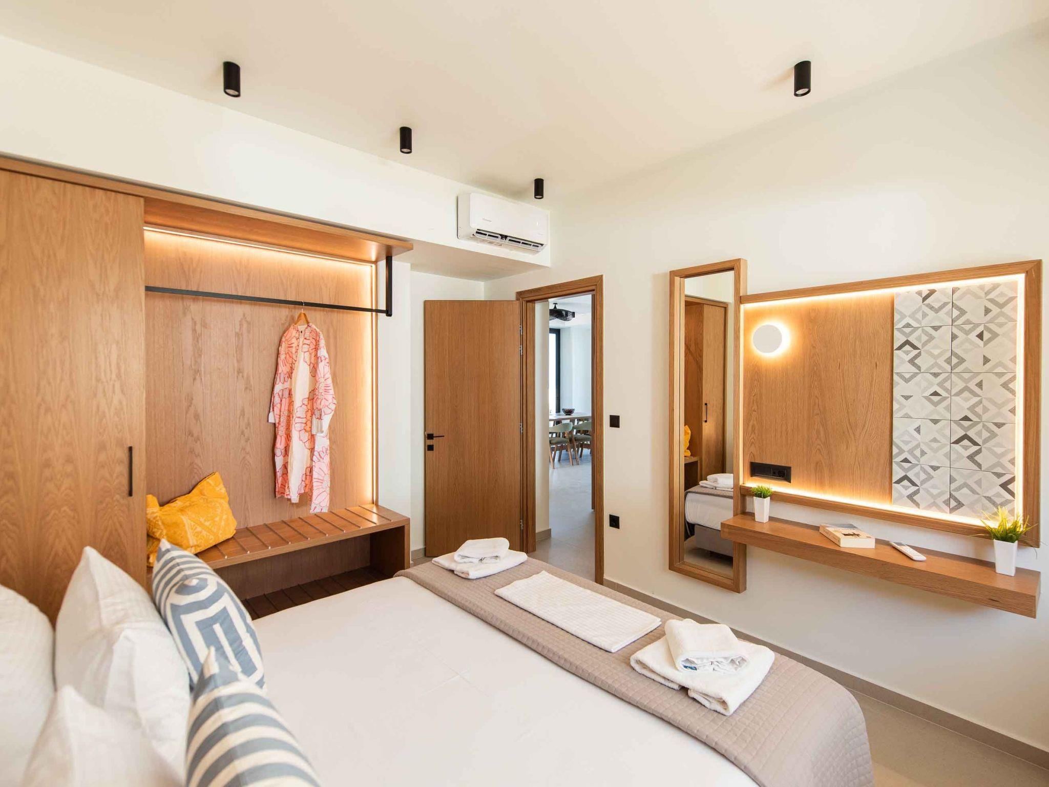 Bedroom 1: King-size bed (1.80×2.00), A/C, access to the outdoor area, Seaview