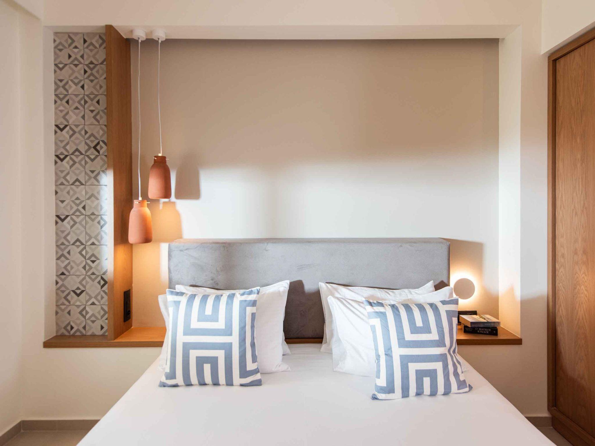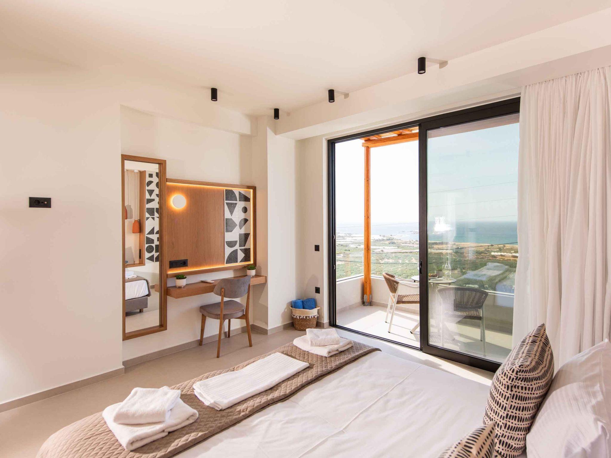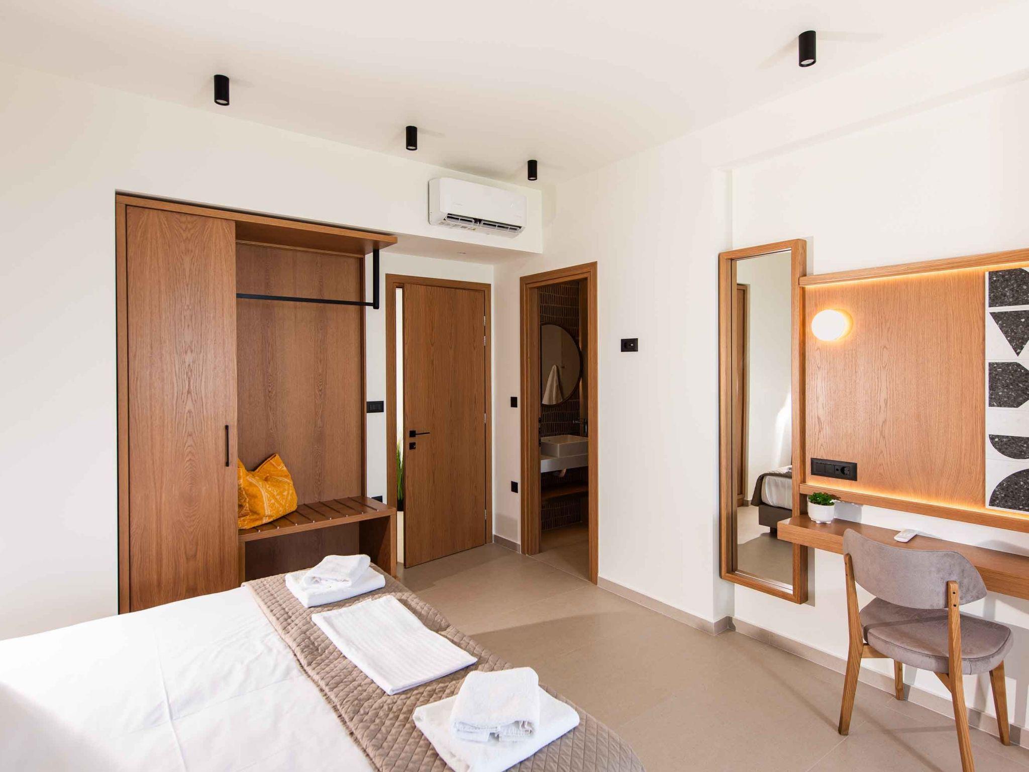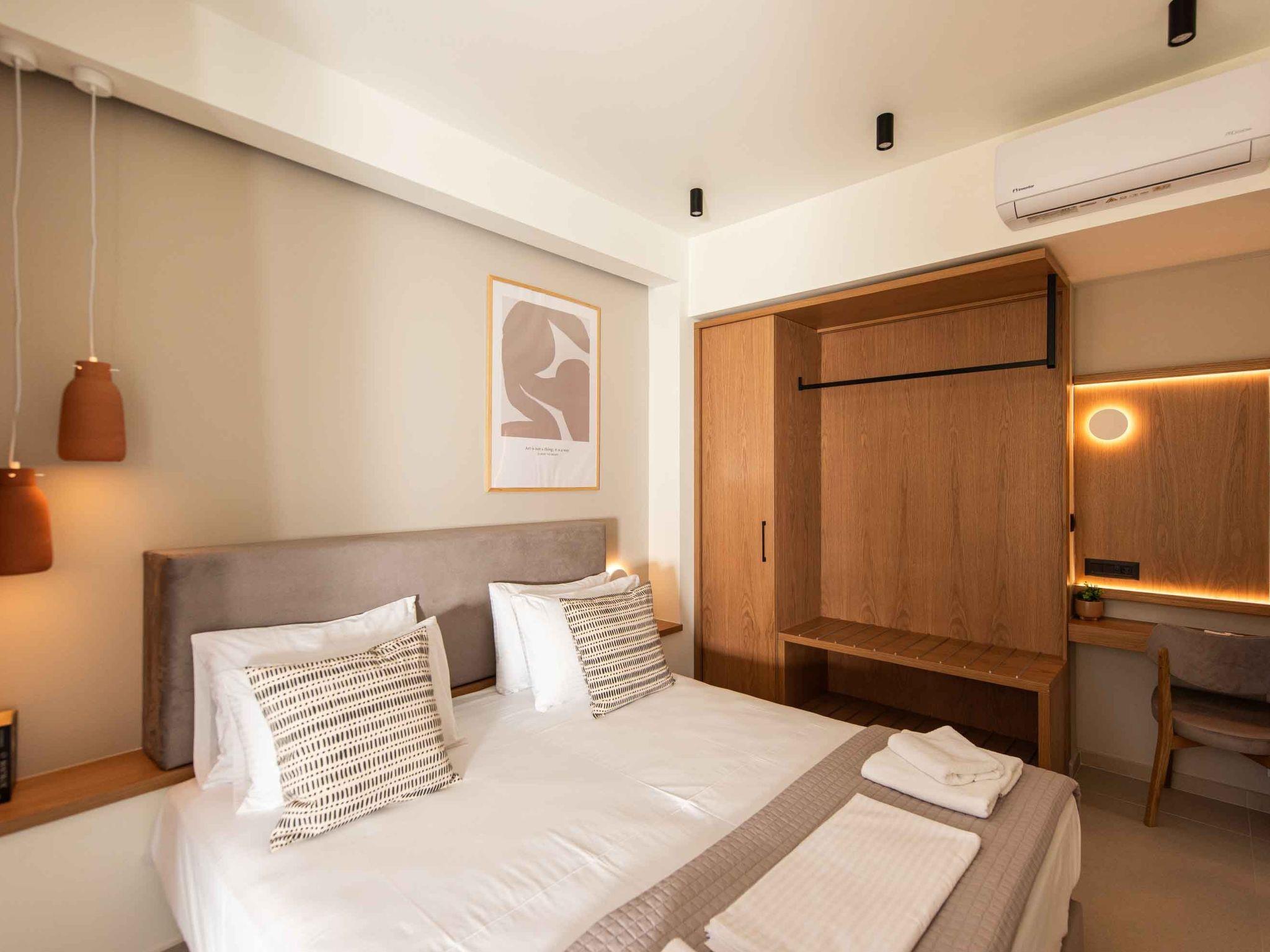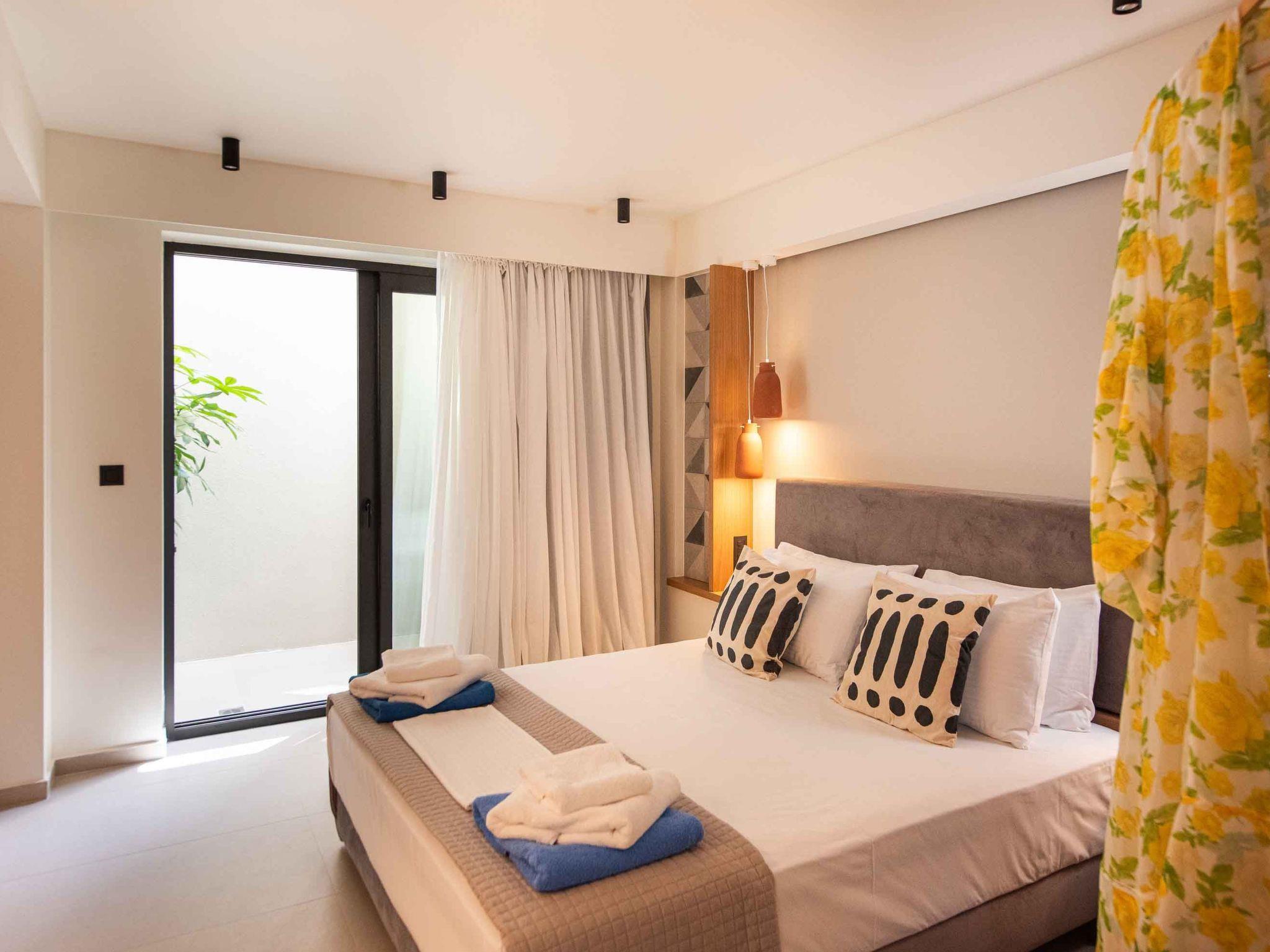 Bedroom 1: King-size bed (1.80×2.00), A/C, access to the outdoor area, Seaview
