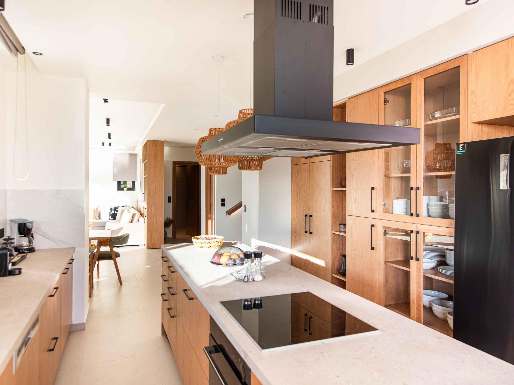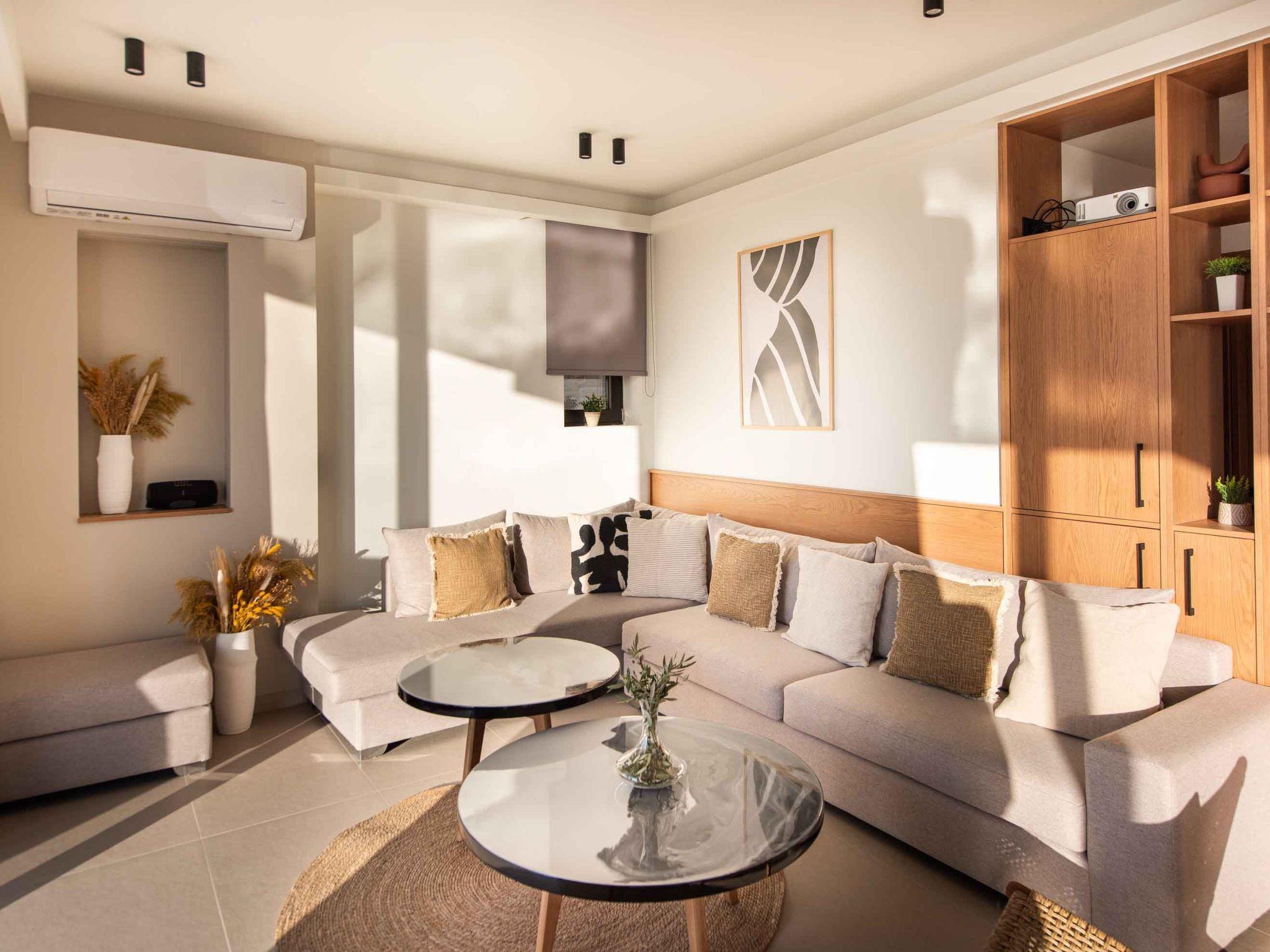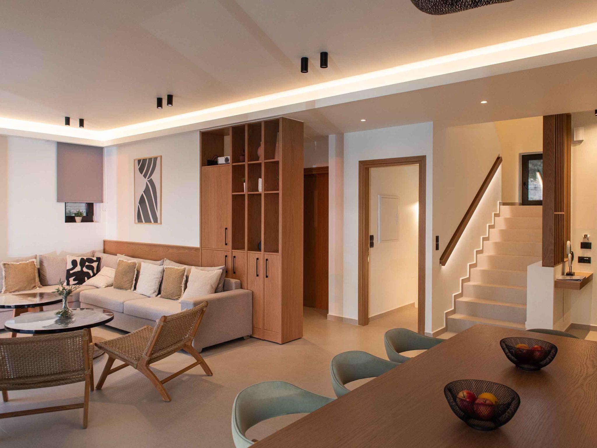 Is there a better place for you during summer vacation rather than lying by the pool and having your tanning session? The private garden lawn is suited for sunset drinks and a swimming pool with a lounge area with sofas make the ideal spot to relax. Pretty close to the pool area exists a dining table for 16 guests for moments of relaxation for you and your family. Fire up the grill and gather together for an alfresco meal under the pergola as the stars come out one by one. sunbeds to enjoy the Cretan sun and the little things that will impress you. Cool and contemporary, this stylish vacation property offers wonderfully appointed outdoor spaces and sleek and stylish interiors.