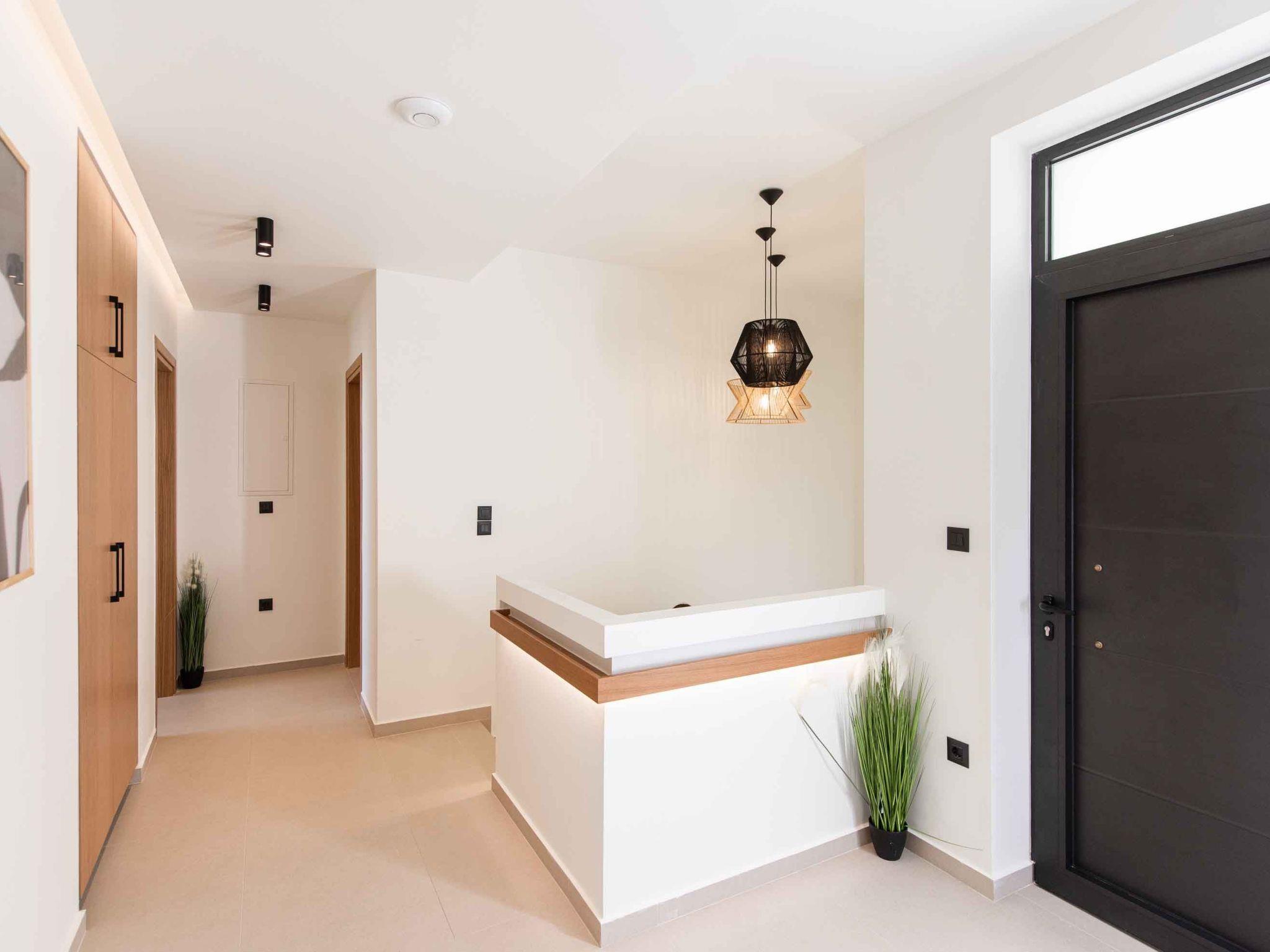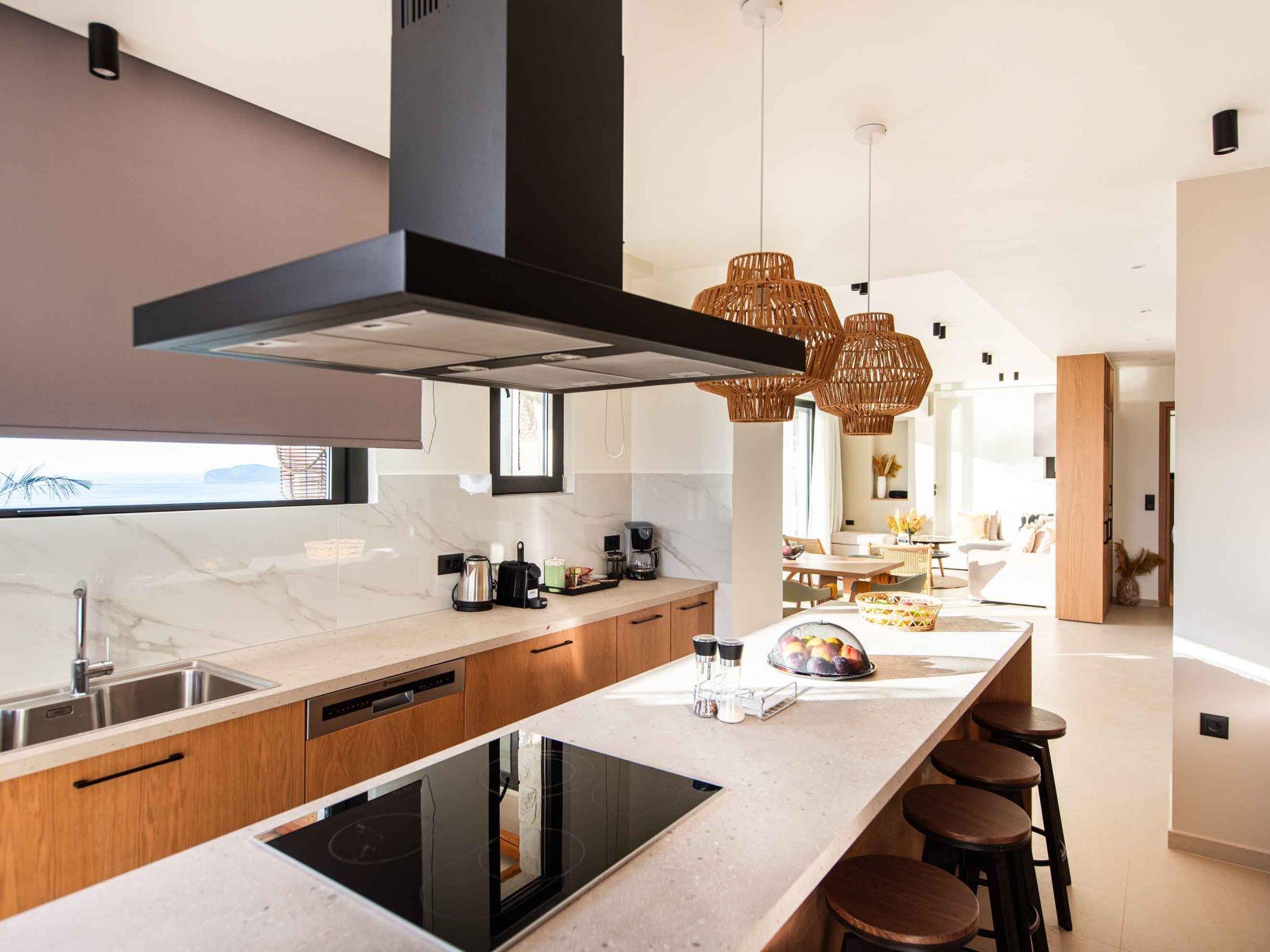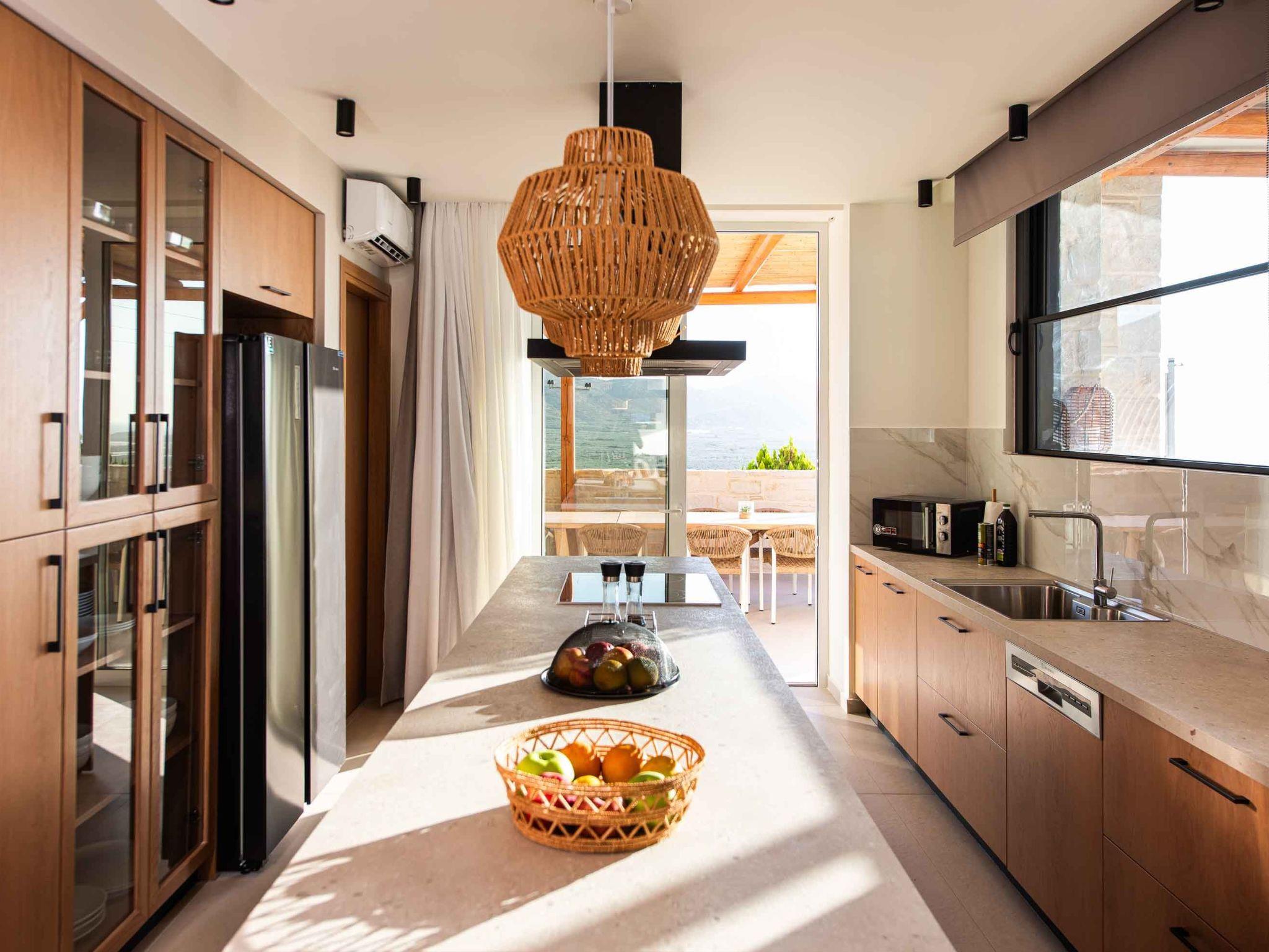 Is there a better place for you during summer vacation rather than lying by the pool and having your tanning session? The private garden lawn is suited for sunset drinks and a swimming pool with a lounge area with sofas make the ideal spot to relax. Pretty close to the pool area exists a dining table for 16 guests for moments of relaxation for you and your family. Fire up the grill and gather together for an alfresco meal under the pergola as the stars come out one by one. sunbeds to enjoy the Cretan sun and the little things that will impress you. Cool and contemporary, this stylish vacation property offers wonderfully appointed outdoor spaces and sleek and stylish interiors.