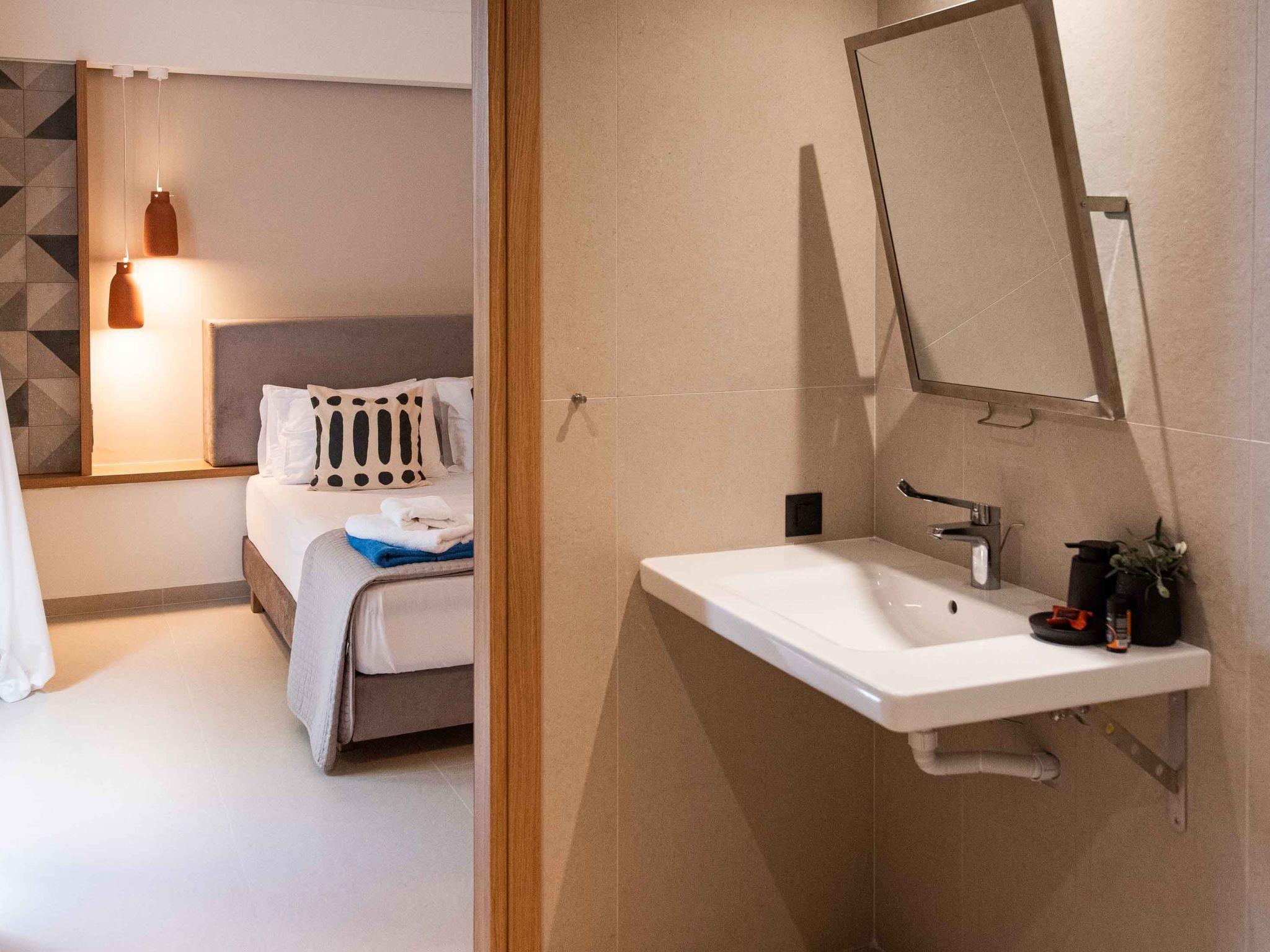 Bedroom 2: Twin size beds (0.90×2.00) that can be converted into a double one, A/C, ensuite bathroom with shower, sea view from the balcony