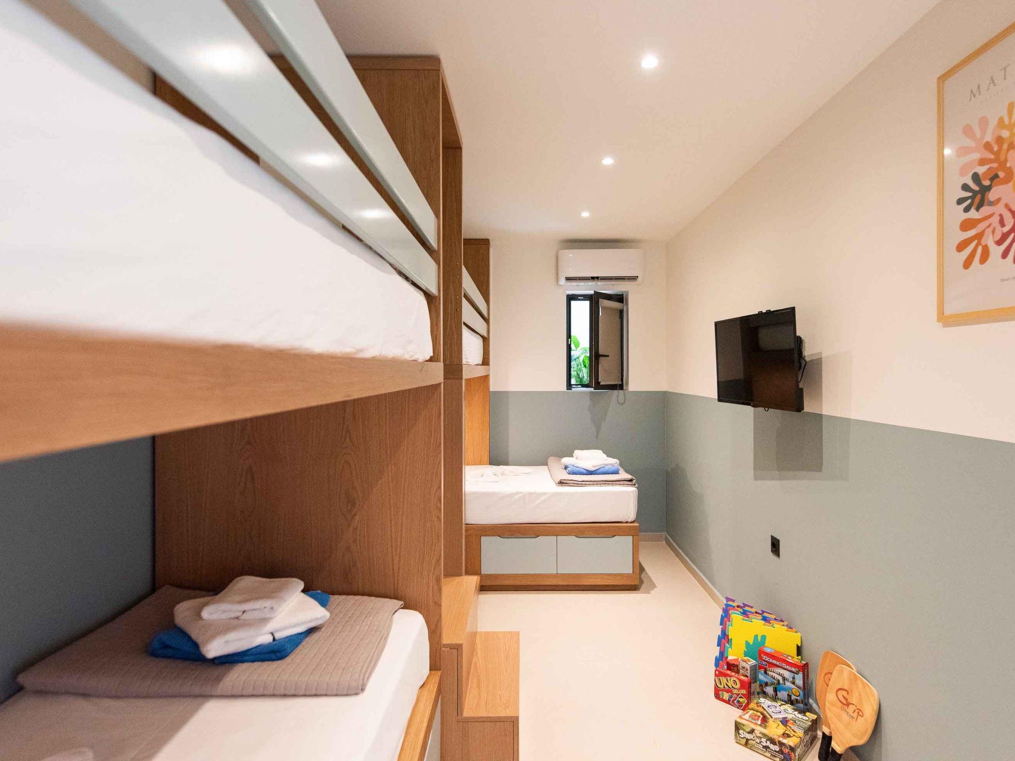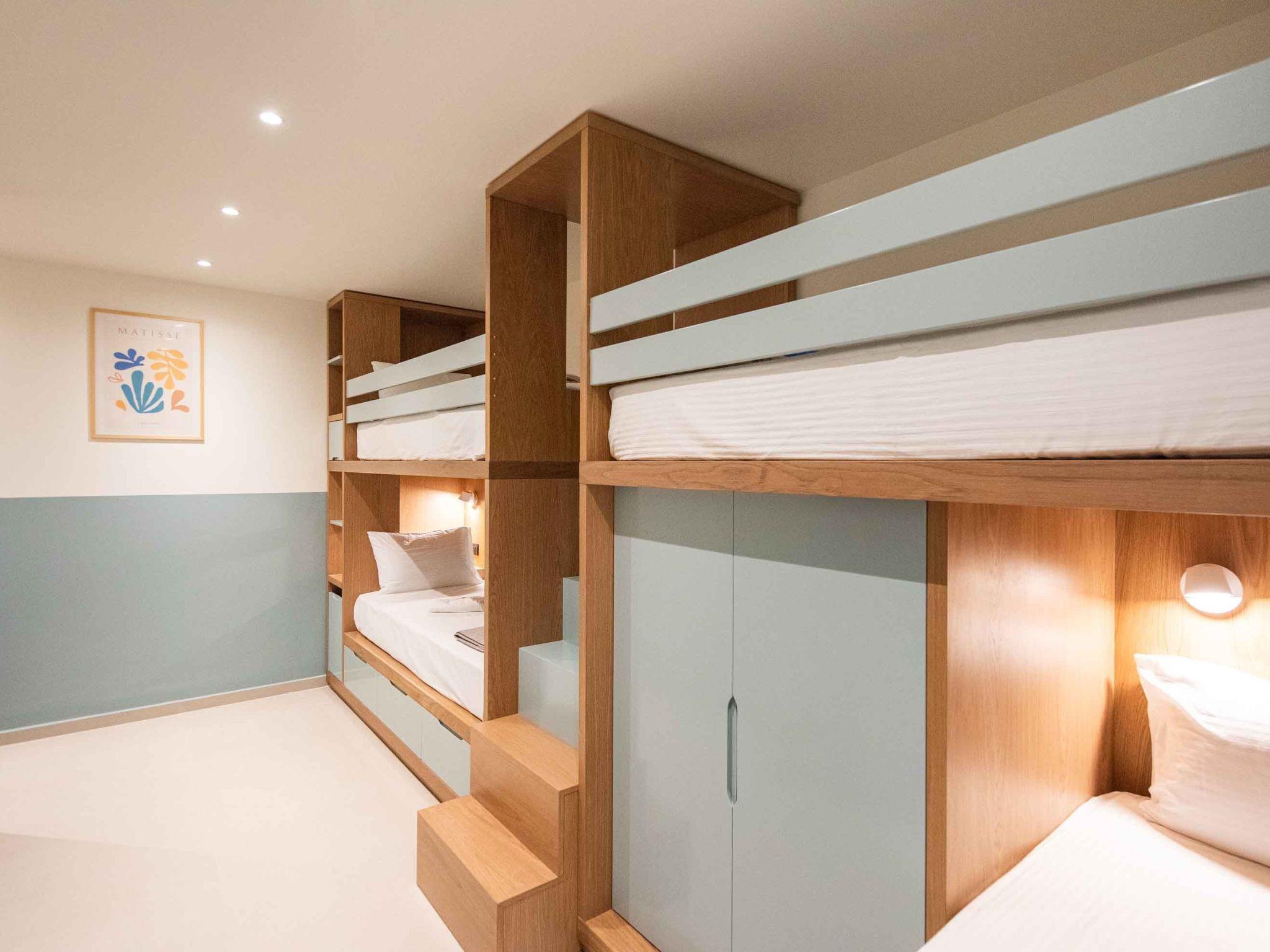 Bedroom 7: Two Bunks with 4 single beds (0.90×2.00) that can accommodate children and adults, 40’’ Smart Satellite TV