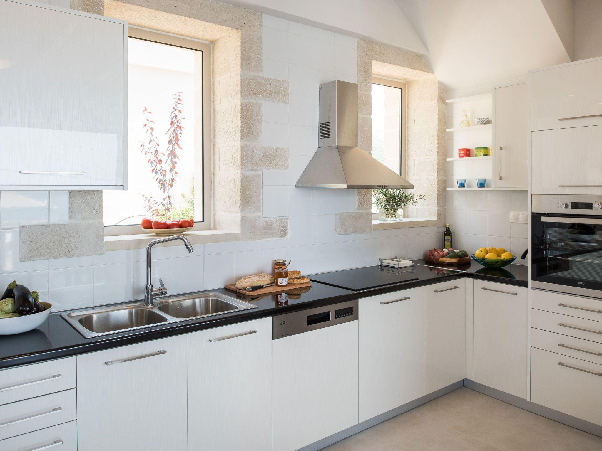 Open plan fully equipped kitchen with a dining area for 8 guests and modern appliances
