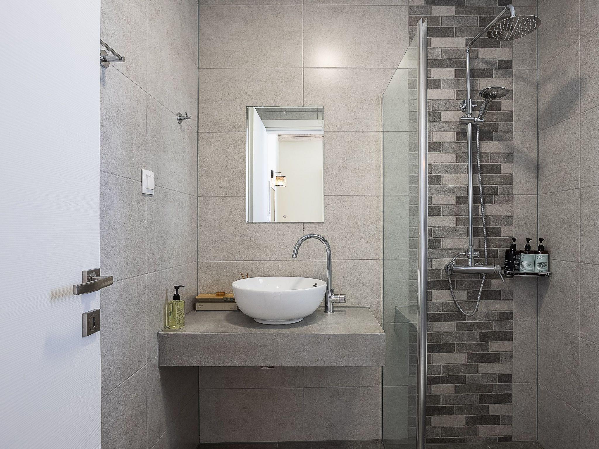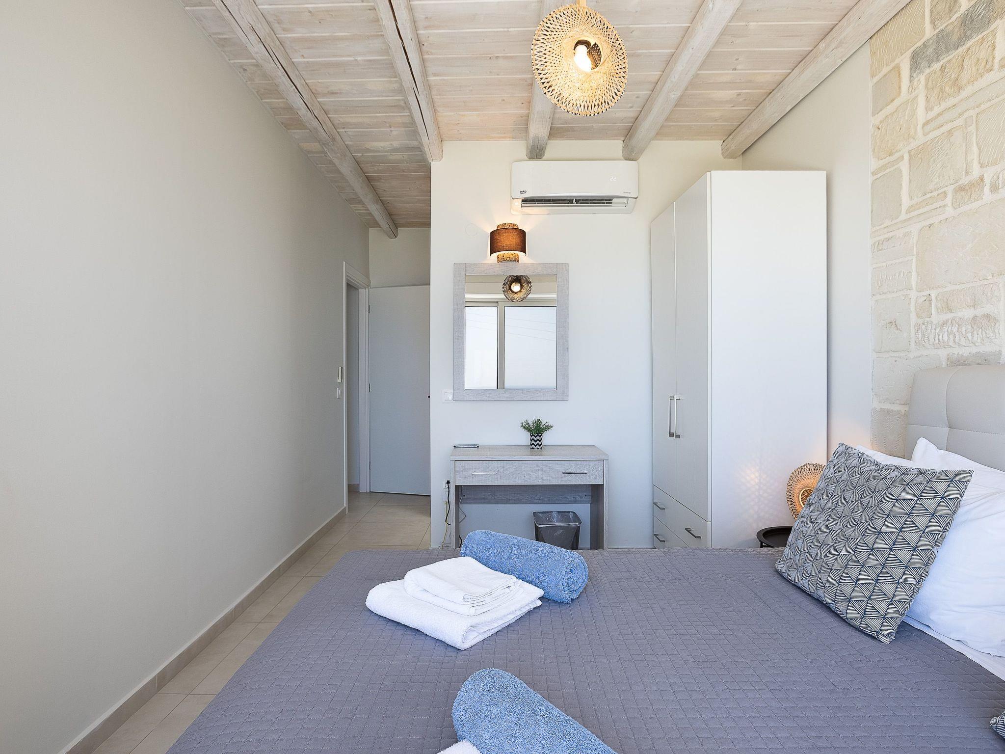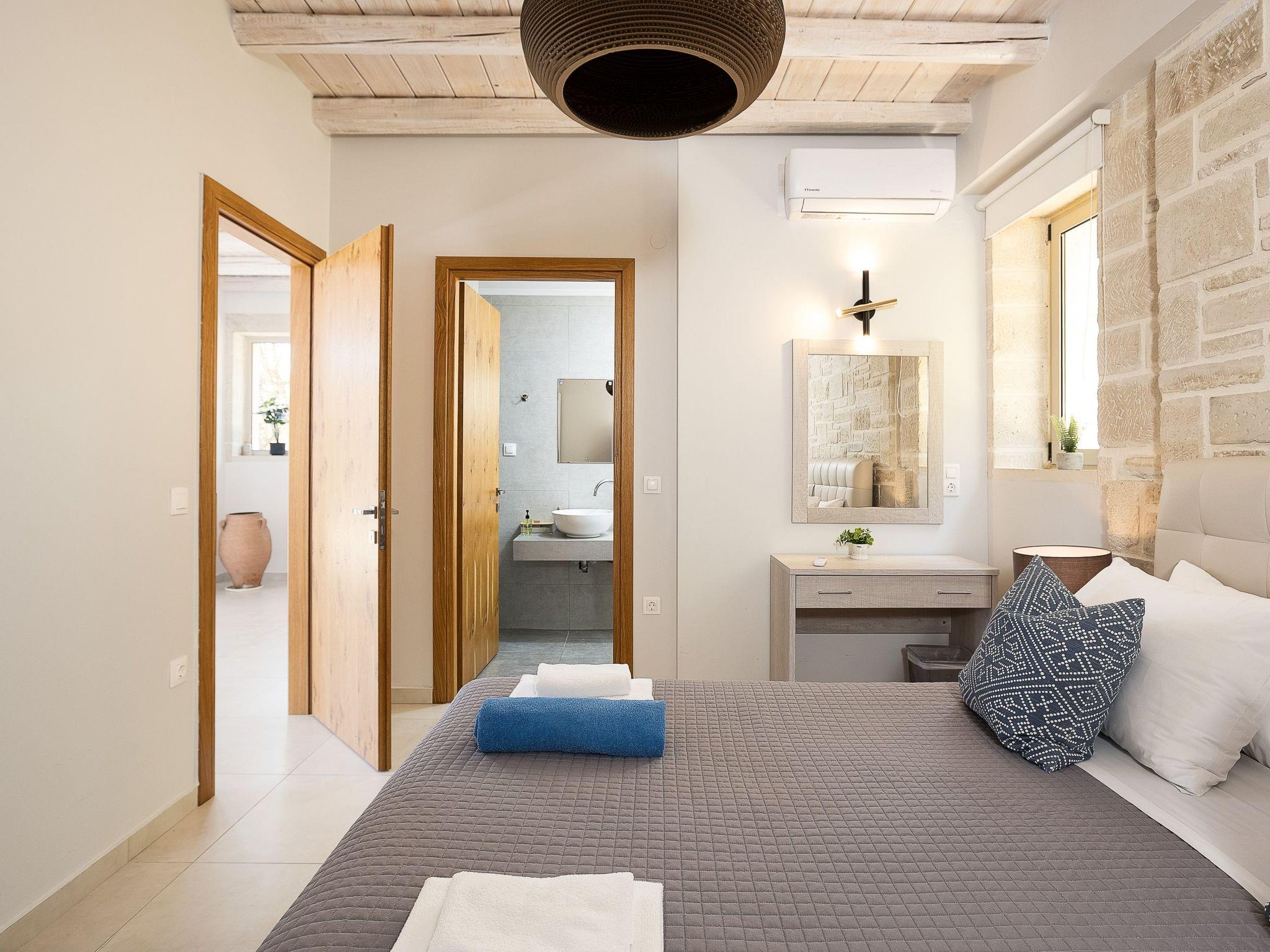 Step inside Villa Elpida, finding a stylish interior that matches the enchanting surrounding of the area. Minimal yet ultimately comfortable, the main living room features large windows gazing at outstanding views of the natural landscape and the Mediterranean Sea. The kitchen is equipped with modern electrical appliances. Five spacious bedrooms with ensuite bathrooms are comfortably dominated by the two floors offering moments of serenity and privacy for all its guests. One bedroom with a double size bed is located on the ground floor with an ensuite bathroom with a shower. The rest bedrooms are located on the first floor two with double-size beds and two with twin-size beds with ensuite bathrooms and a balcony with a sea view.