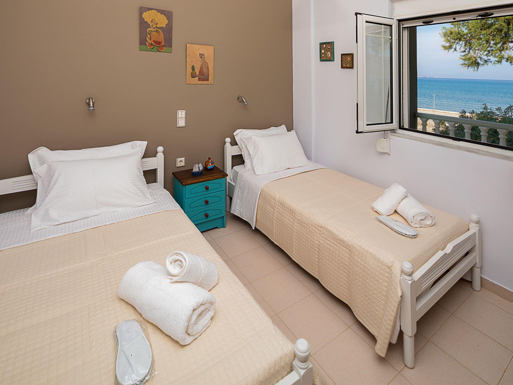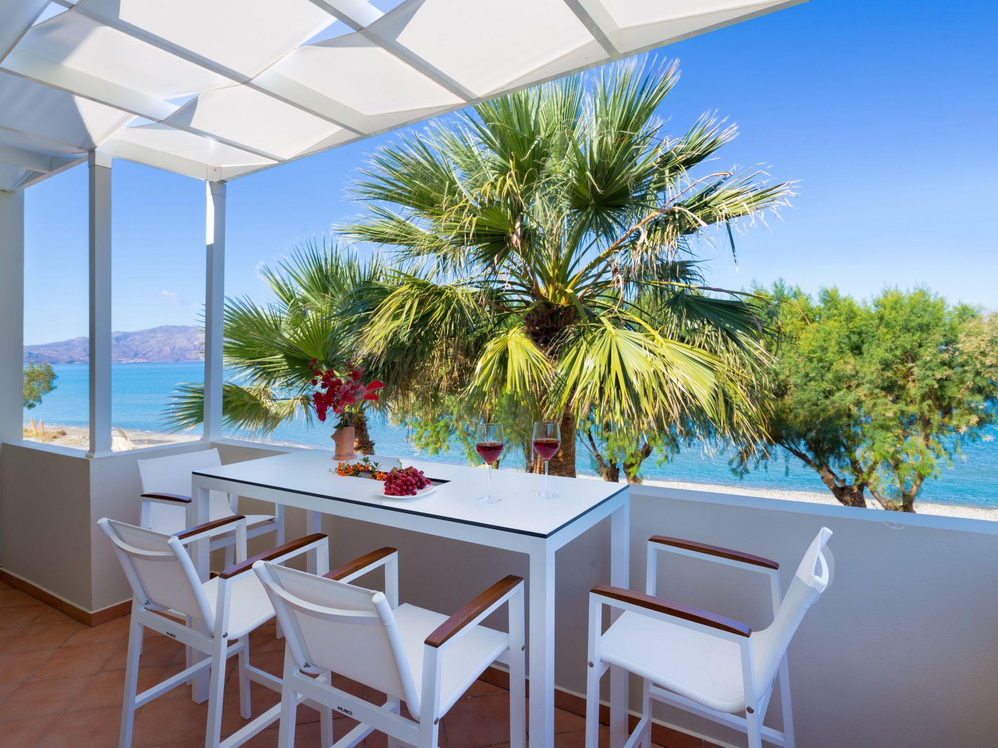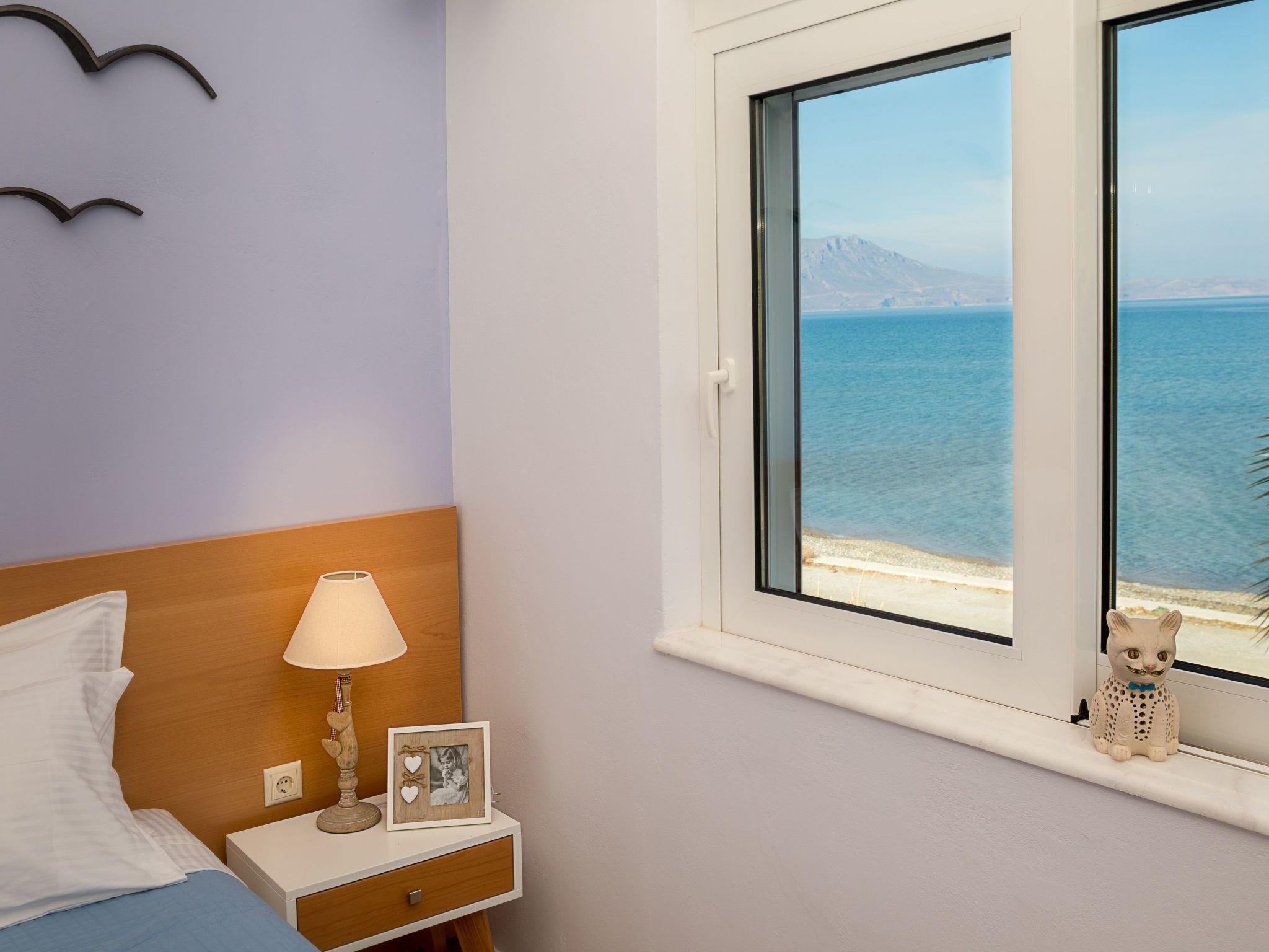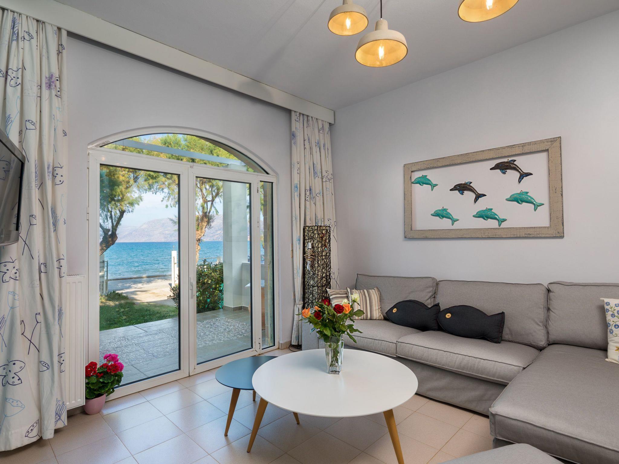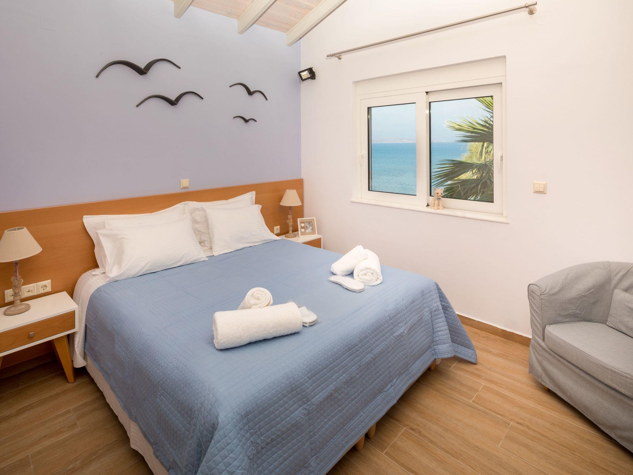 This exclusive holiday villa is located directly on Drapanias Beach in Kissamos (Chania/ Crete). Here you can enjoy a truly unique experience of the big blue sea. Situated in a unique location between two peninsulas, in the middle of Kissamos gulf, it also provides wonderful and romantic sunset views and a feeling of paradise. It is ideal for a spacious and tranquil living. Being in a not densely populated neighborhood, it guarantees privacy and real chill-out atmosphere.We have taken extra care for every single detail, from the bed linings and furniture to the electric devices and decoration, so that you can enjoy an exclusive and enjoyable stay.Just a few steps from the water away and offering spacious indoor and outdoor facilities (garden, terrace and balconies), this is the ideal choice for those loving high quality living standards and the sea or need a peaceful break, safeguarding their privacy and anonymity. It is the right choice for special guests or families with children.At your check-in you will have the chance to savour traditional Cretan tastes and enjoy Cretan products we have carefully chosen for you.The Exclusive Seafront Villa is located very close to internationally known beaches (Falassarna, Balos and Elafonissi are around the corner) and archaeological sites such as Gramvousa, Polirinea etc. For those loving night life and wandering around, Kissamos is at a 8km, Platanias at a 15km and the city of Chania at a 30km distance.How to reach the Big Blue Exclusive Seafront VillaOn the highway it's 30 km from Chania to Kissamos (Castelli). Driving past the big intersection to Nopigia, you will have to follow the signs leading to Drapanias Beach. Reaching the beach, you will find us after driving 300m on your right.