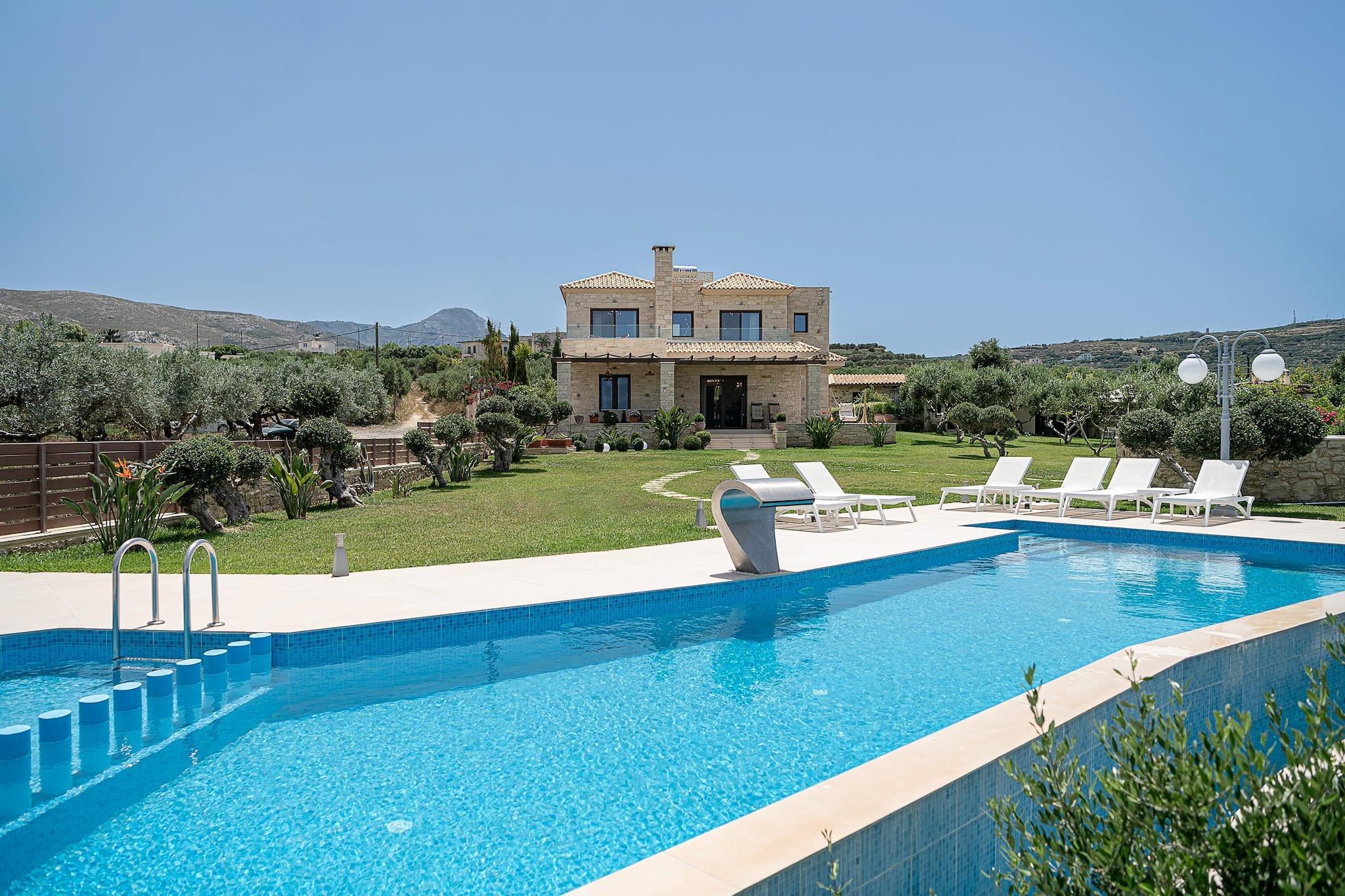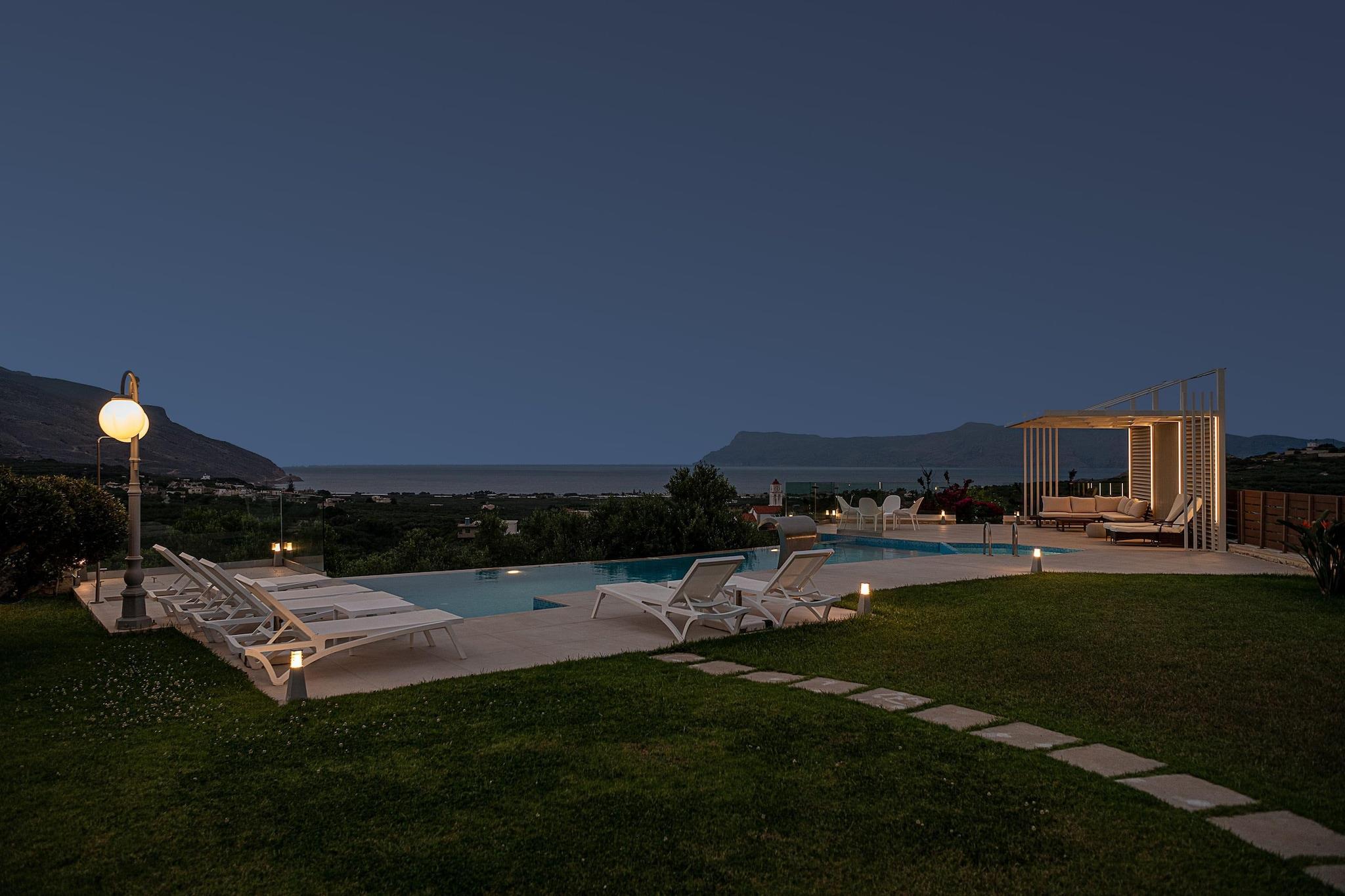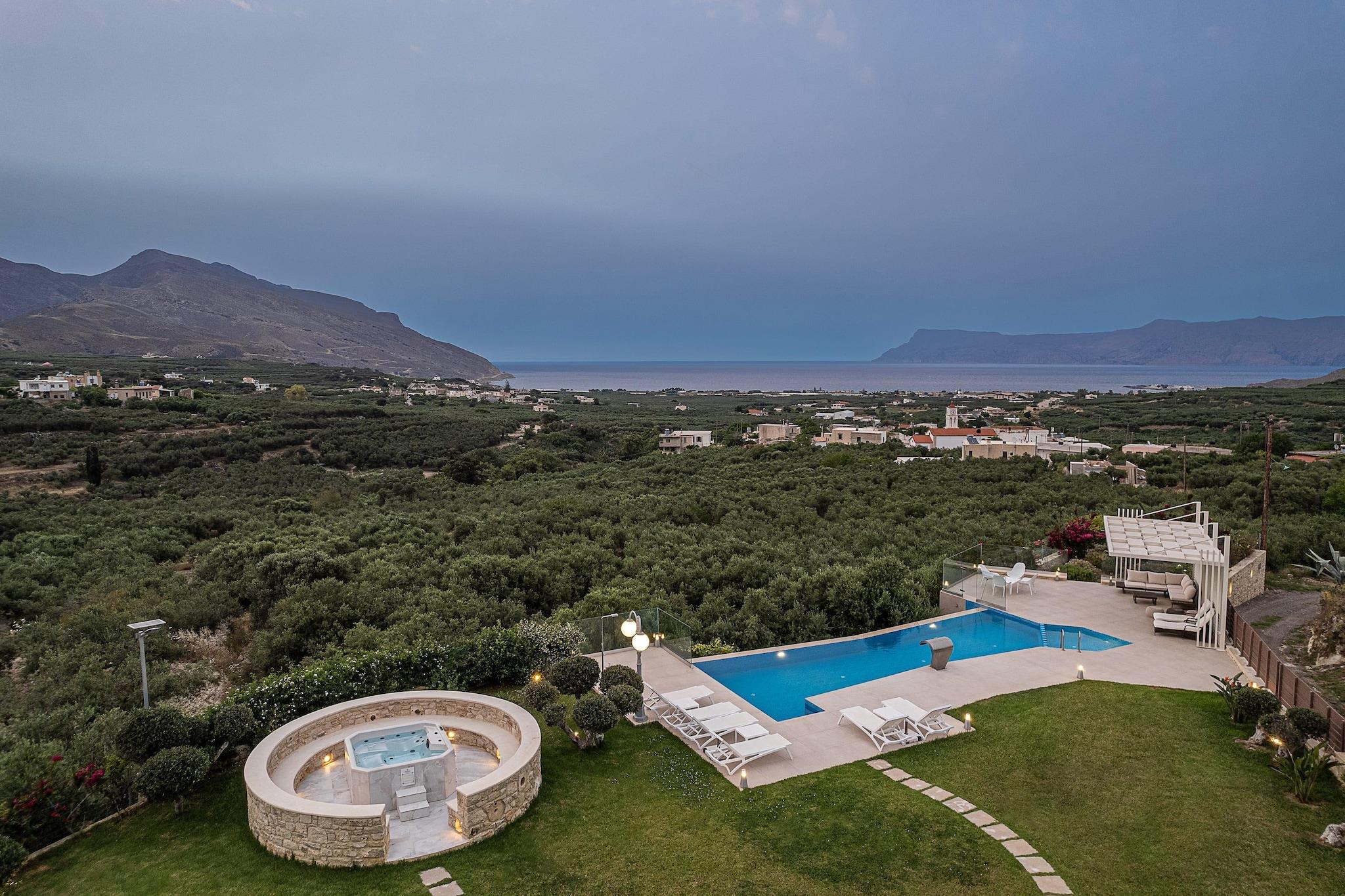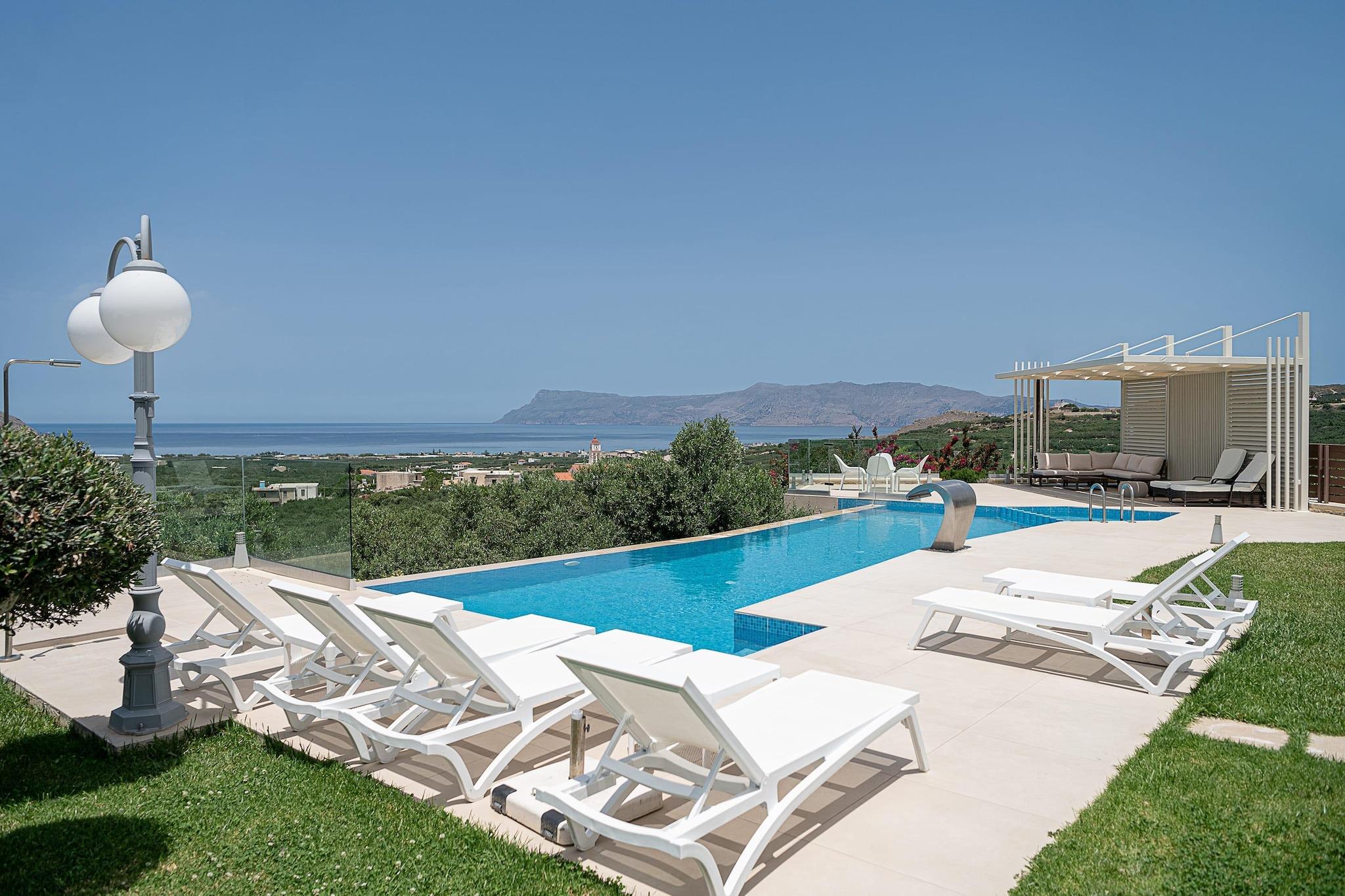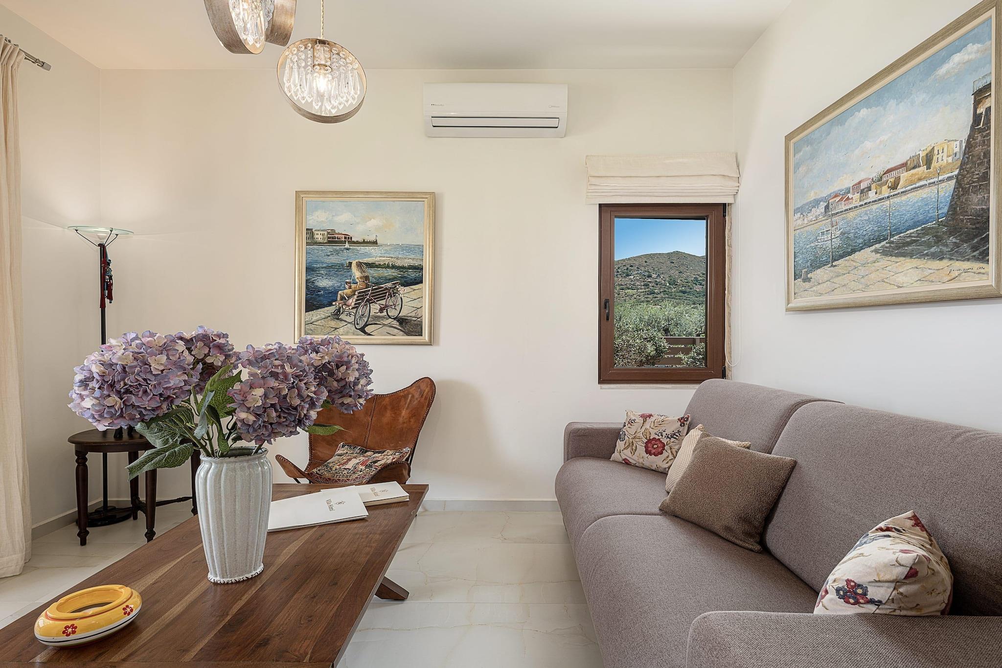 Forestil dig selv ankomme til en stille gyde med oliventræer, stenmure og smilende kretensisk varme. Denne villa ligger lige uden for en lille landsby nær den søvnige by Kissamos - et fredeligt ophold, hvor havbrise, barsk kystlinje og stille nætter sætter tonen for en afslappet, ægte og fuld af muligheder. Når du træder ind i villaen, bliver du budt velkommen af rummeligt interiør, hvor komfort møder elegance. Planløsningen omfatter fire hyggelige soveværelser og tre badeværelser, der er indrettet til at rumme op til 8 gæster. Hvert værelse er designet til at føles naturligt og beskedent - med detaljer i sten og træ, blød belysning og masser af plads til at slappe af. En lys opholdsstue smelter sammen med et moderne køkken - udstyret og klar til hjemmelavede måltider. Udenfor byder villaen på adskillige faciliteter, en privat infinity-pool med udsigt over grønne områder og det fjerne hav, perfekt til rolige morgener med kaffe eller dovne eftermiddage. En solterrasse og have giver dig plads til at slappe af, læse, dele måltider eller se stjerner efter middagen. Når du er klar til at udforske, åbner Kretas vestkyst sig op for mange muligheder - gyldne sandstrande, skjulte bugter og blåt vand - fra afslappet solbadning til snorkling og bådture, alt sammen inden for få minutters rækkevidde. Lokale tavernaer, frokoster med havudsigt, frisk fisk og skaldyr og vandreture langs kysten bringer en langsommere og rigere rytme til dine dage. Villa Aloni er et stille stykke af Kreta, hvor mennesker samles, hav og himmel bliver baggrunden, og minder skabes mellem sollys, oliventræer og en blød havbrise.