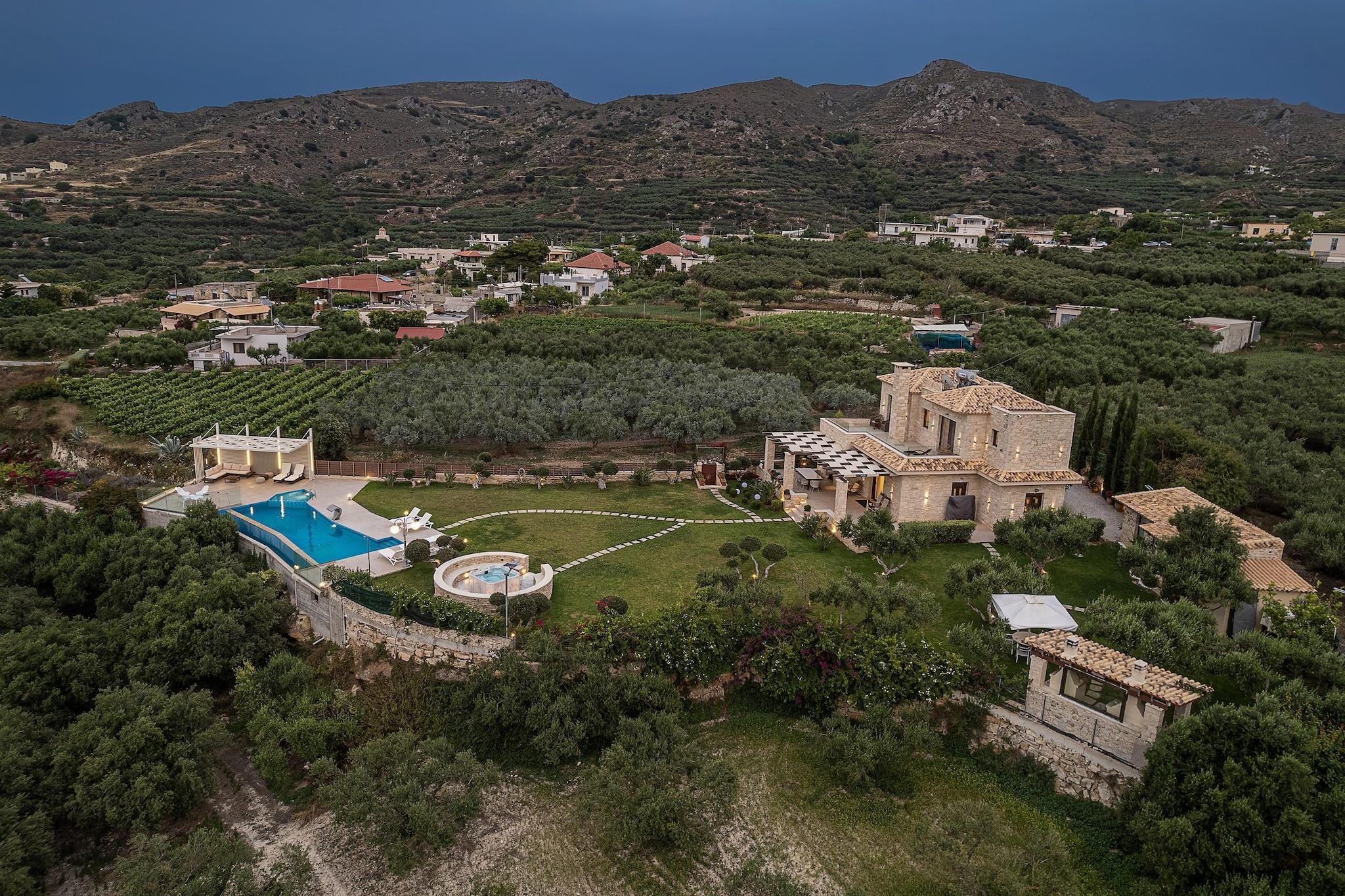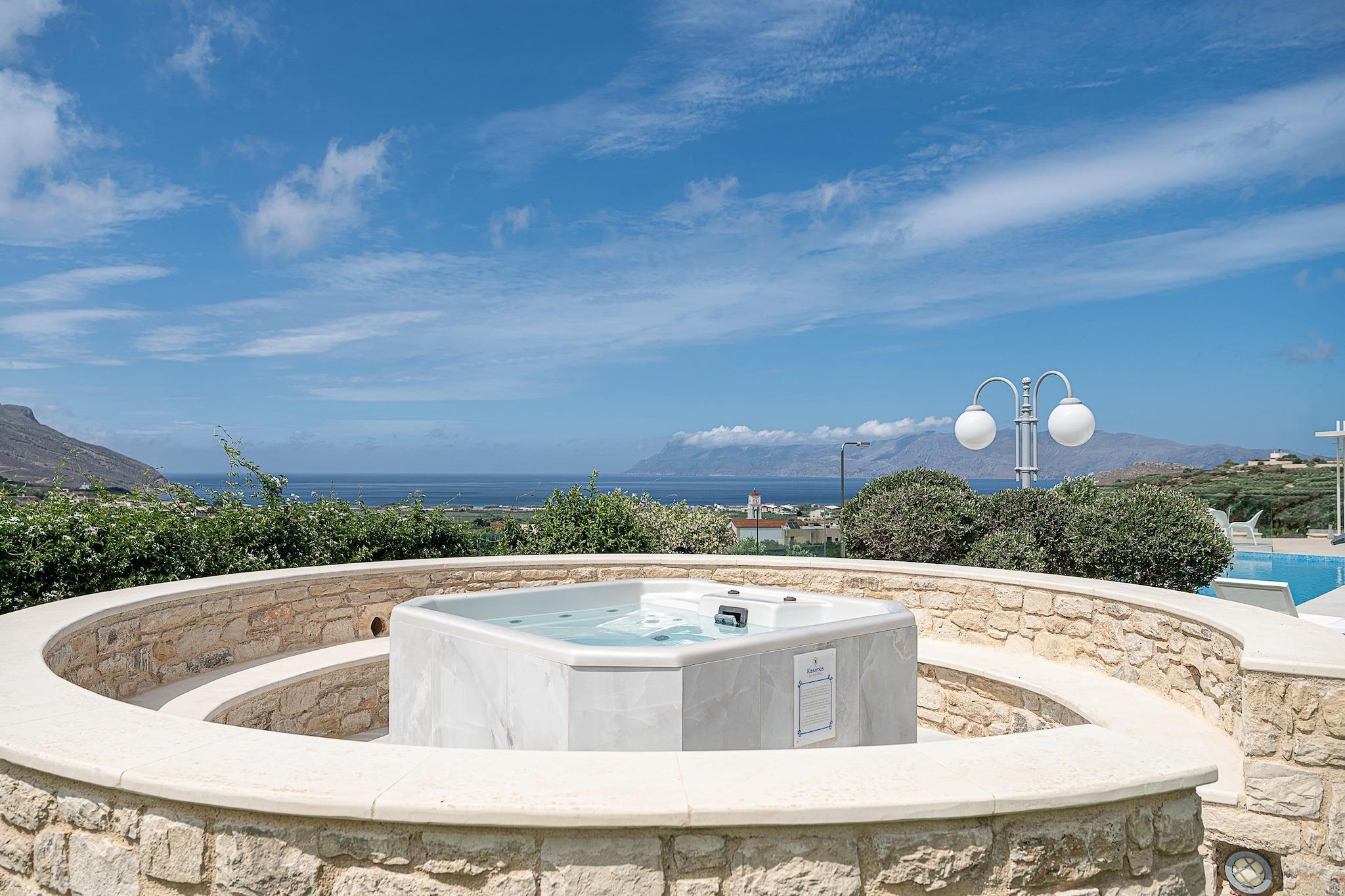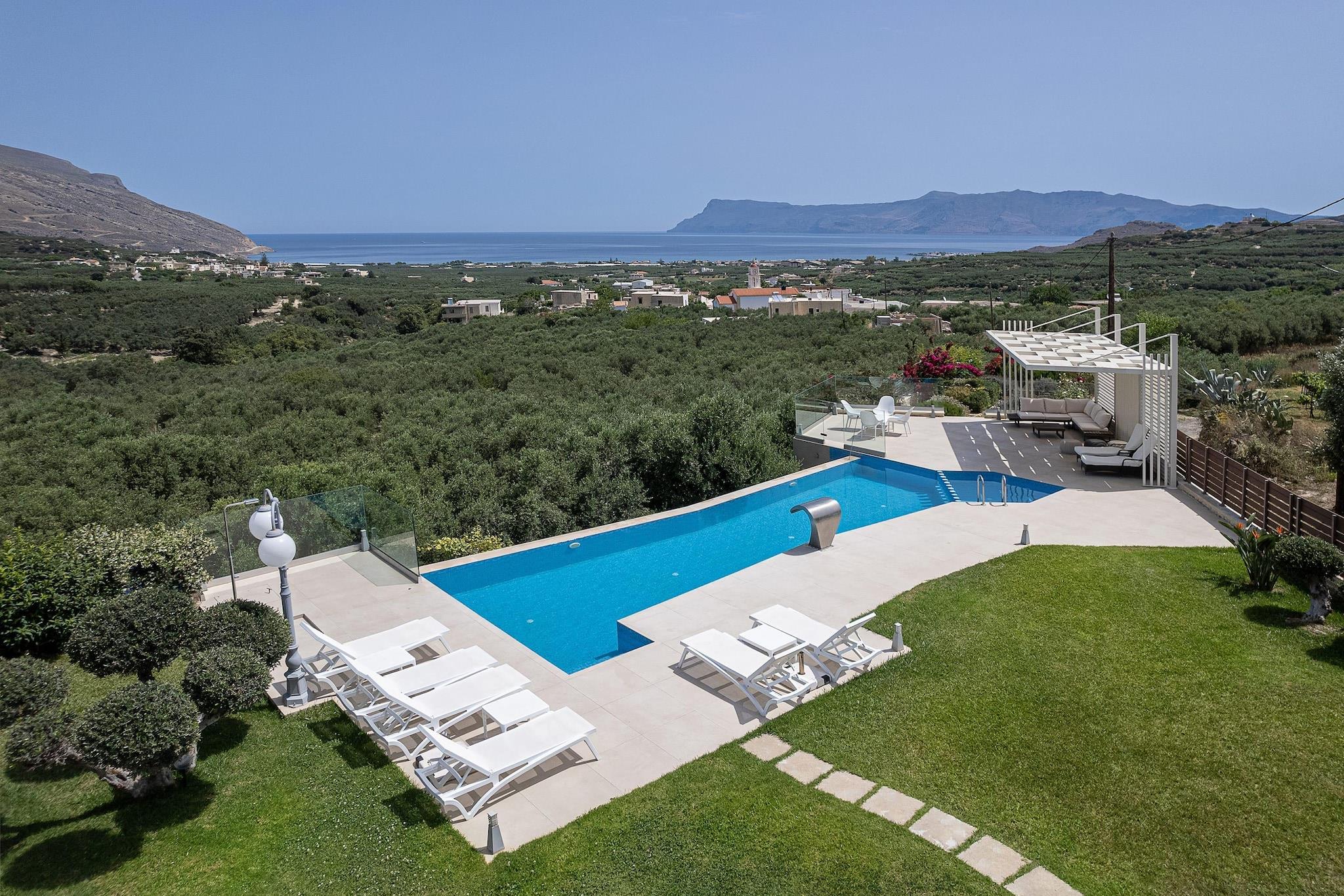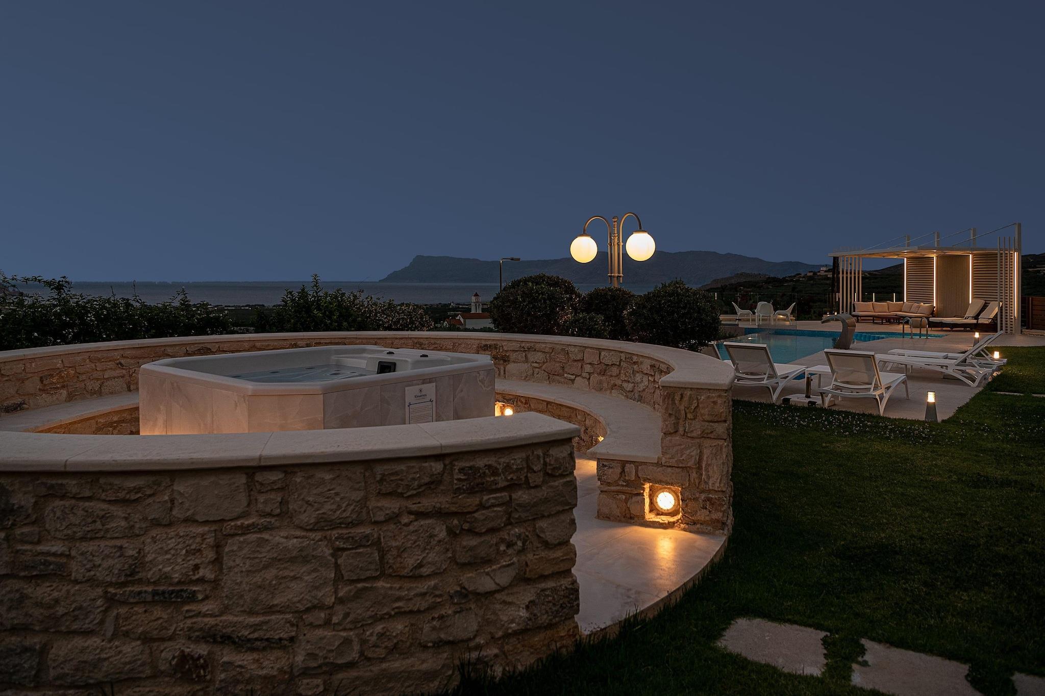 Forestil dig selv ankomme til en stille gyde med oliventræer, stenmure og smilende kretensisk varme. Denne villa ligger lige uden for en lille landsby nær den søvnige by Kissamos - et fredeligt ophold, hvor havbrise, barsk kystlinje og stille nætter sætter tonen for en afslappet, ægte og fuld af muligheder. Når du træder ind i villaen, bliver du budt velkommen af rummeligt interiør, hvor komfort møder elegance. Planløsningen omfatter fire hyggelige soveværelser og tre badeværelser, der er indrettet til at rumme op til 8 gæster. Hvert værelse er designet til at føles naturligt og beskedent - med detaljer i sten og træ, blød belysning og masser af plads til at slappe af. En lys opholdsstue smelter sammen med et moderne køkken - udstyret og klar til hjemmelavede måltider. Udenfor byder villaen på adskillige faciliteter, en privat infinity-pool med udsigt over grønne områder og det fjerne hav, perfekt til rolige morgener med kaffe eller dovne eftermiddage. En solterrasse og have giver dig plads til at slappe af, læse, dele måltider eller se stjerner efter middagen. Når du er klar til at udforske, åbner Kretas vestkyst sig op for mange muligheder - gyldne sandstrande, skjulte bugter og blåt vand - fra afslappet solbadning til snorkling og bådture, alt sammen inden for få minutters rækkevidde. Lokale tavernaer, frokoster med havudsigt, frisk fisk og skaldyr og vandreture langs kysten bringer en langsommere og rigere rytme til dine dage. Villa Aloni er et stille stykke af Kreta, hvor mennesker samles, hav og himmel bliver baggrunden, og minder skabes mellem sollys, oliventræer og en blød havbrise.