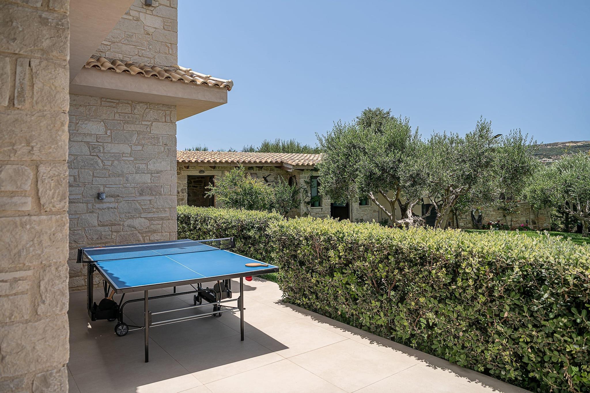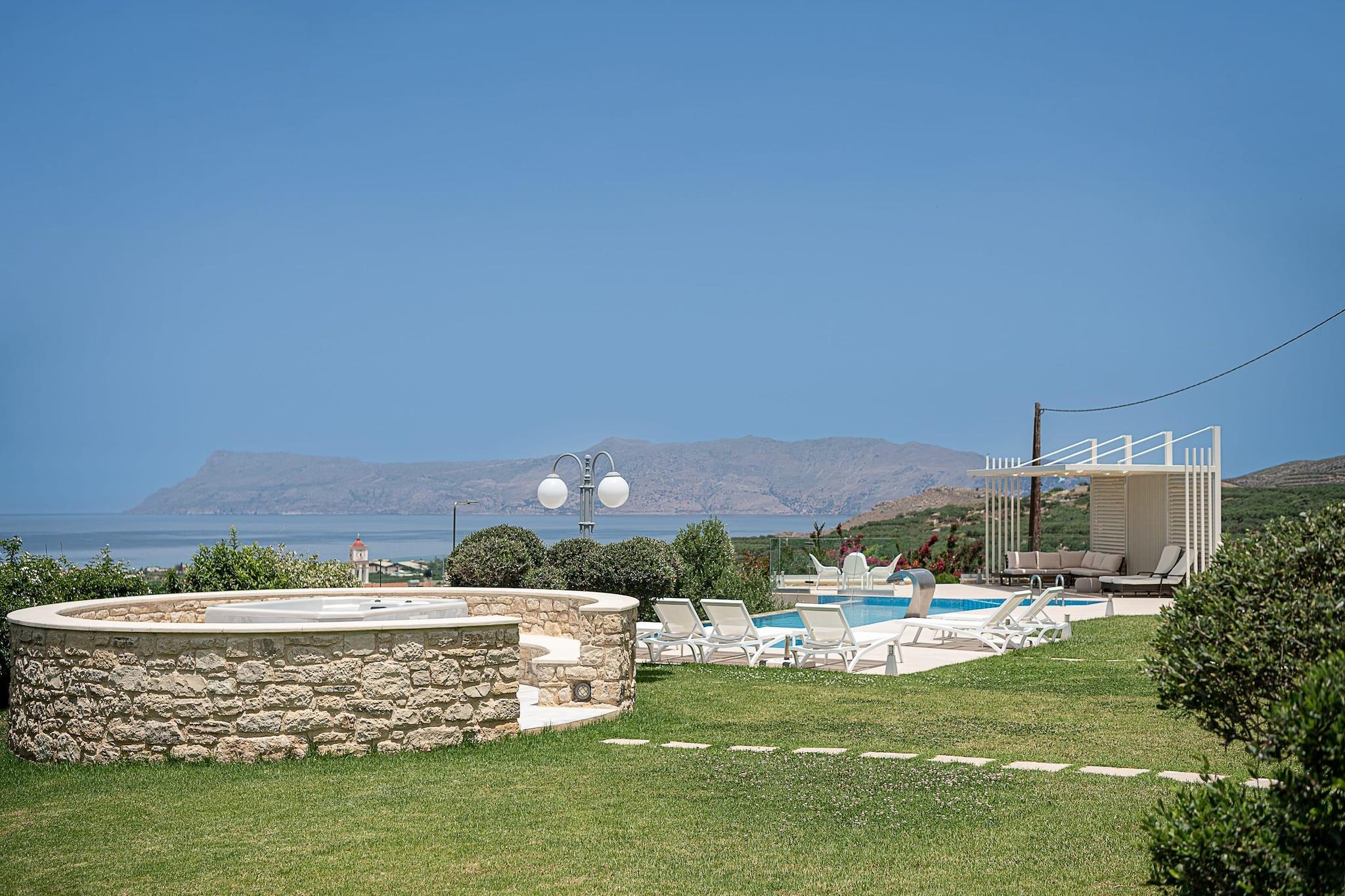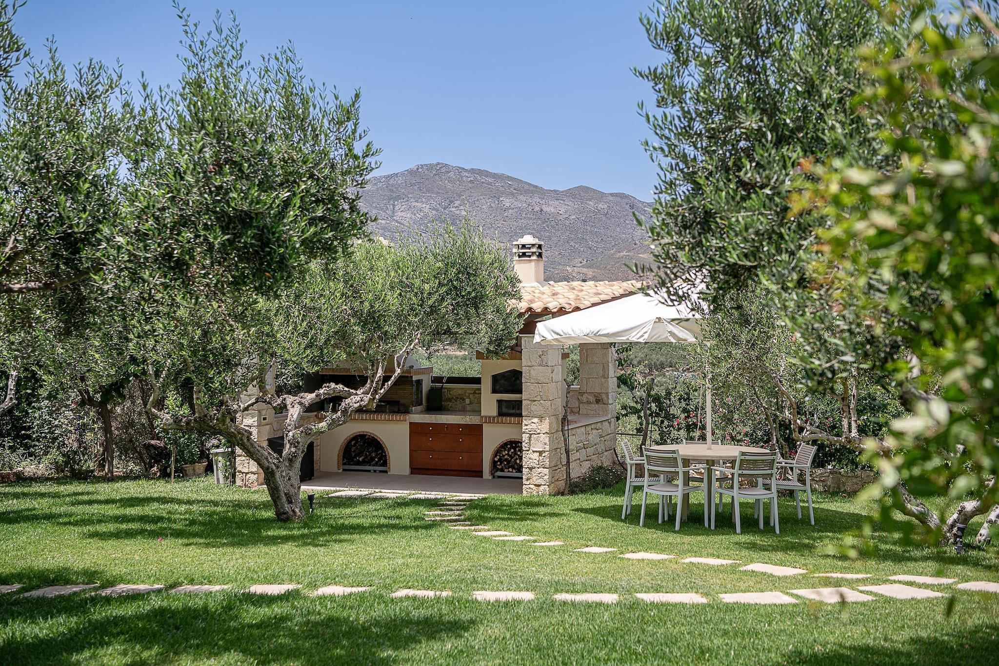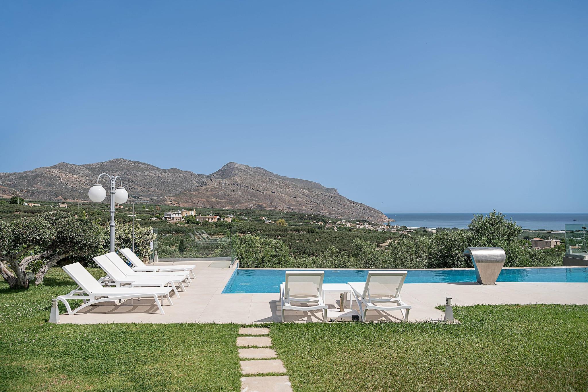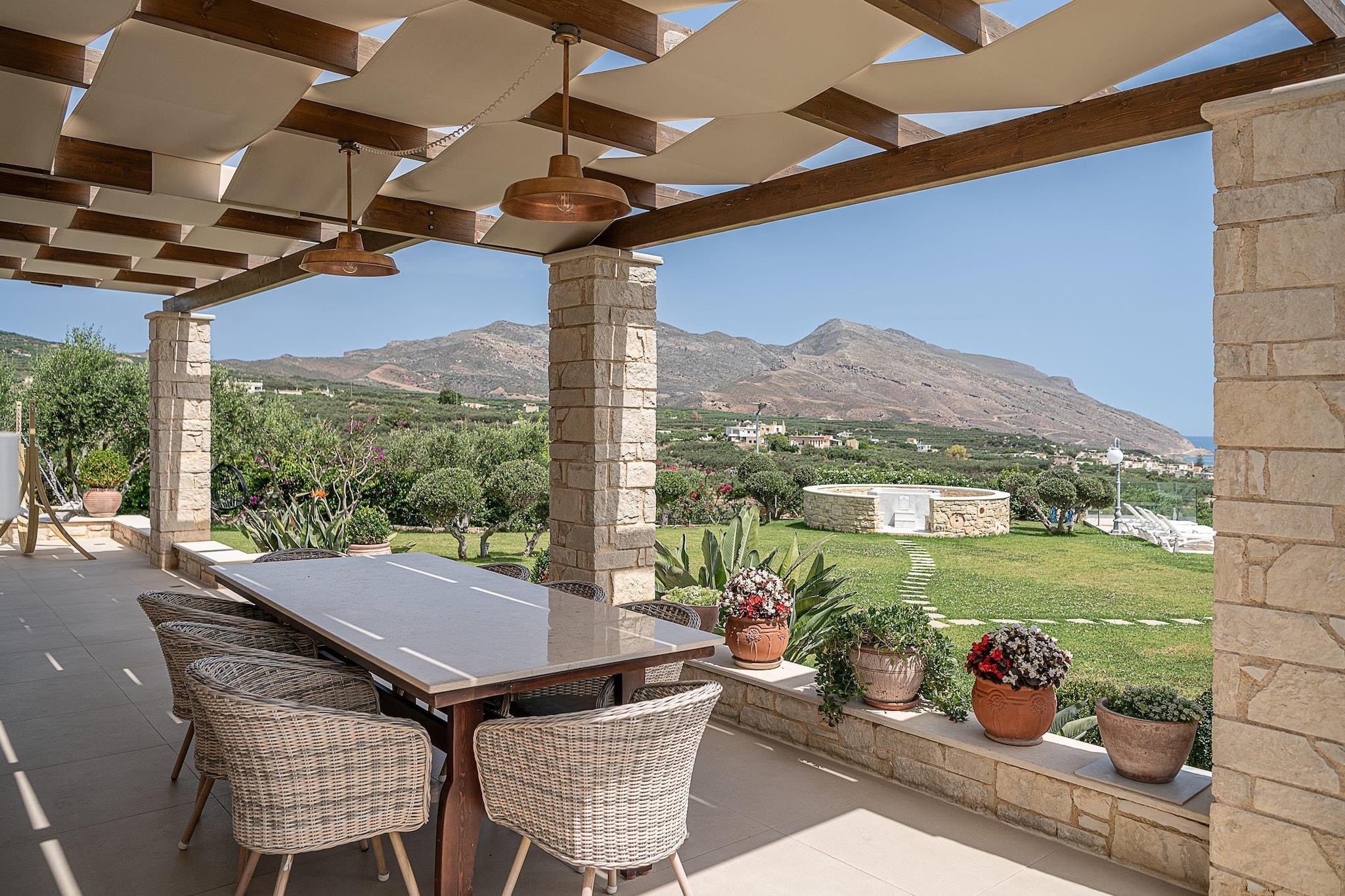 Forestil dig selv ankomme til en stille gyde med oliventræer, stenmure og smilende kretensisk varme. Denne villa ligger lige uden for en lille landsby nær den søvnige by Kissamos - et fredeligt ophold, hvor havbrise, barsk kystlinje og stille nætter sætter tonen for en afslappet, ægte og fuld af muligheder. Når du træder ind i villaen, bliver du budt velkommen af rummeligt interiør, hvor komfort møder elegance. Planløsningen omfatter fire hyggelige soveværelser og tre badeværelser, der er indrettet til at rumme op til 8 gæster. Hvert værelse er designet til at føles naturligt og beskedent - med detaljer i sten og træ, blød belysning og masser af plads til at slappe af. En lys opholdsstue smelter sammen med et moderne køkken - udstyret og klar til hjemmelavede måltider. Udenfor byder villaen på adskillige faciliteter, en privat infinity-pool med udsigt over grønne områder og det fjerne hav, perfekt til rolige morgener med kaffe eller dovne eftermiddage. En solterrasse og have giver dig plads til at slappe af, læse, dele måltider eller se stjerner efter middagen. Når du er klar til at udforske, åbner Kretas vestkyst sig op for mange muligheder - gyldne sandstrande, skjulte bugter og blåt vand - fra afslappet solbadning til snorkling og bådture, alt sammen inden for få minutters rækkevidde. Lokale tavernaer, frokoster med havudsigt, frisk fisk og skaldyr og vandreture langs kysten bringer en langsommere og rigere rytme til dine dage. Villa Aloni er et stille stykke af Kreta, hvor mennesker samles, hav og himmel bliver baggrunden, og minder skabes mellem sollys, oliventræer og en blød havbrise.