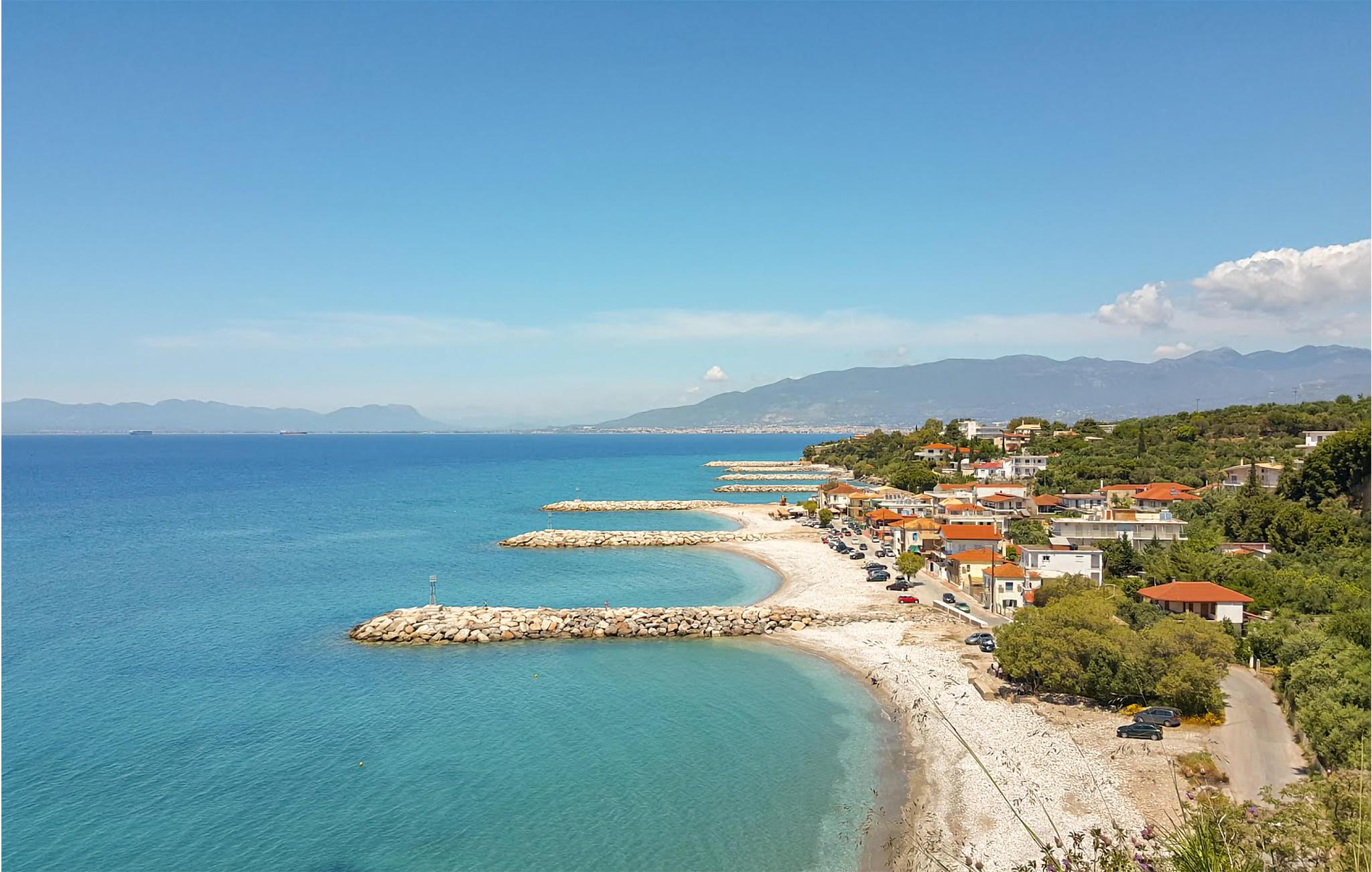 Byen Kitries byder på mange restauranter, barer og diskoteker. Kun 300 m fra huset ligger en strand med kiselsten og nærmeste sandstrand med parasoller, liggestole og vandsportsmuligheder ligger kun 1,2 km fra huset, så de badeglade får rigeligt med muligheder for at kunne boltre sig i det friske vand.