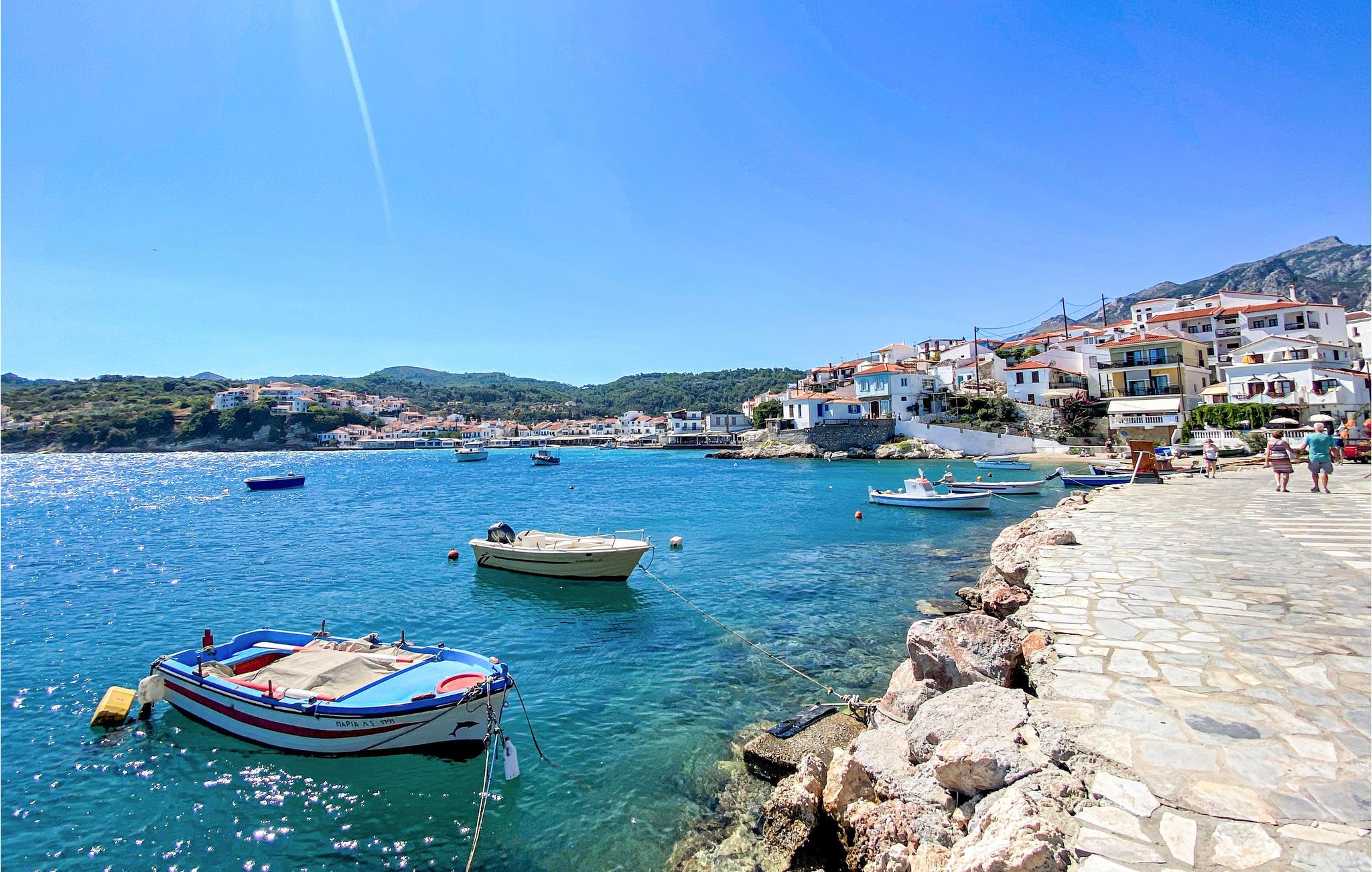 Grib badehåndklædet, gå fra feriehuset til havet og nyd det klare vand på stenstranden. I det flotte ø-landskab kan I tage på vandreture. I kan også tage en tur til Vathi med den livlige havn og store udvalg af kulturtilbud.