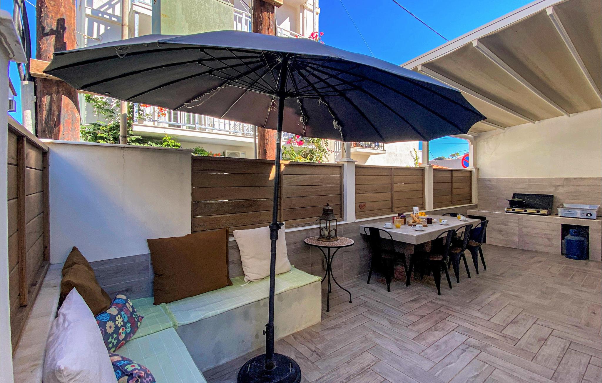I første række til stranden ligger dette skønne hus på Samos, hvor I kan slappe af i en hjemlig atmosfære med hele familien. Varme farver og moderne faciliteter gør det nemt for jer at glemme hverdagens stress og jag. Tilbered måltider i det åbne køkken og spis sammen på terrassen. Om aftenen kan I føle jer godt tilpas sammen på de indbydende sofaer, se en film og lade dagen slutte behageligt.