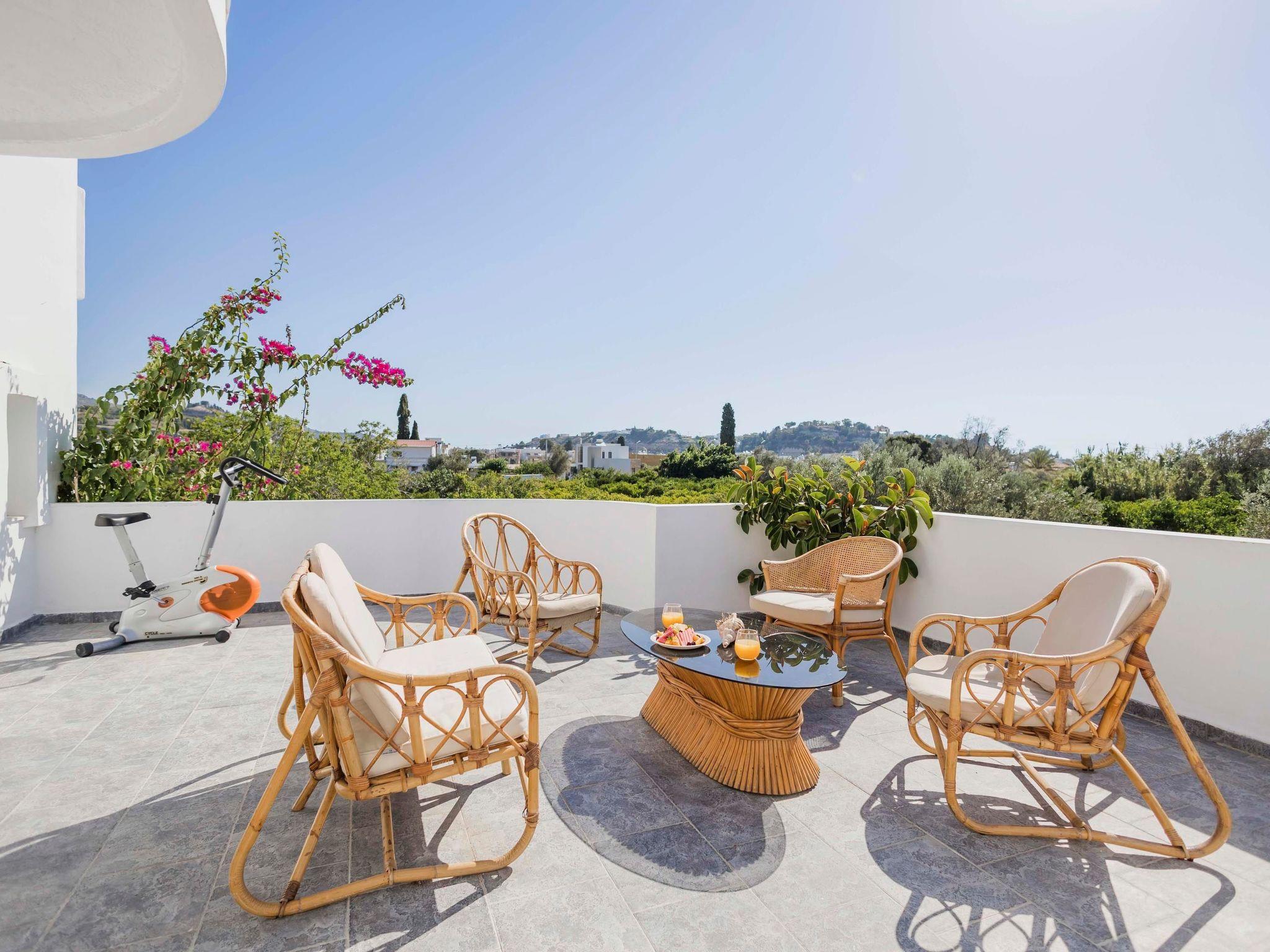Welcome to our beautiful villa in Afantou, Rhodes, perfect for up to 6 guests. This modern and comfortable villa features two fully air-conditioned bedrooms, each with a double bed, balcony, and TV, ensuring a cozy and private space for everyone. The villa has one bathroom with a shower and an additional WC for your convenience. The spacious living room is ideal for relaxing and entertaining, with a double sofa bed and another TV. For those who like to stay active, there is fitness equipment, including an exercise bicycle. The fully equipped kitchen provides everything you need to prepare delicious meals, making it easy to enjoy home-cooked dining. Outside, you will find a private garden where you can unwind and enjoy the fresh air. The dining area is perfect for alfresco meals, especially with the gas BBQ available for grilling your favorite dishes. The highlight of the outdoor space is the private infinity swimming pool, where you can take a refreshing dip while enjoying the stunning views. Additionally, there is an unheated jacuzzi for relaxation. This villa offers a wonderful blend of comfort and luxury, making it an ideal choice for families or groups of friends looking to experience the best of Rhodes.