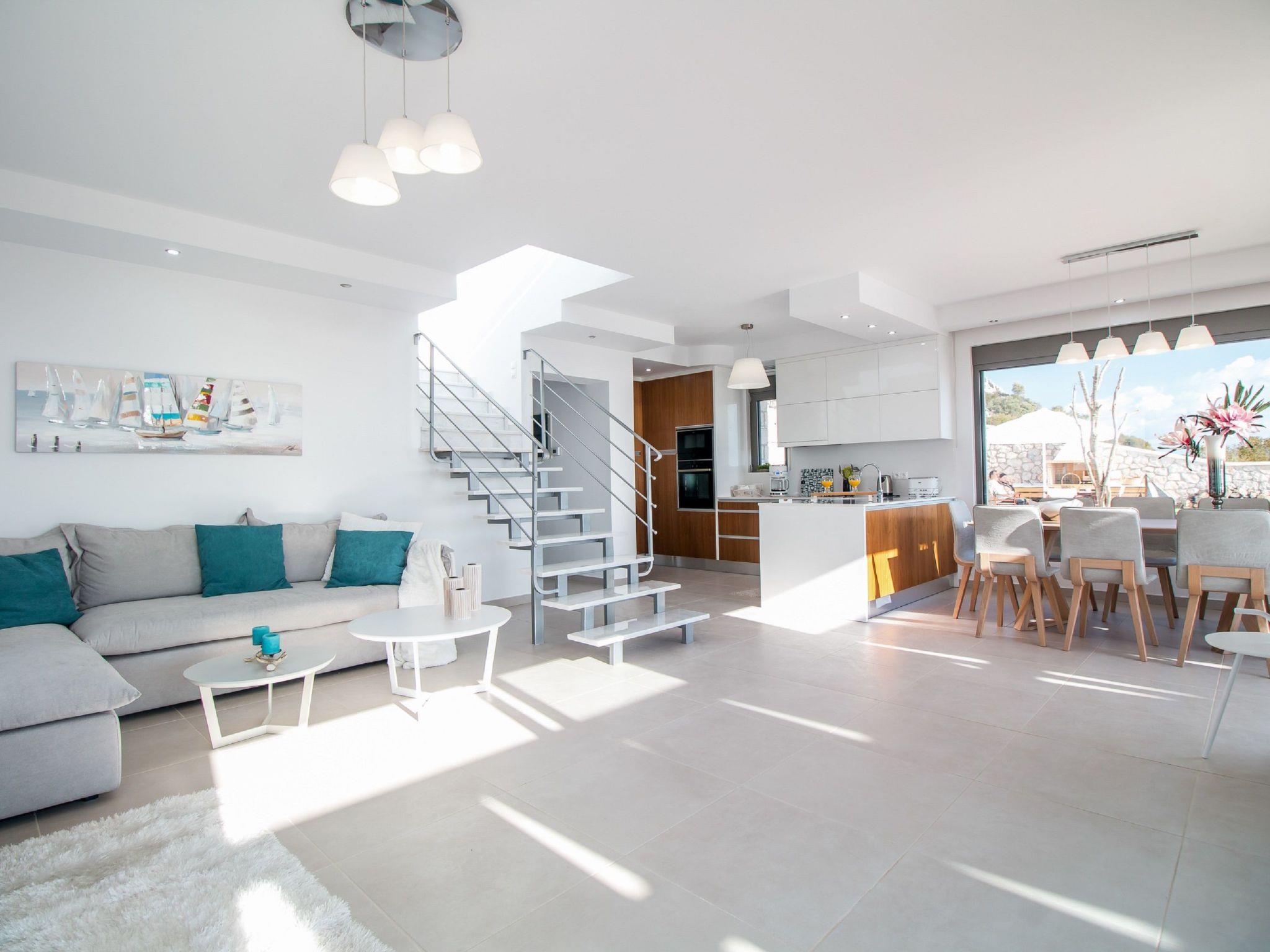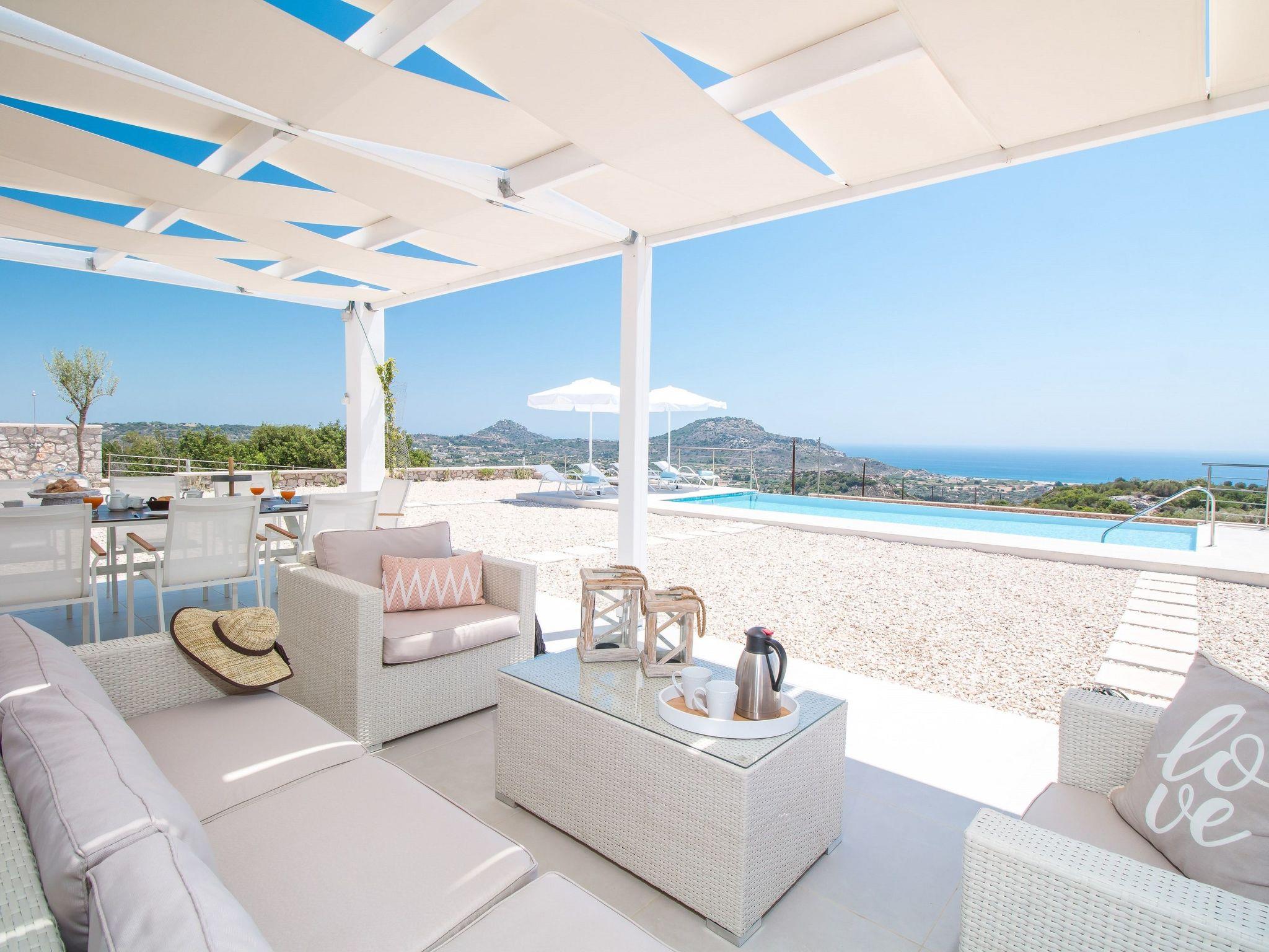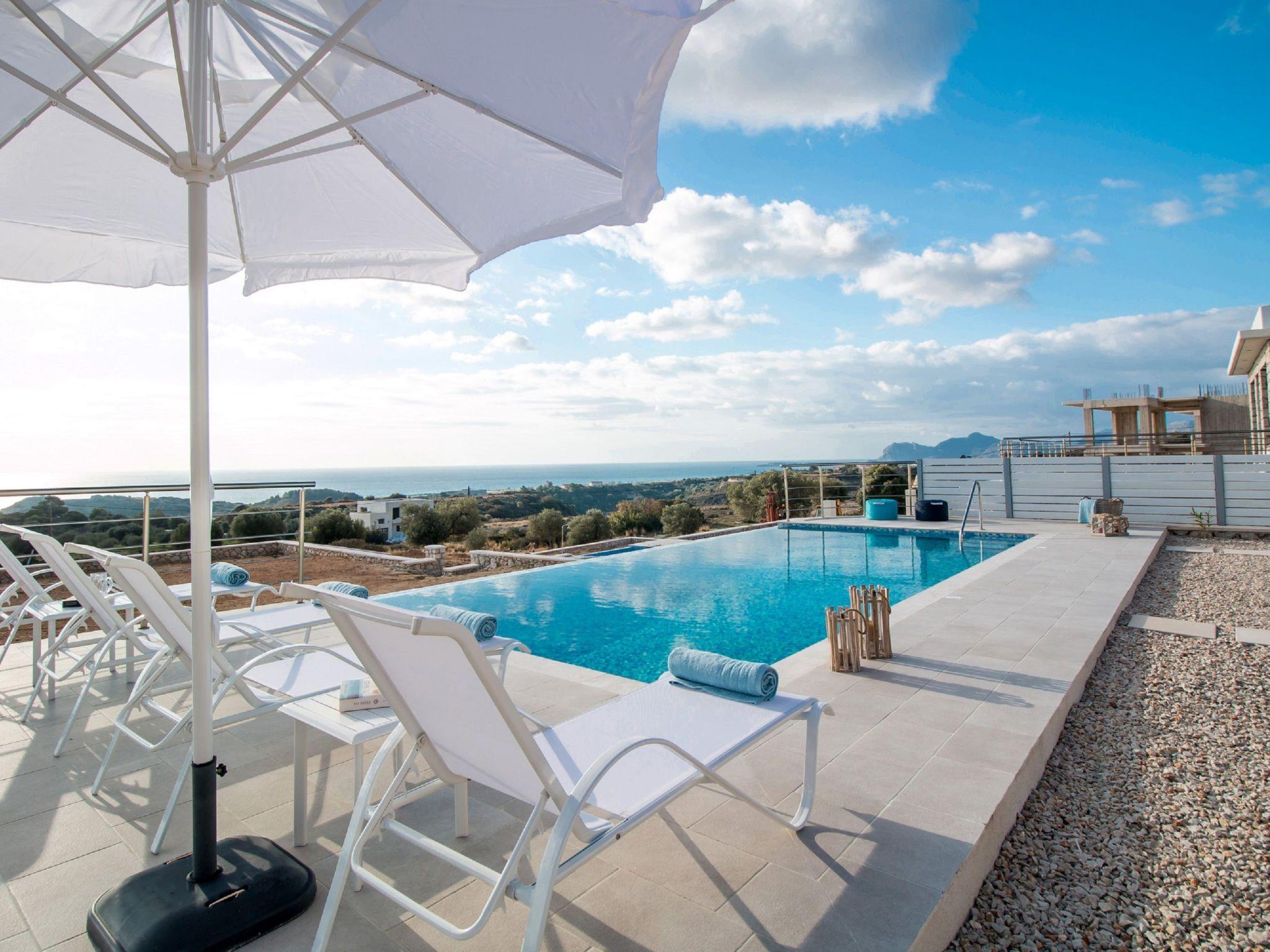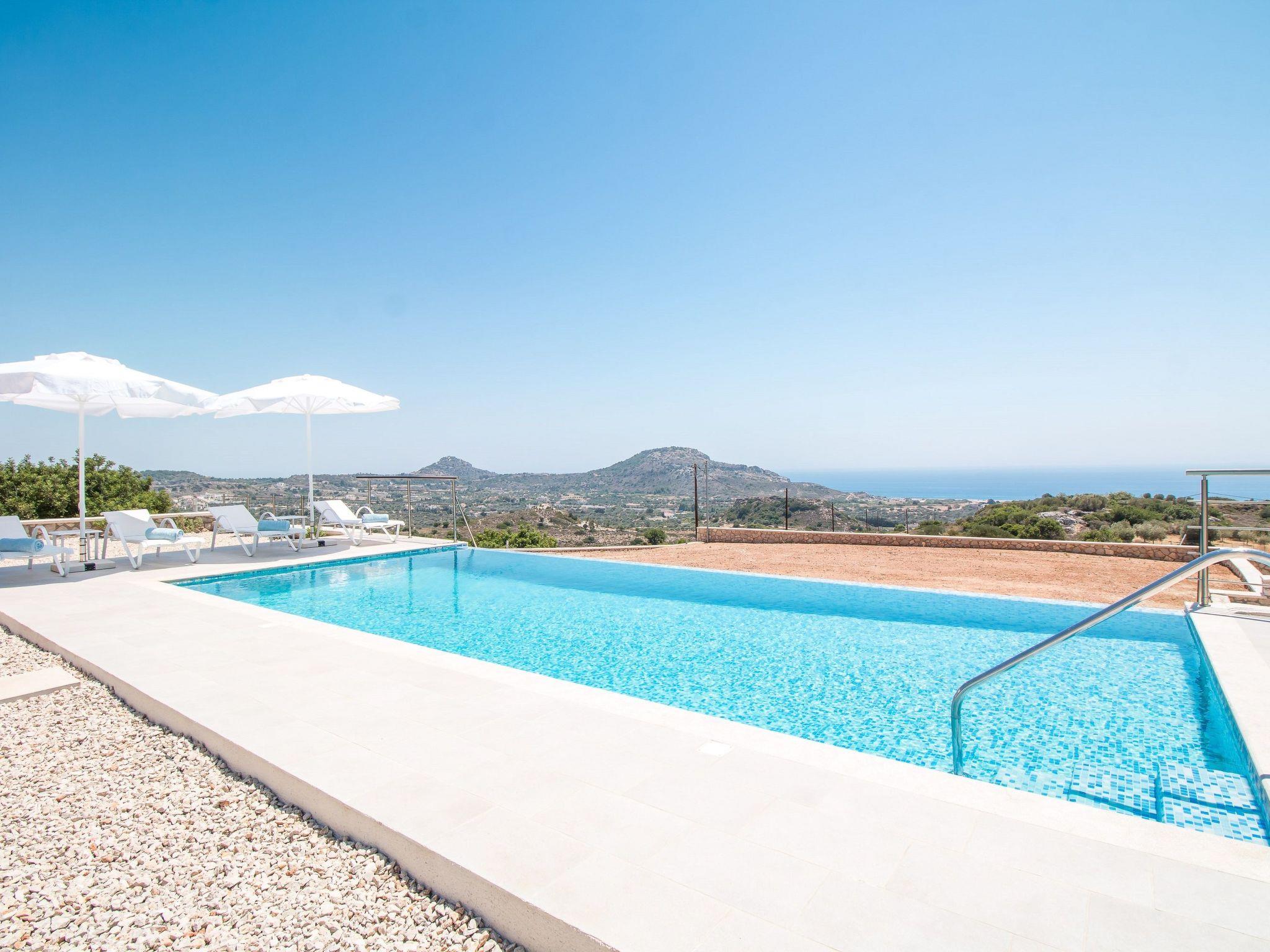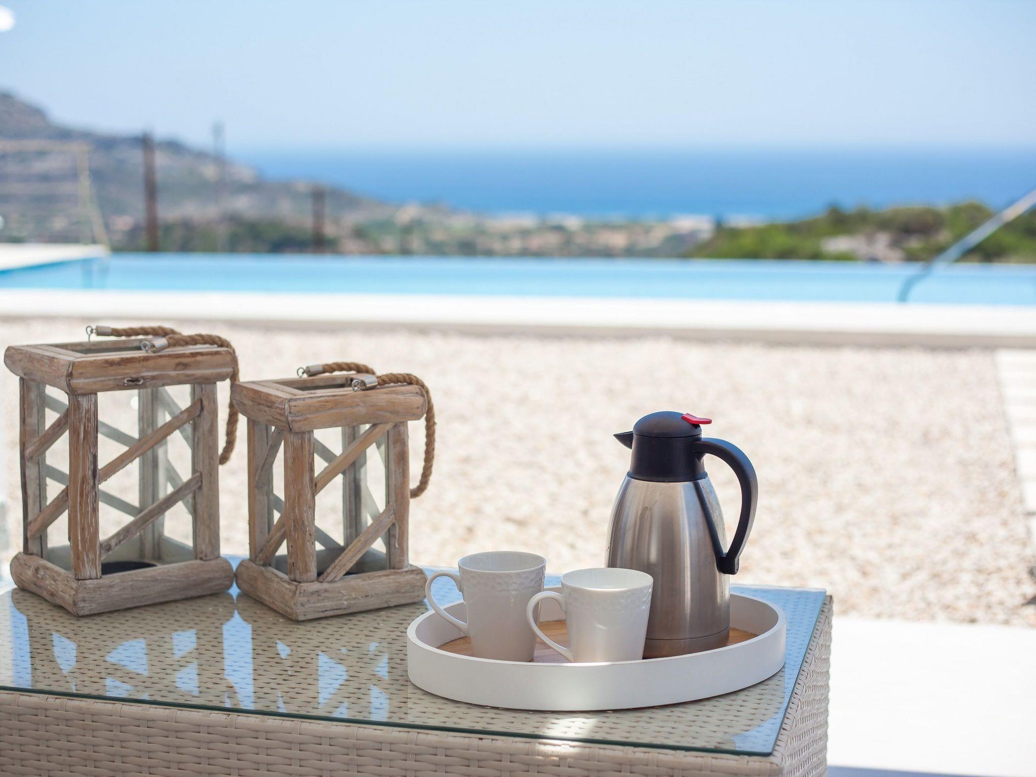 Francis Luxury Villa has an elegant style and large spaces. It offers 4 fully air-conditioned bedrooms with double beds and balconies. Also, it has 4 bathrooms with a shower, 3 of them are ensuite. The property has a fully equipped kitchen suitable for any meal preparation. Francis Luxury Villa has a spacious open plan living room with comfortable sitting areas designed for ultimate relaxation, equipped with flat screen TV, satellite channels and a surround sound system. Outdoors, there’s a private swimming pool surrounded by the sunbeds and the mesmerizing sea view and a sitting area. You can always prepare a meal at the BBQ facilities and enjoy a gathering with your loved ones especially recommended on the golden hours.